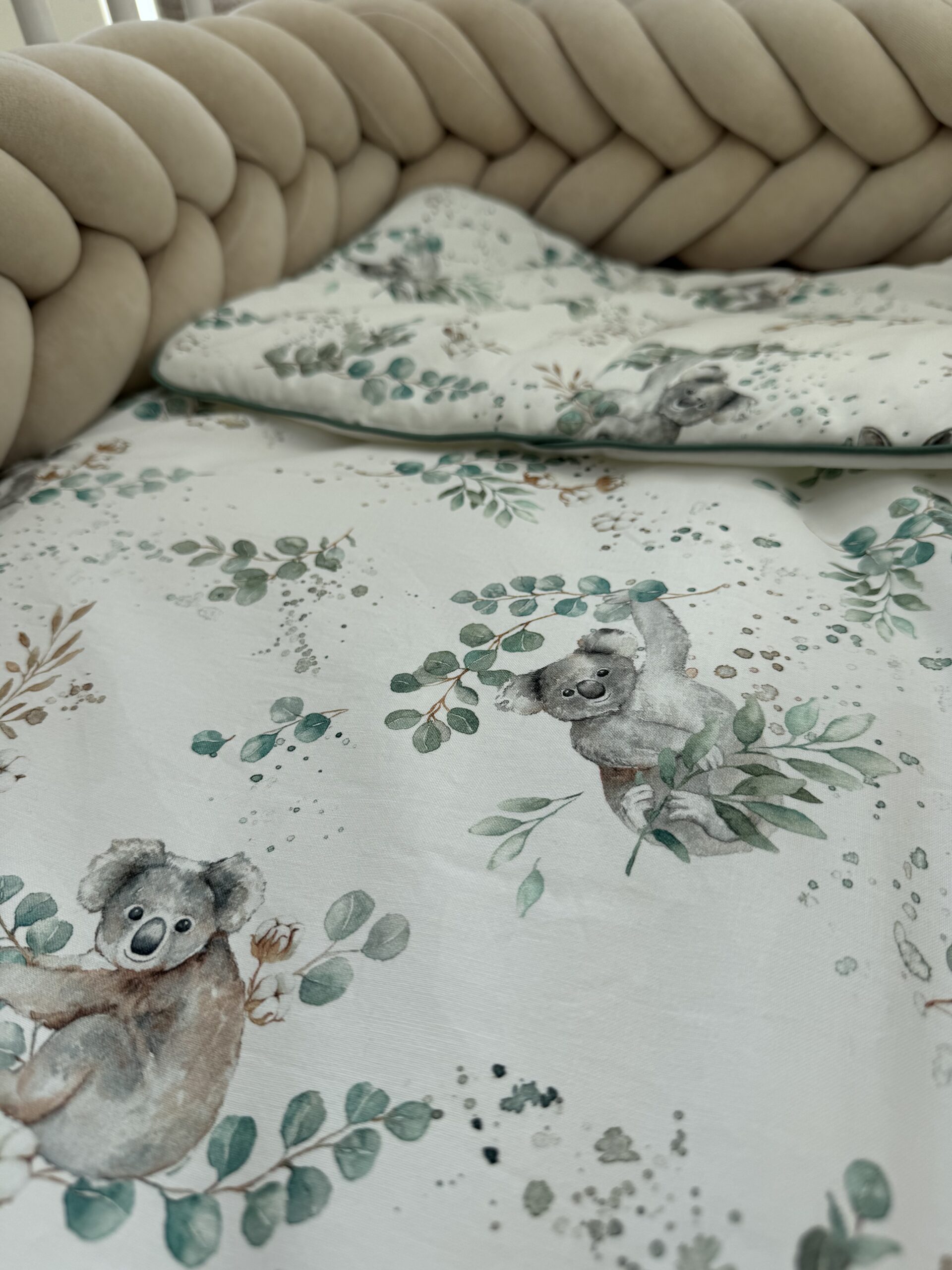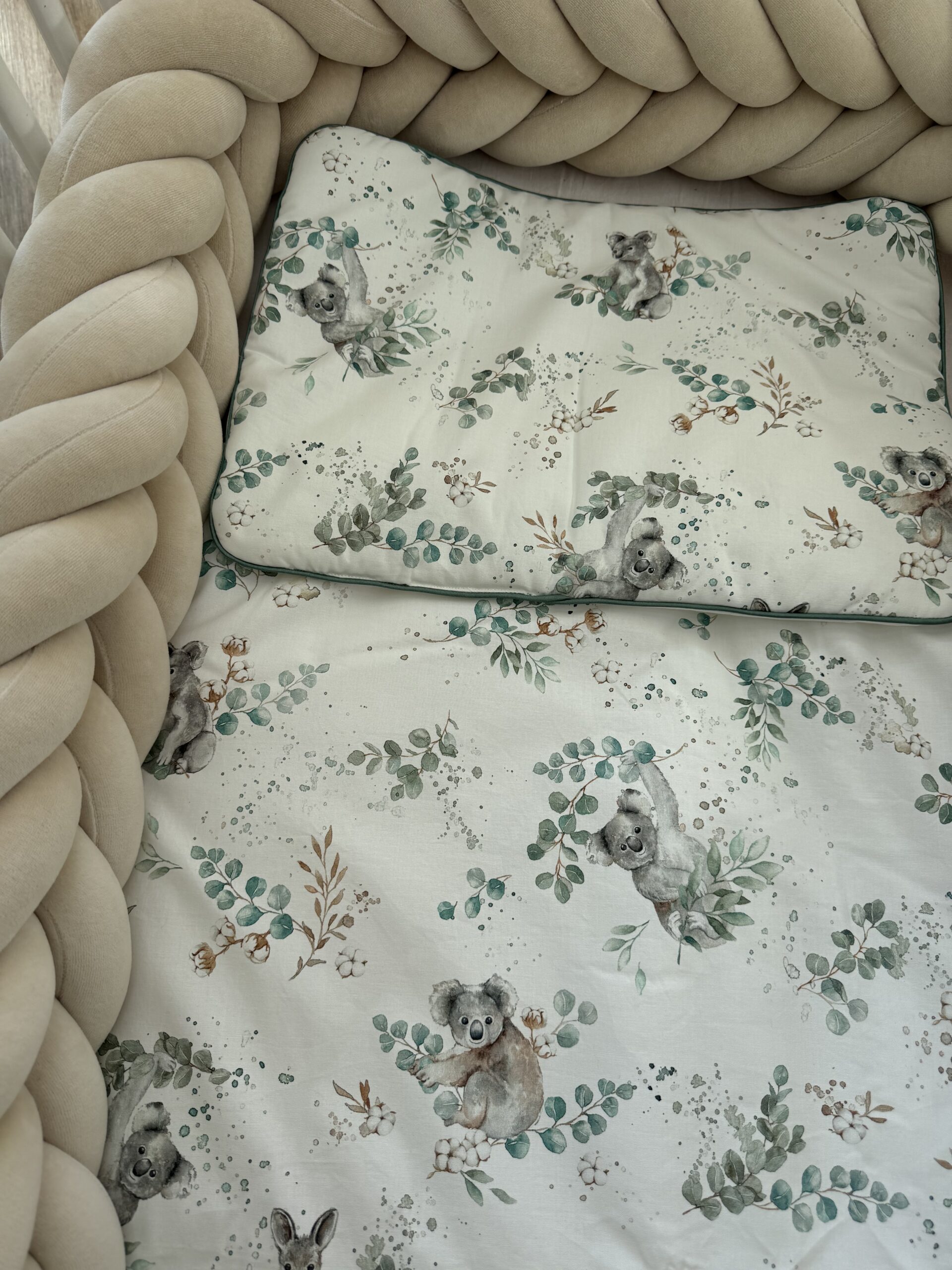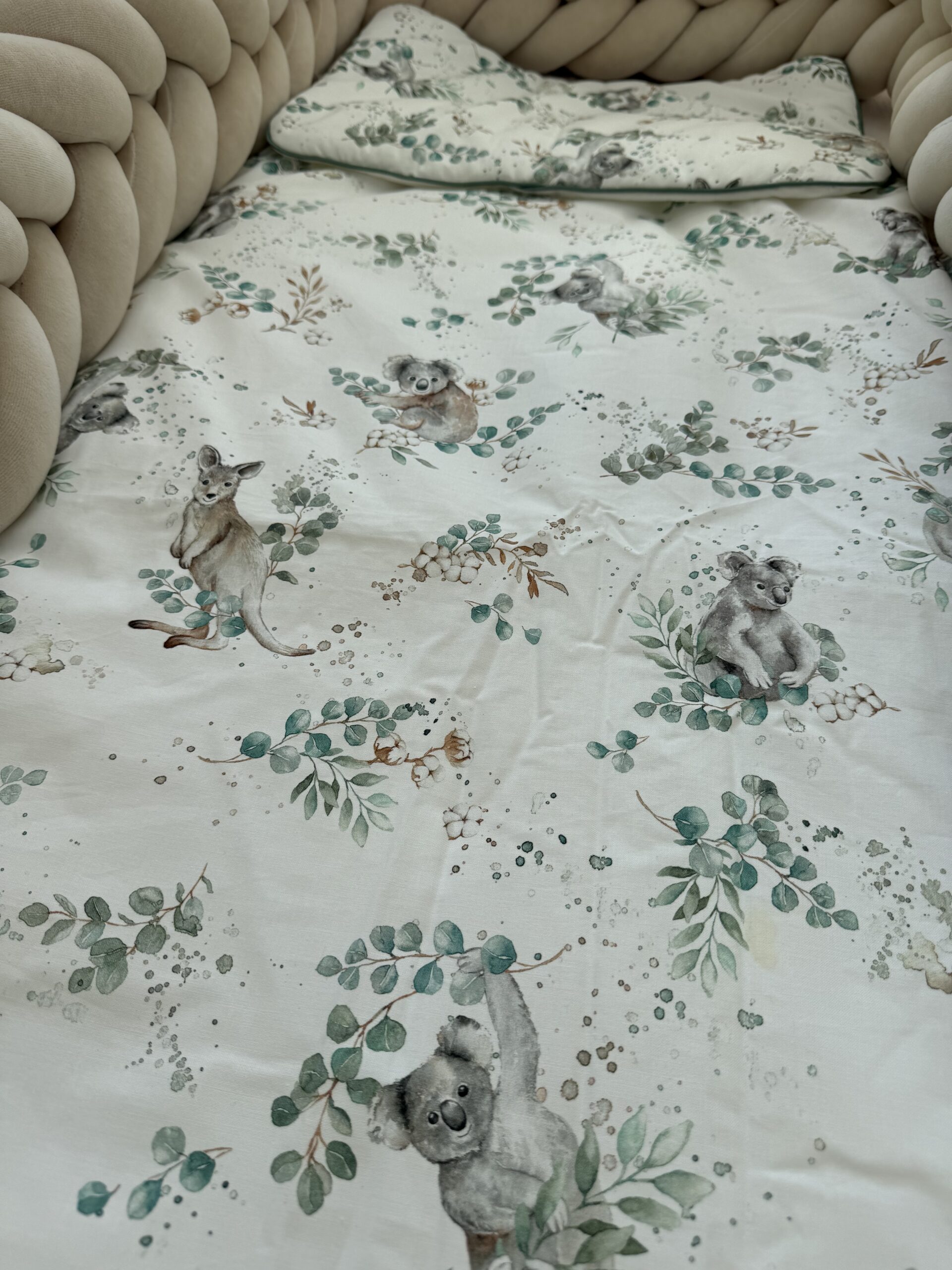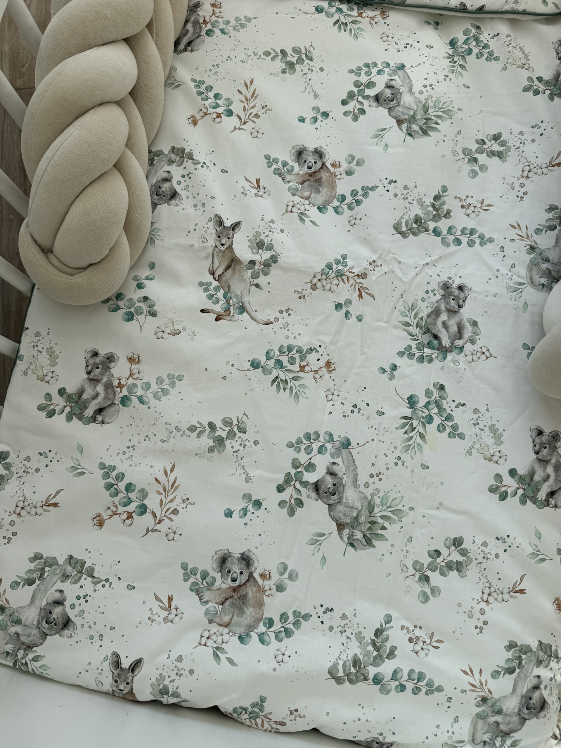 Het kussentje en dekbedje zijn op twee zijdes te gebruiken. De ene zijde koala beertjes en de andere zijde wit.