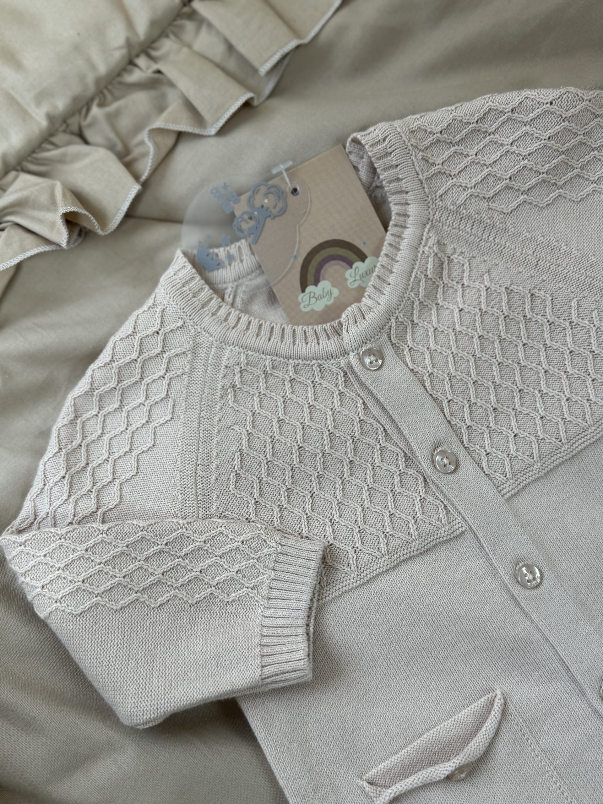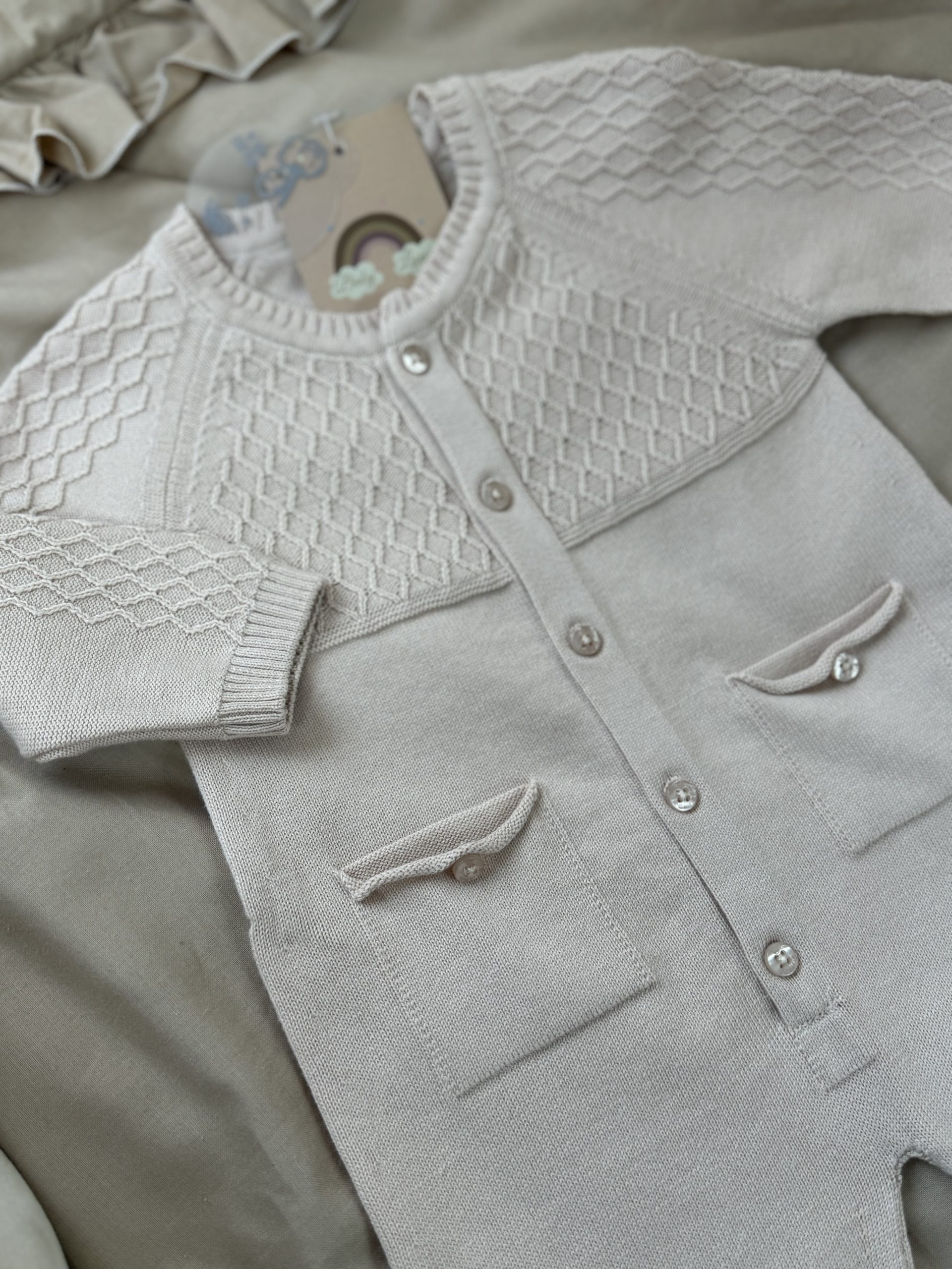 Een 2-delig gebreid boxpakje van 100% biologisch katoen.
