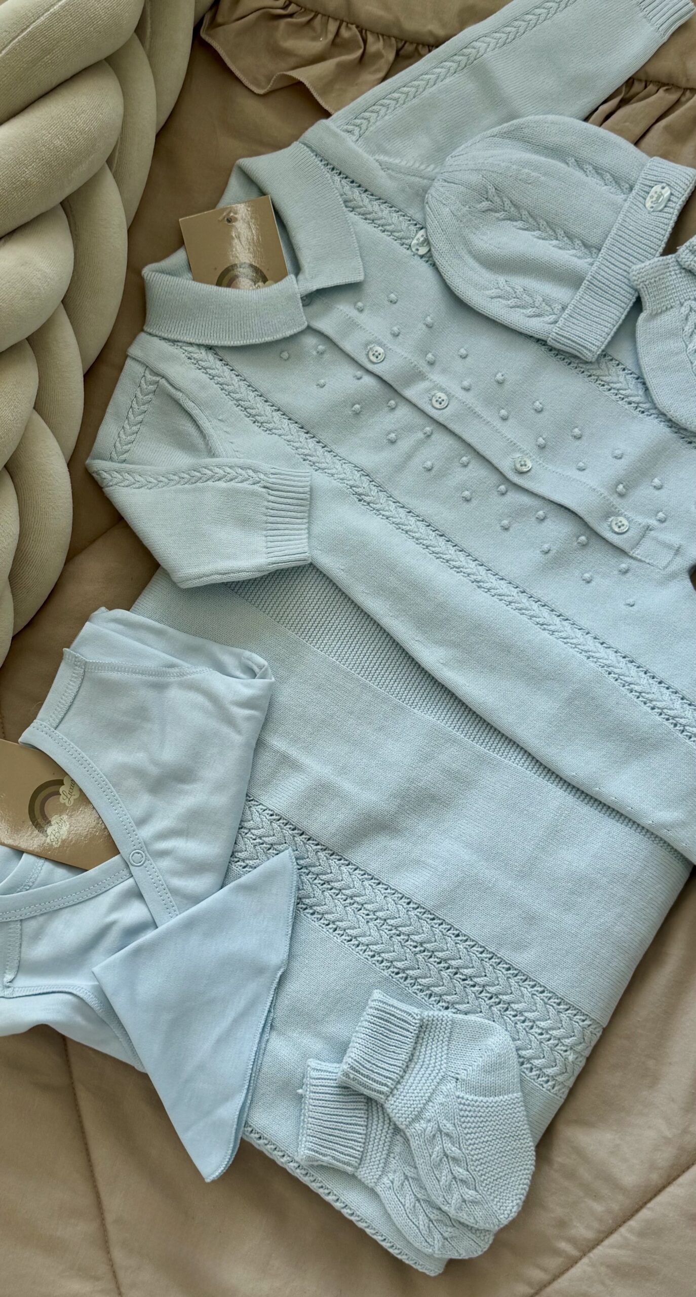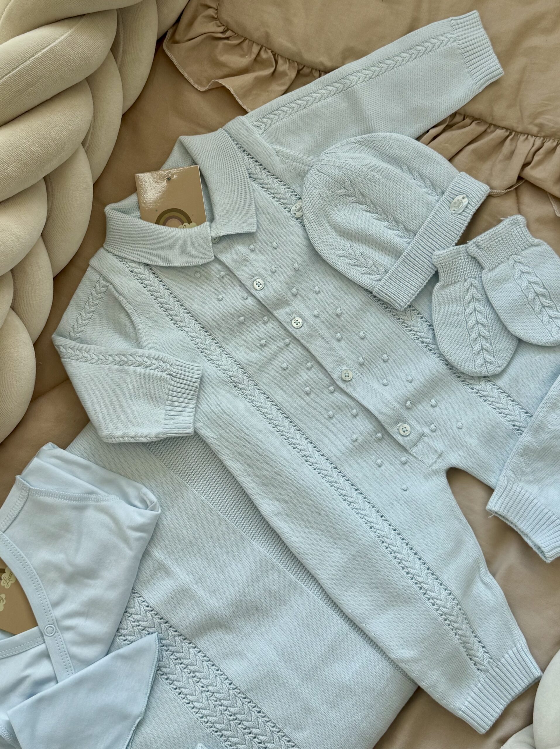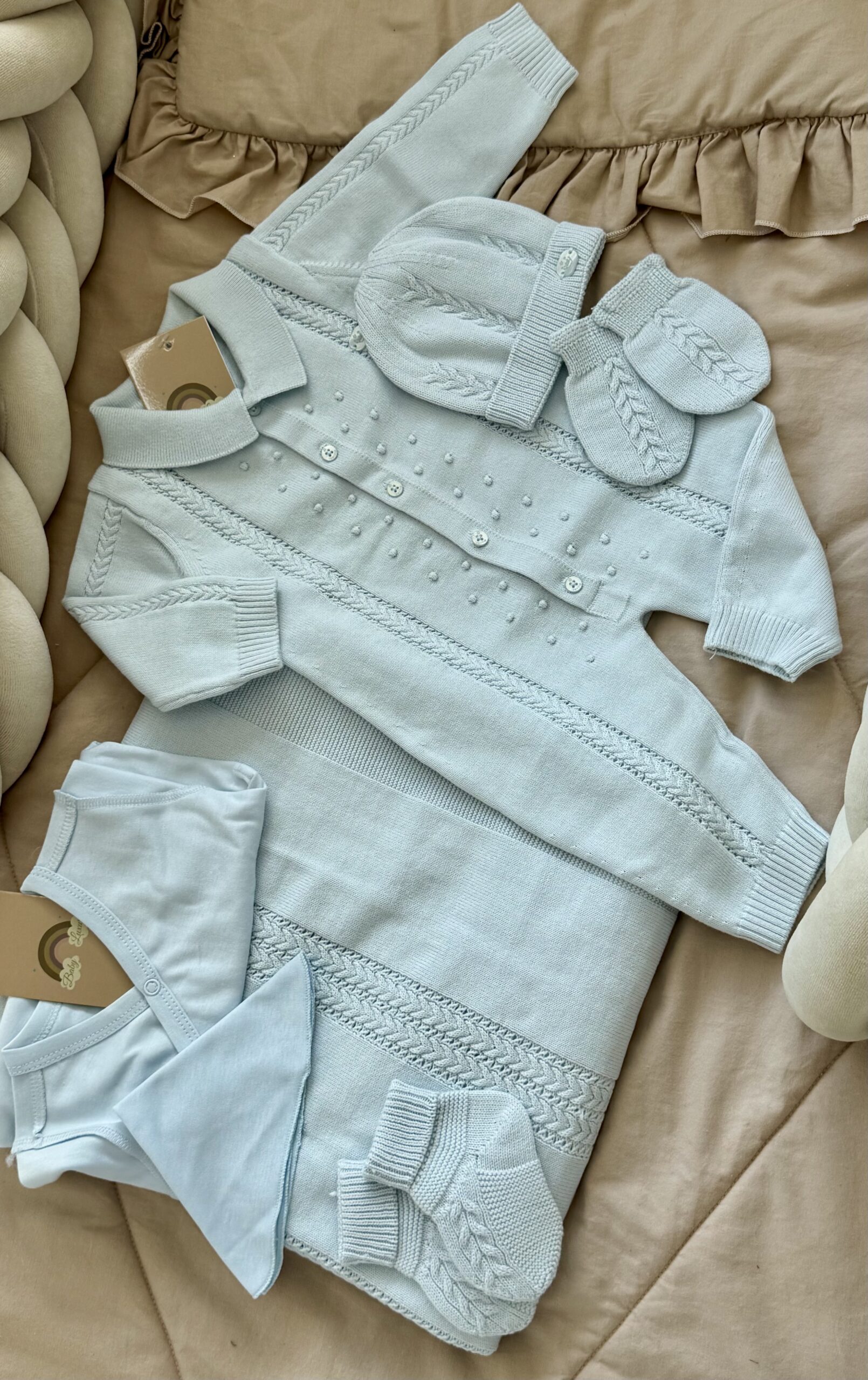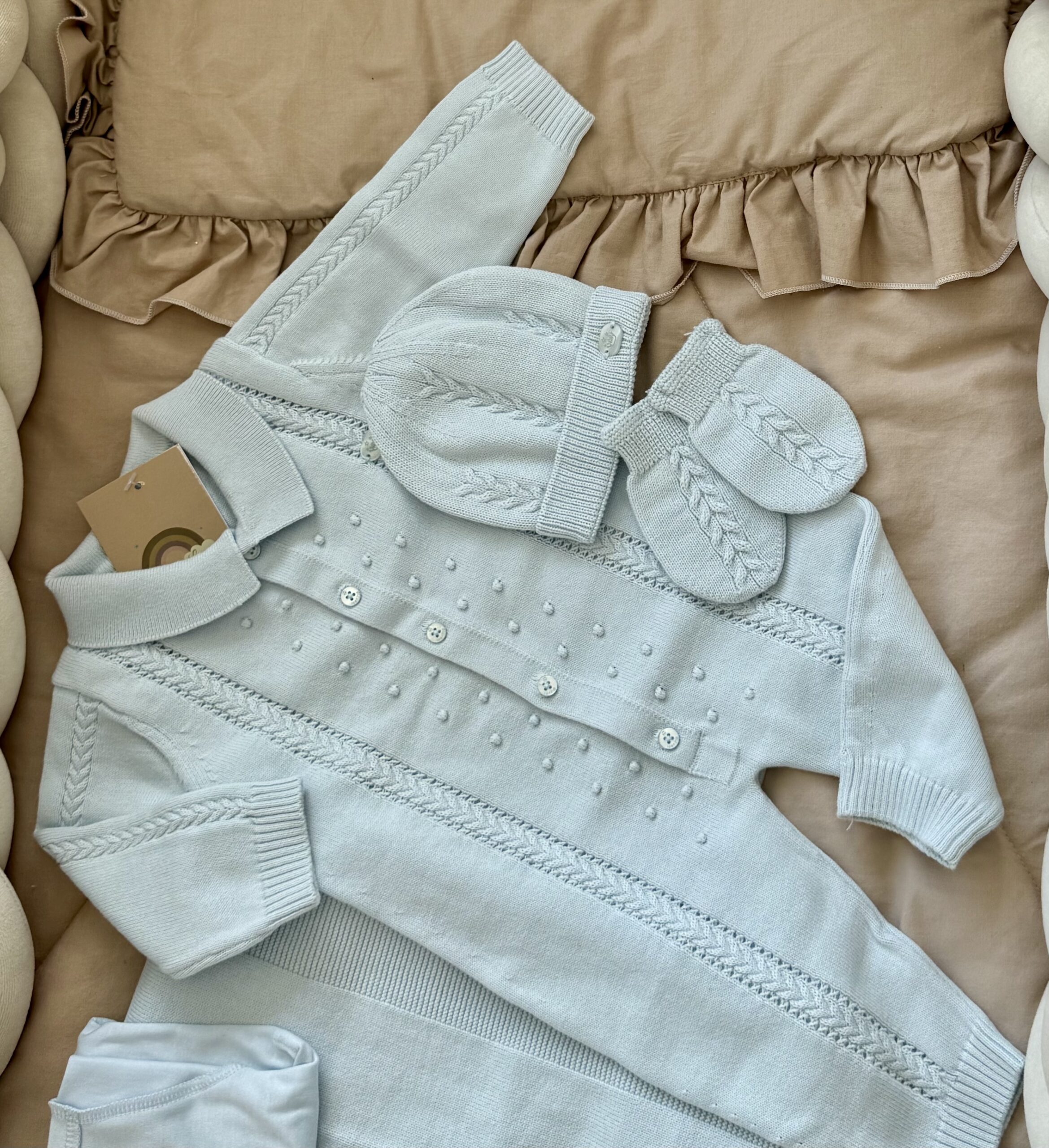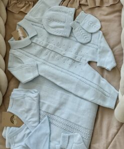 – Een gebreid boxpakje in de maat 0-3 maanden.
