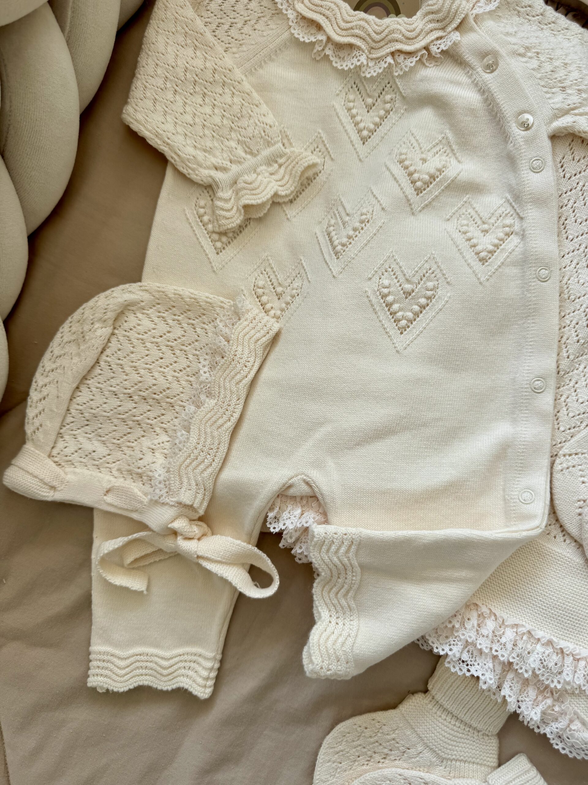 Een complete newbornset in de kleur Beige