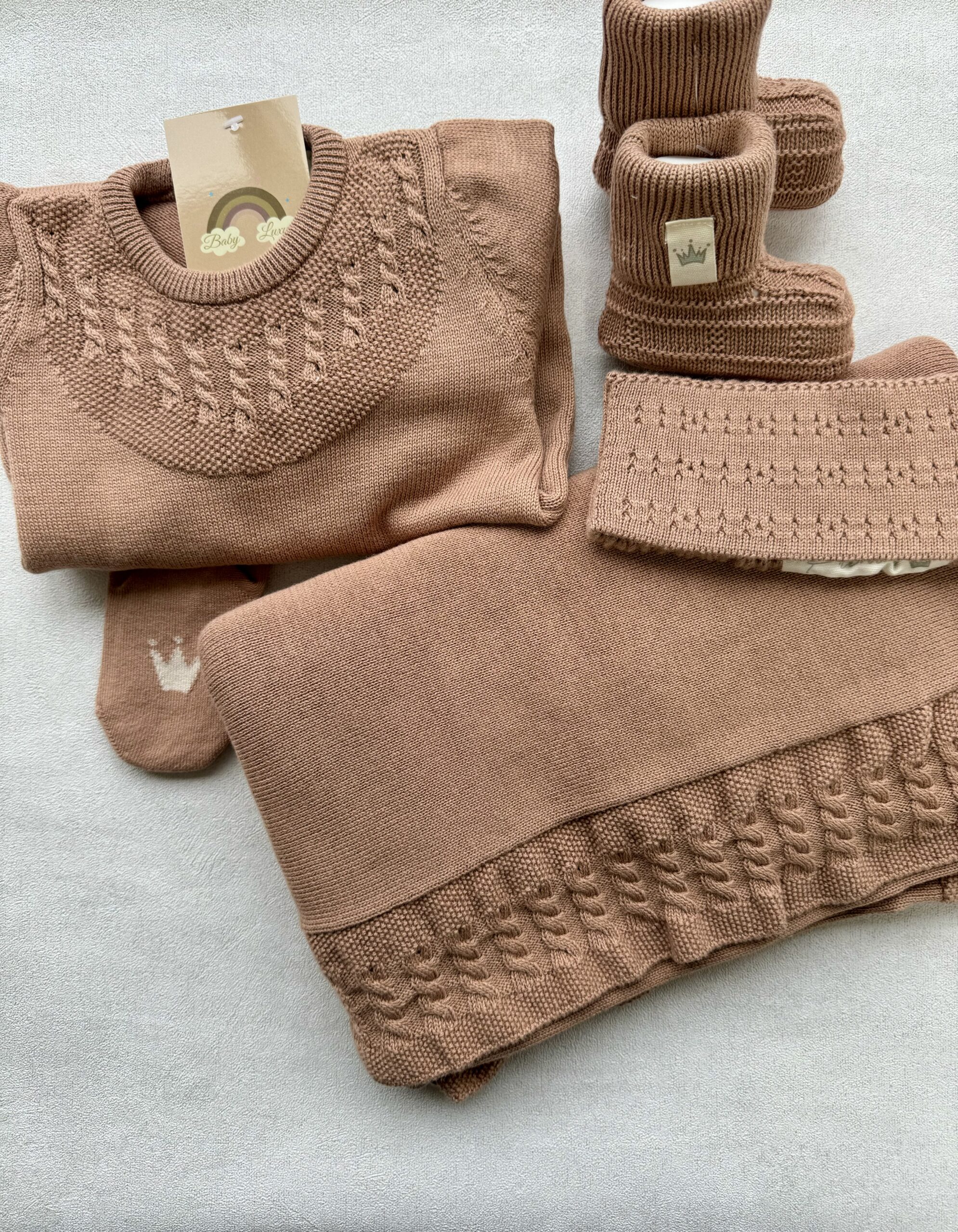 Een complete newbornset in de kleur ChestNut.
