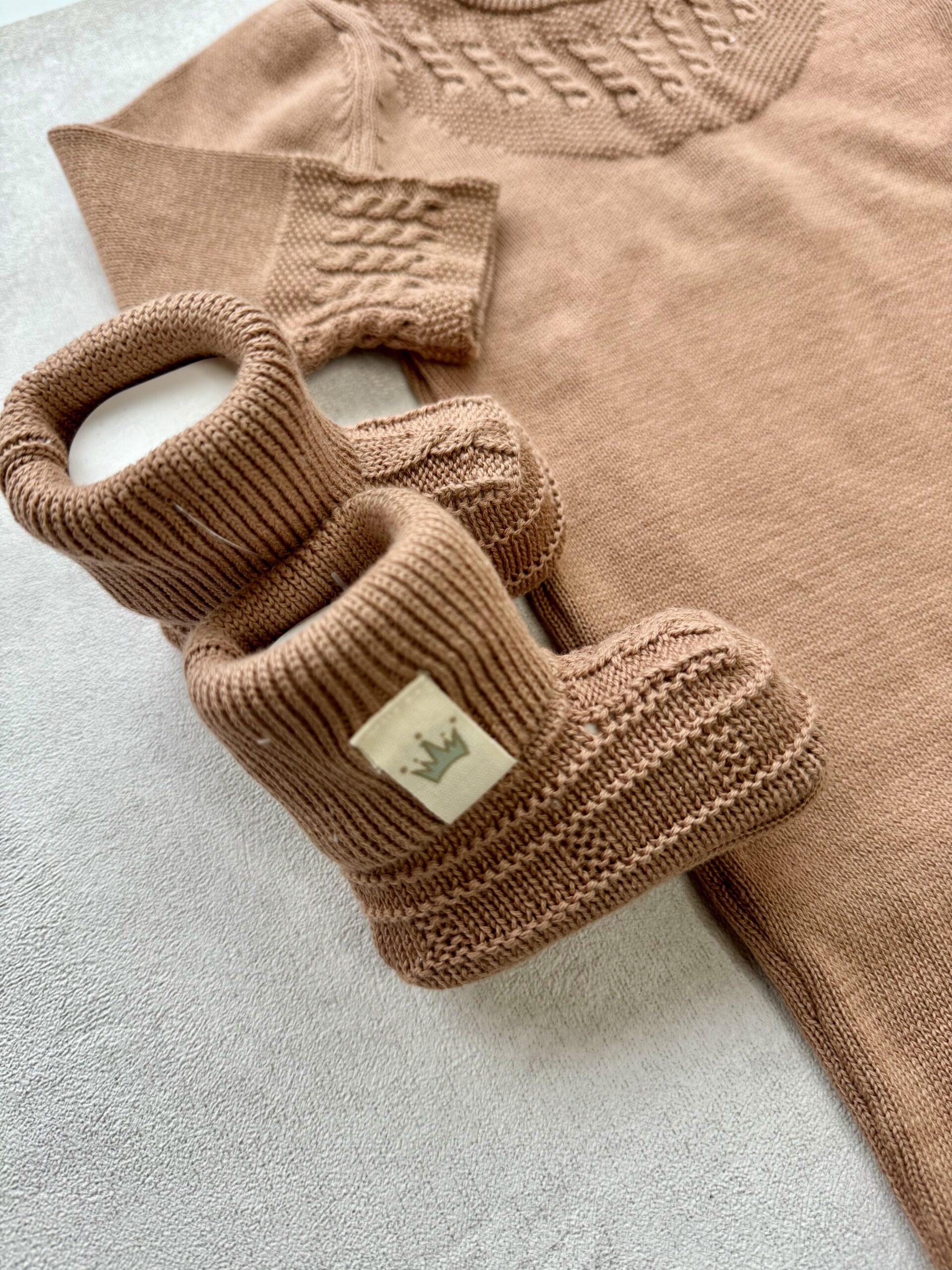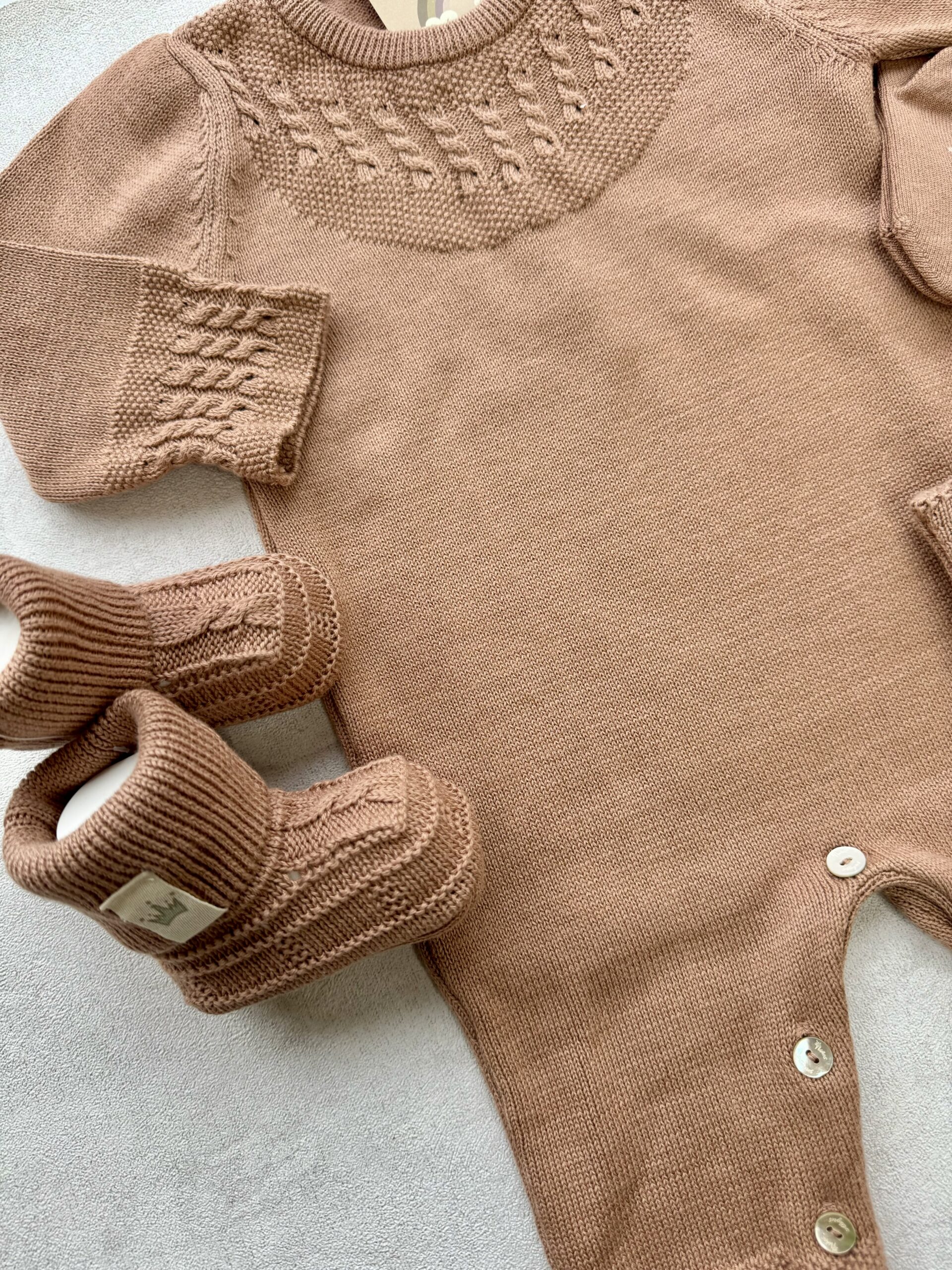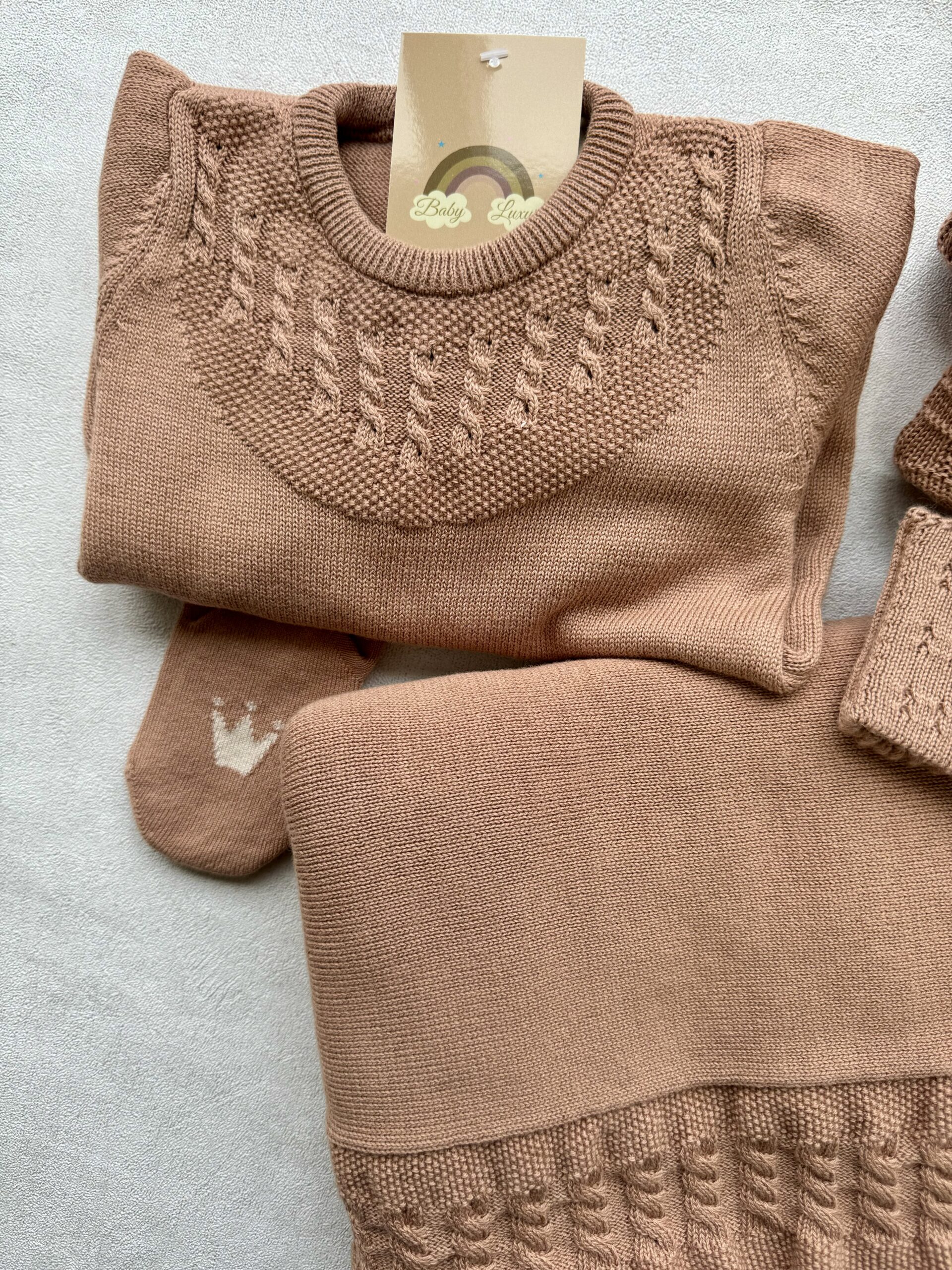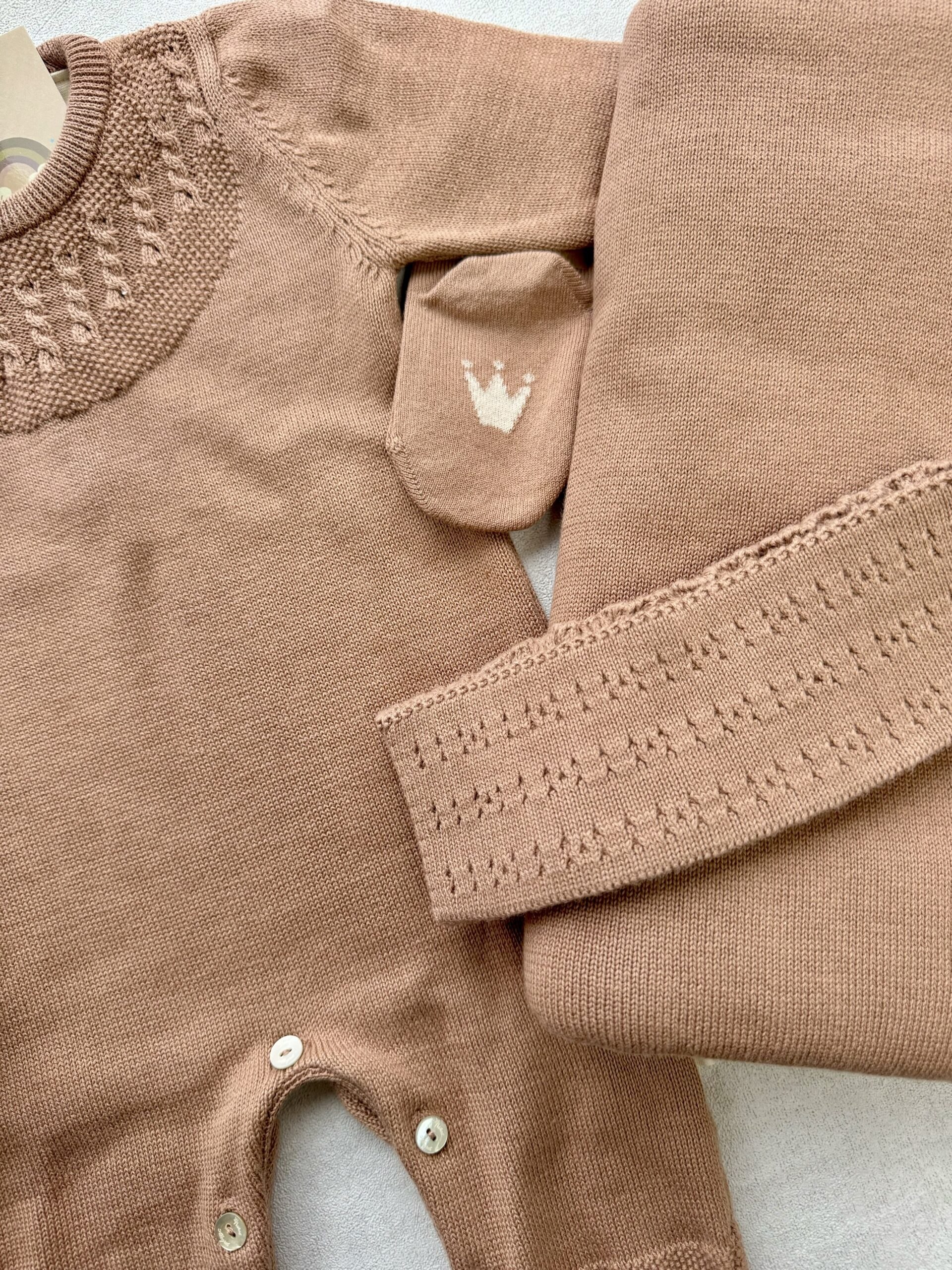 – Een gebreid boxpakje in de maat 0-3 maanden
