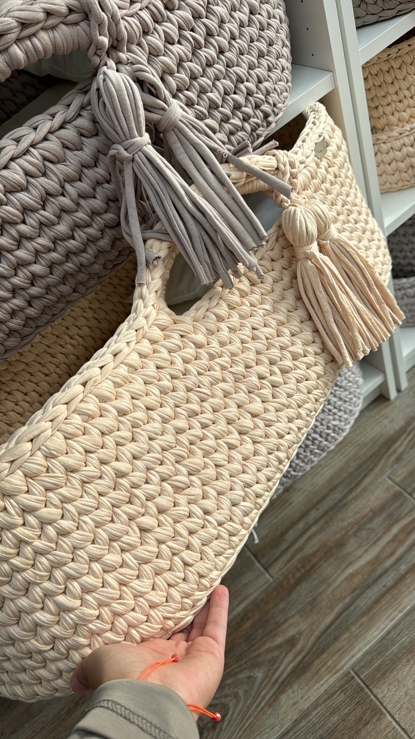 De mozesmand is volledig handgemaakt van 100% biologisch katoendraad.