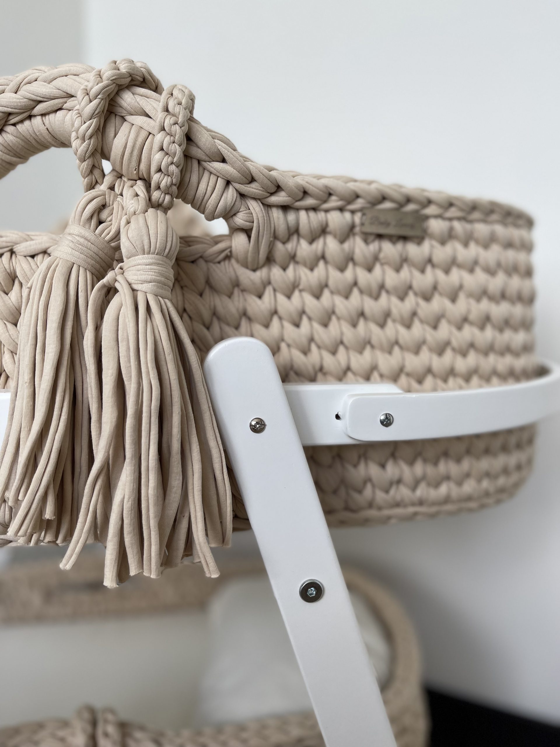De gehaakte mozesmand is erg comfortabel voor de baby en biedt geborgenheid.
