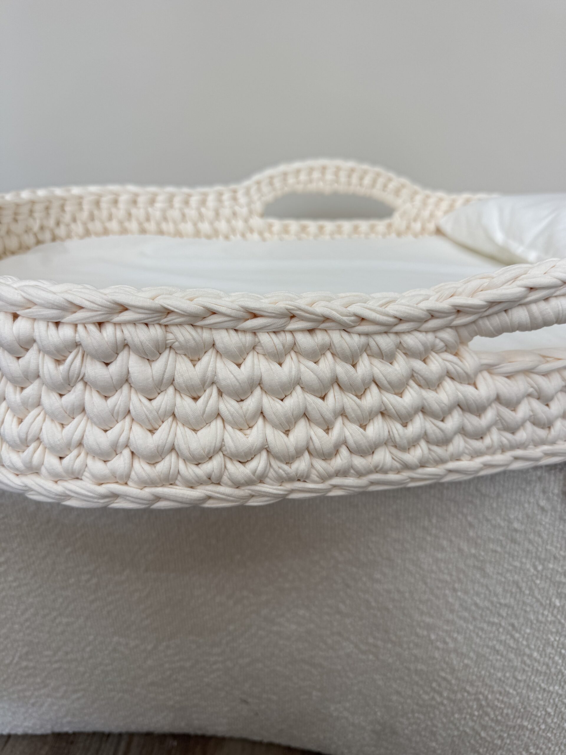 De verschoonmand wordt exclusief met de hand gehaakt en is voorzien van een stevig matrasje en kussentje.