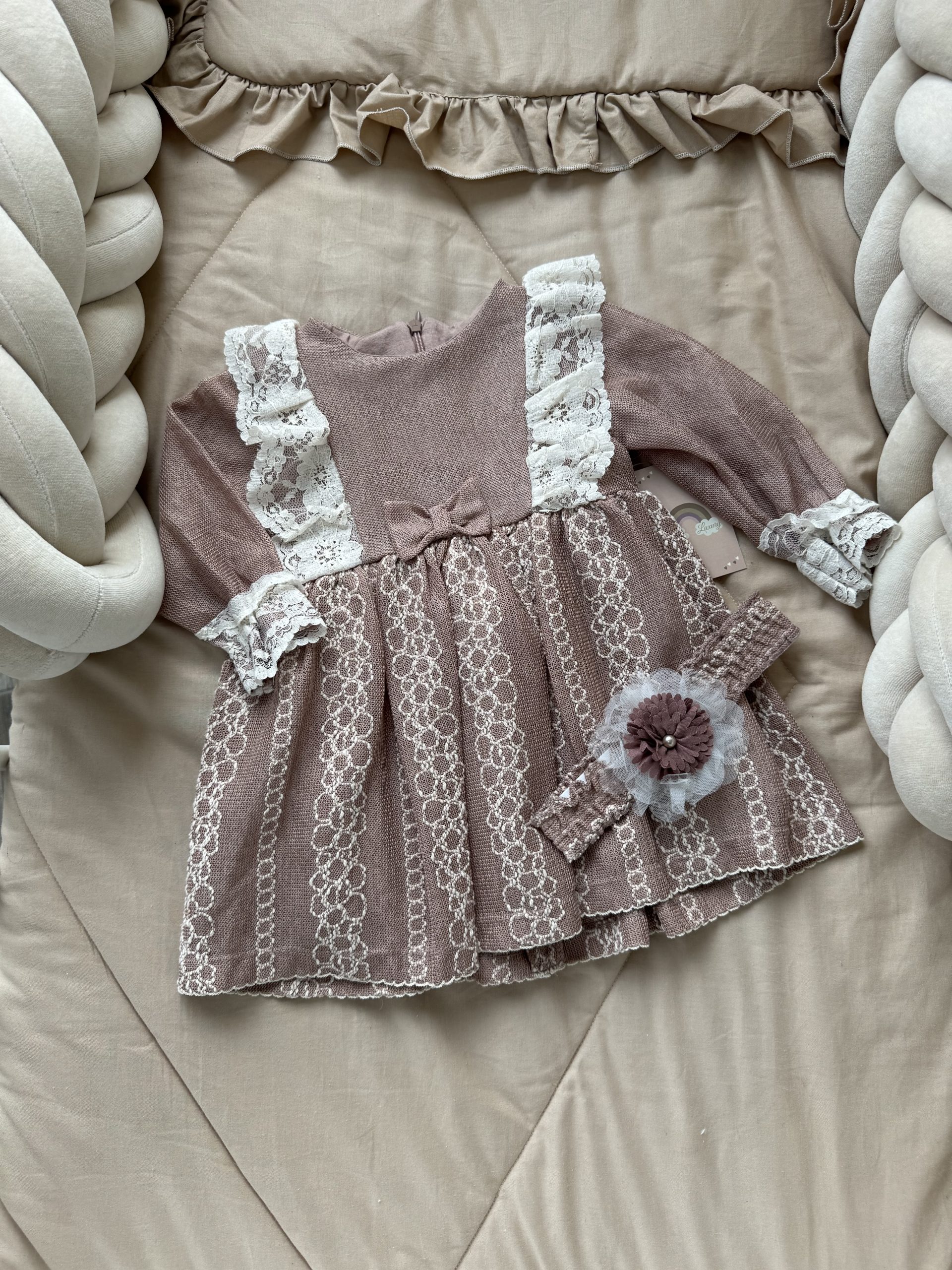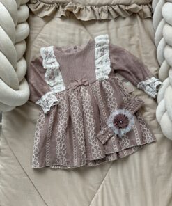 Het jurkje heeft en bijpassende haarband met kant.