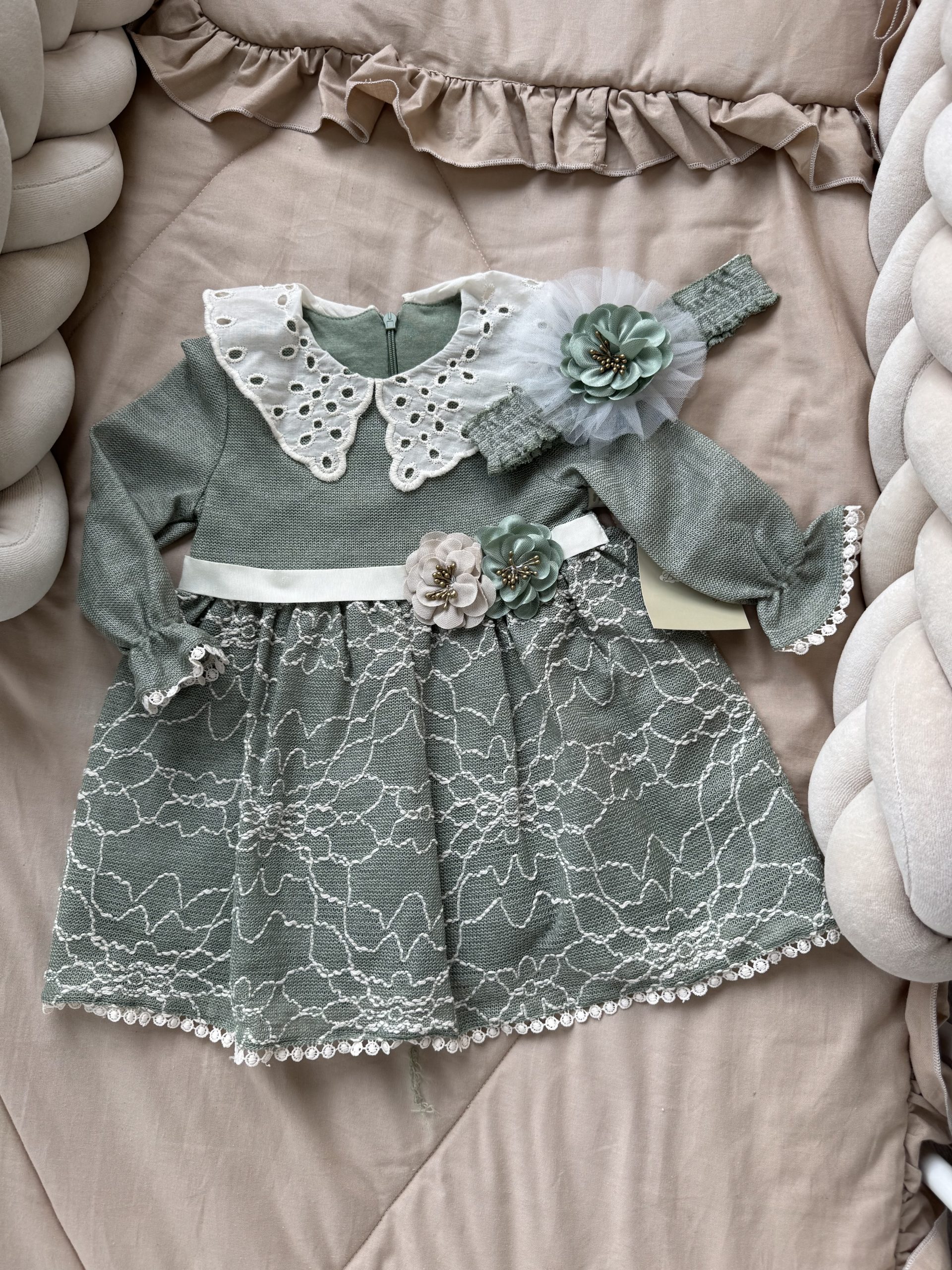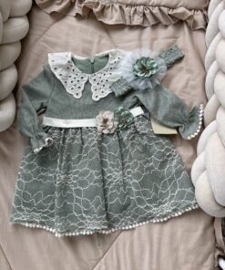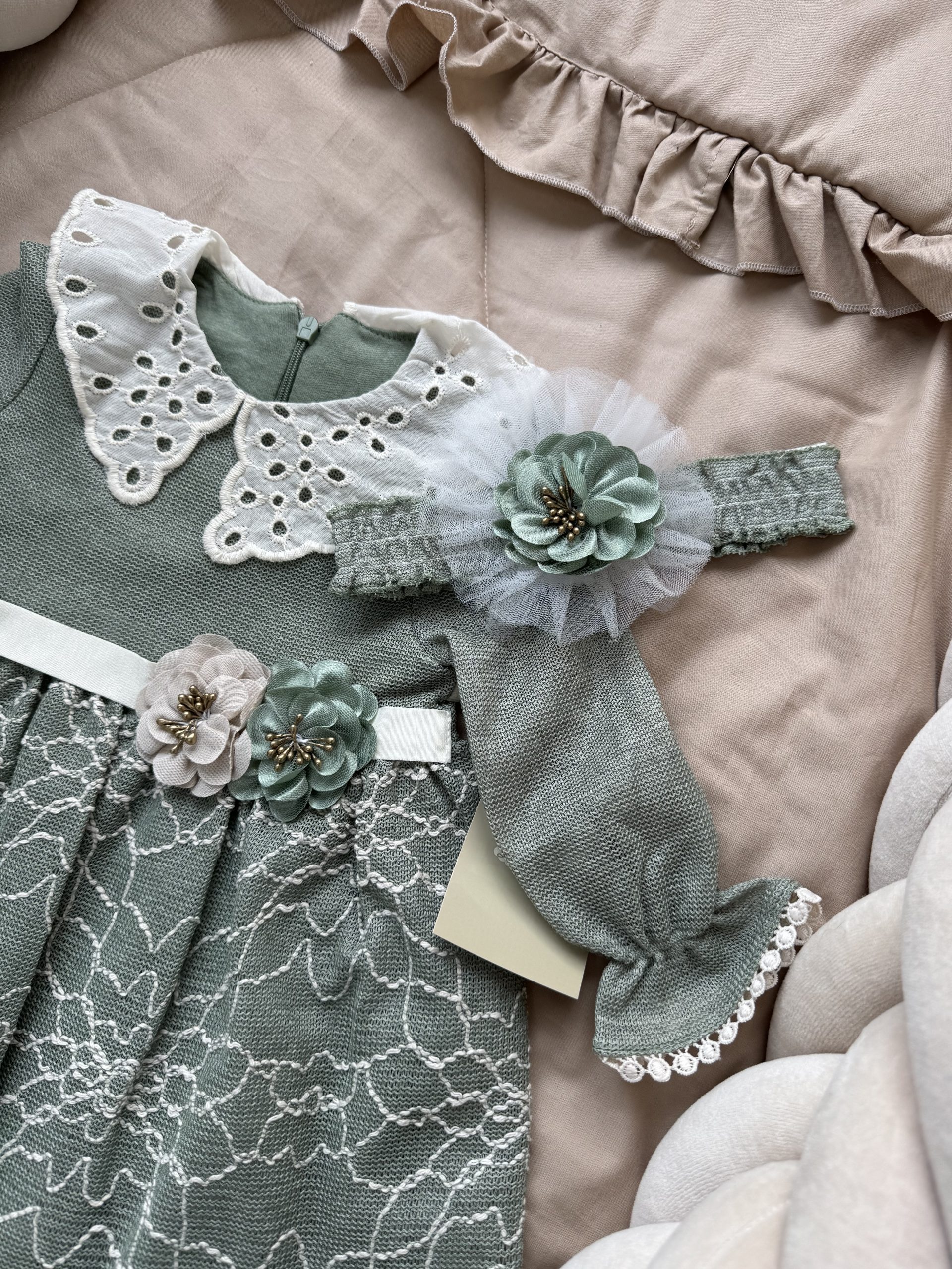 De jurk heeft een bijpassende haarband met een 3D bloem.