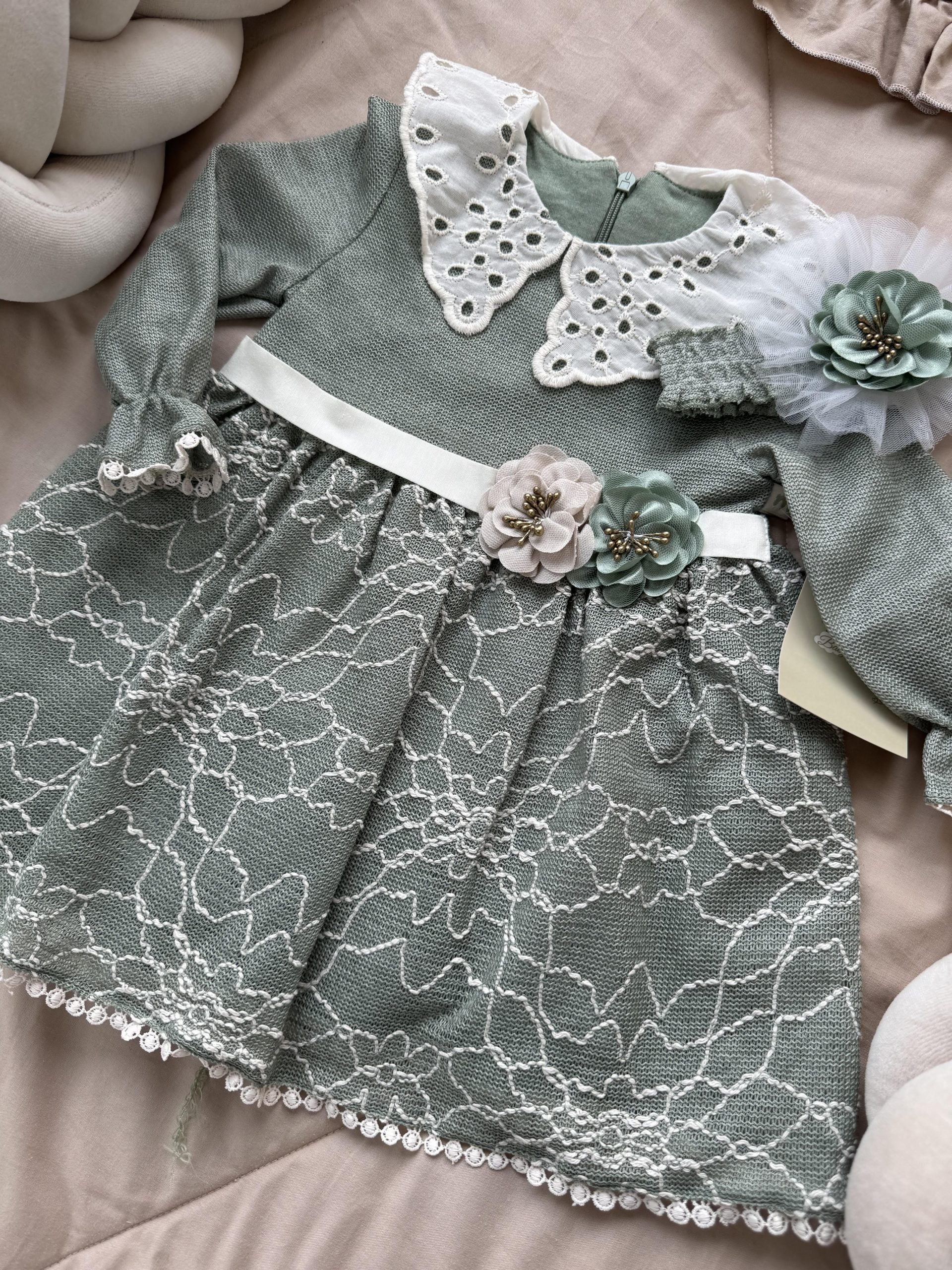 Een exclusieve jurk met een kraagje en bloemetjes details.