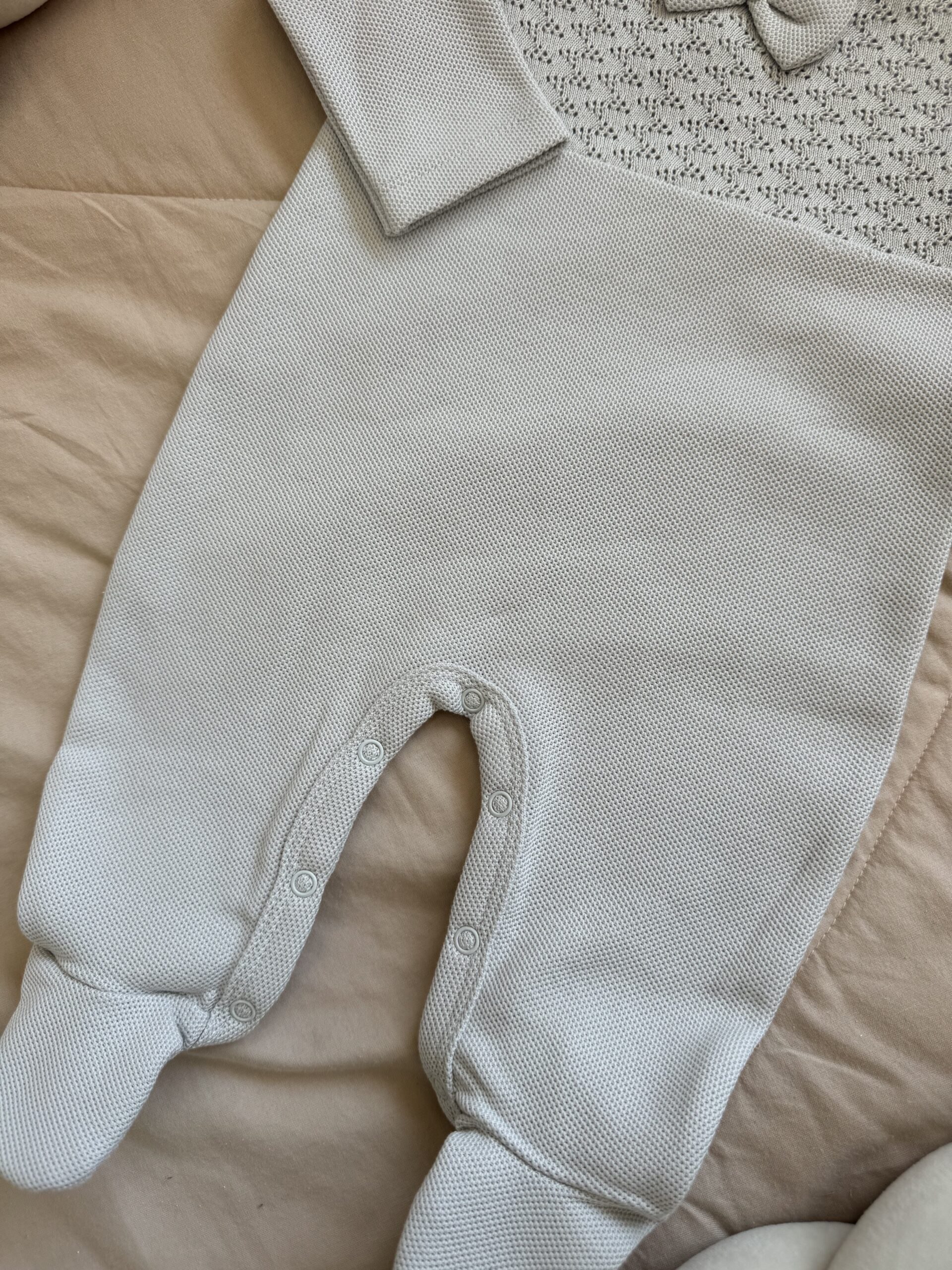 Een gebreid boxpakje in de kleur Stone.