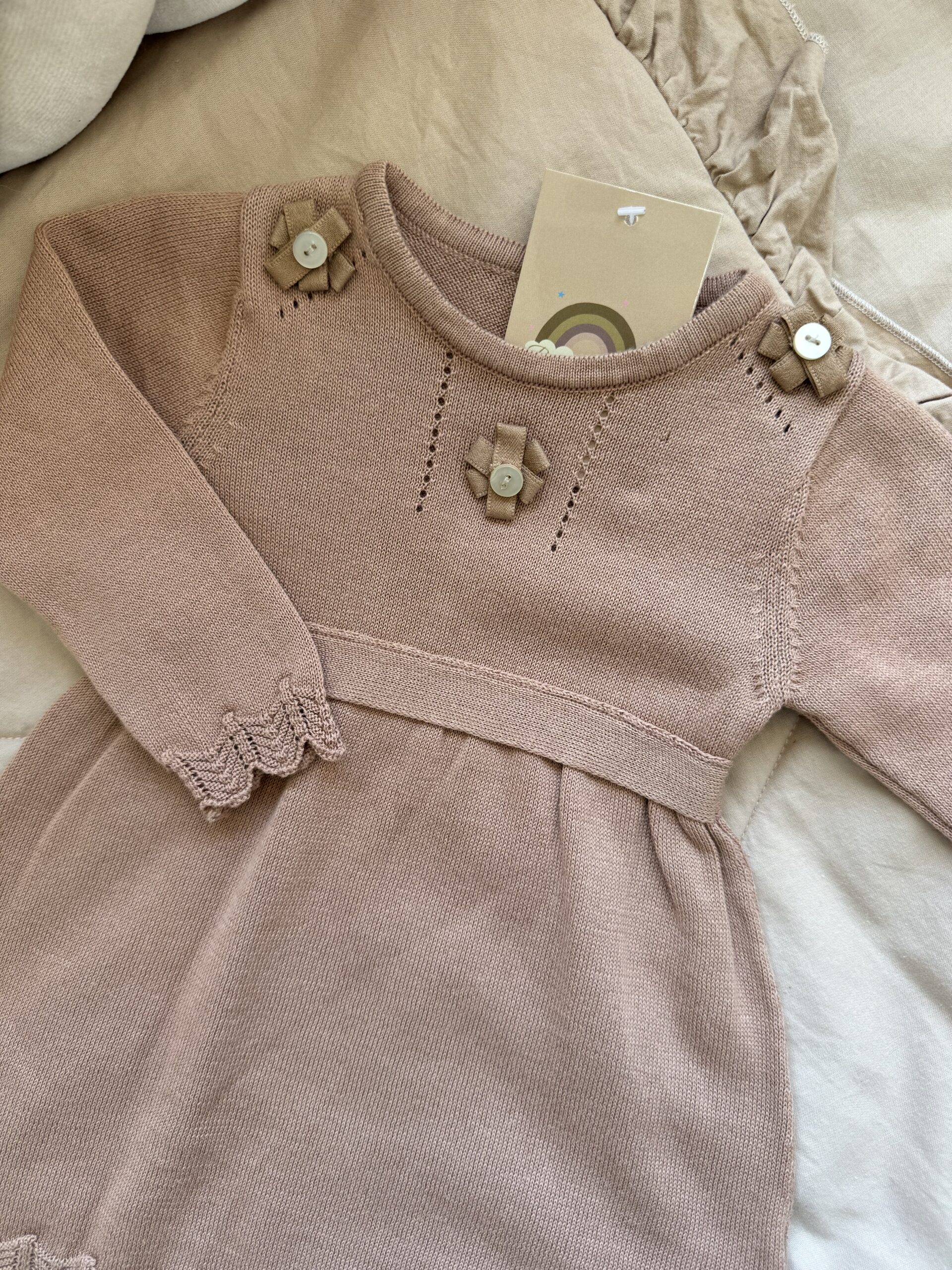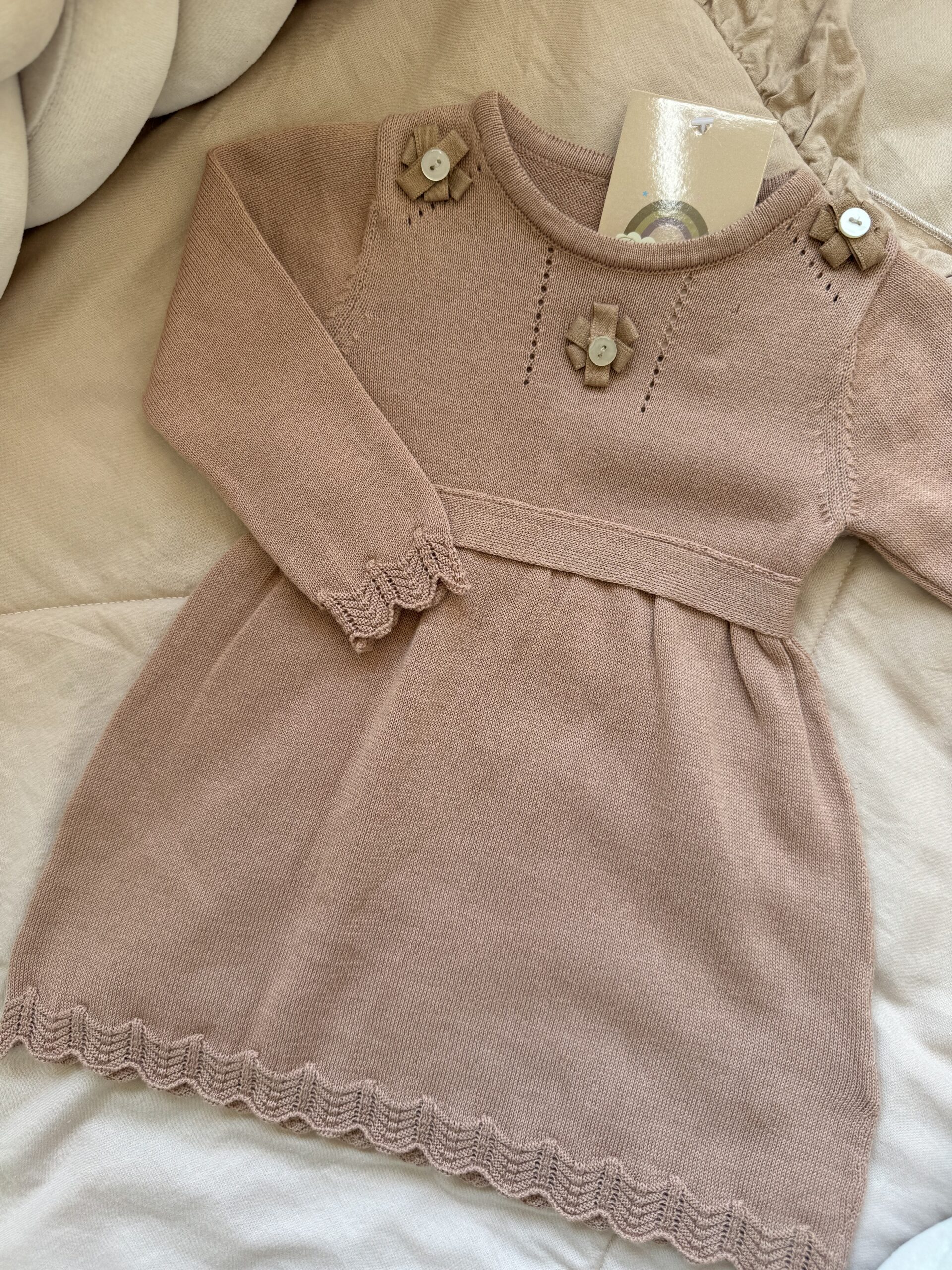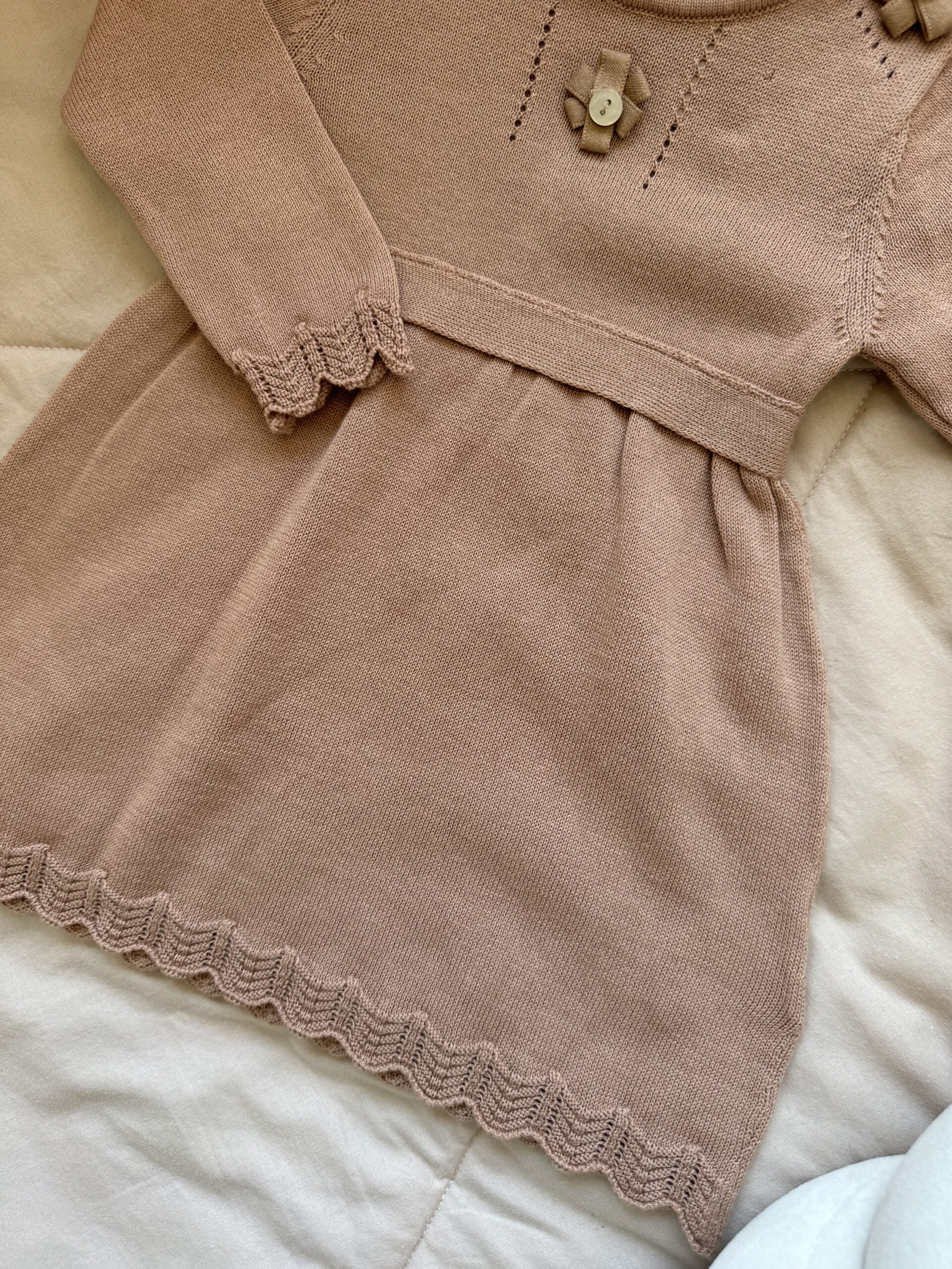 Een gebreid jurkje in de kleur Chestnut.