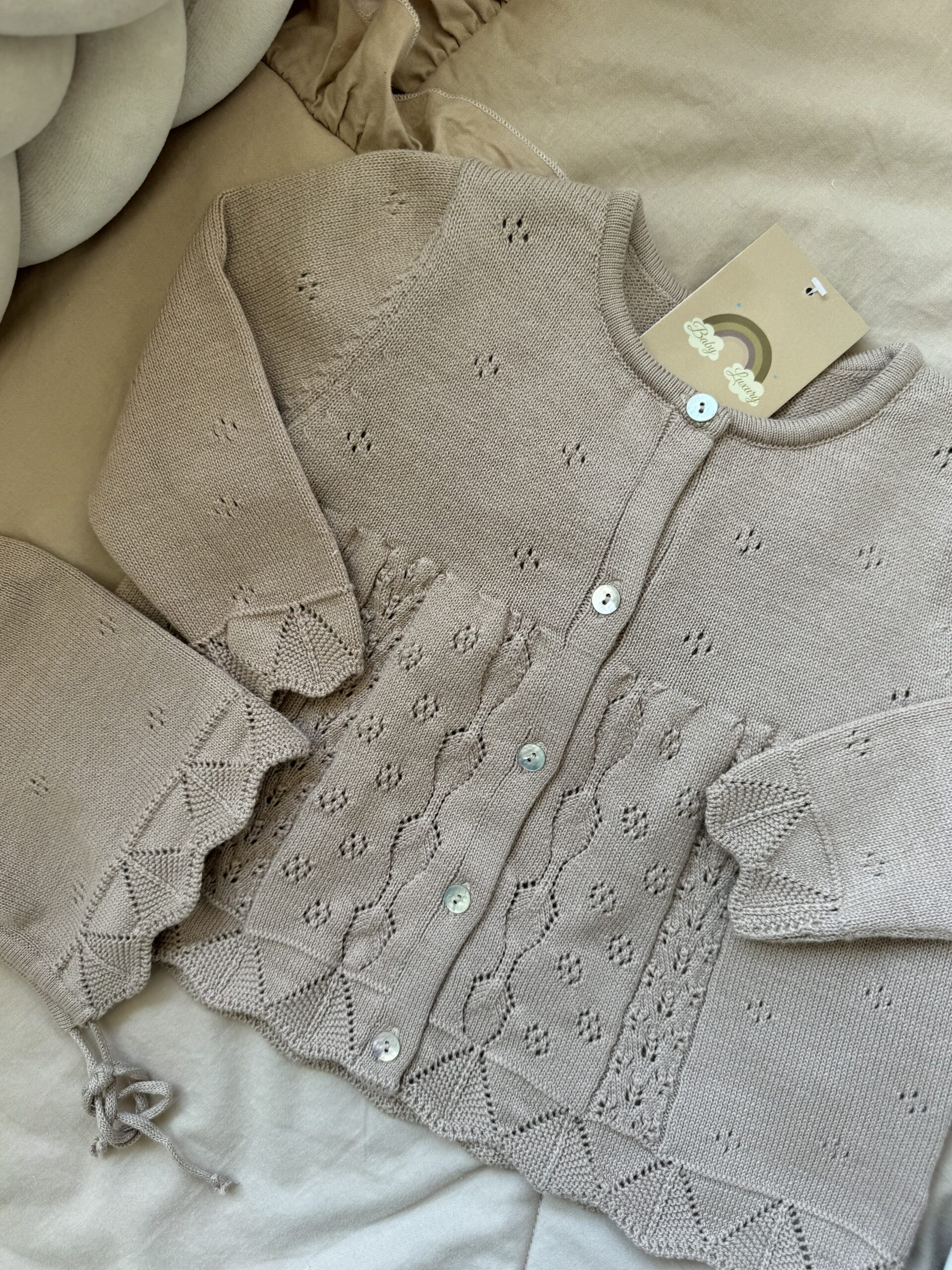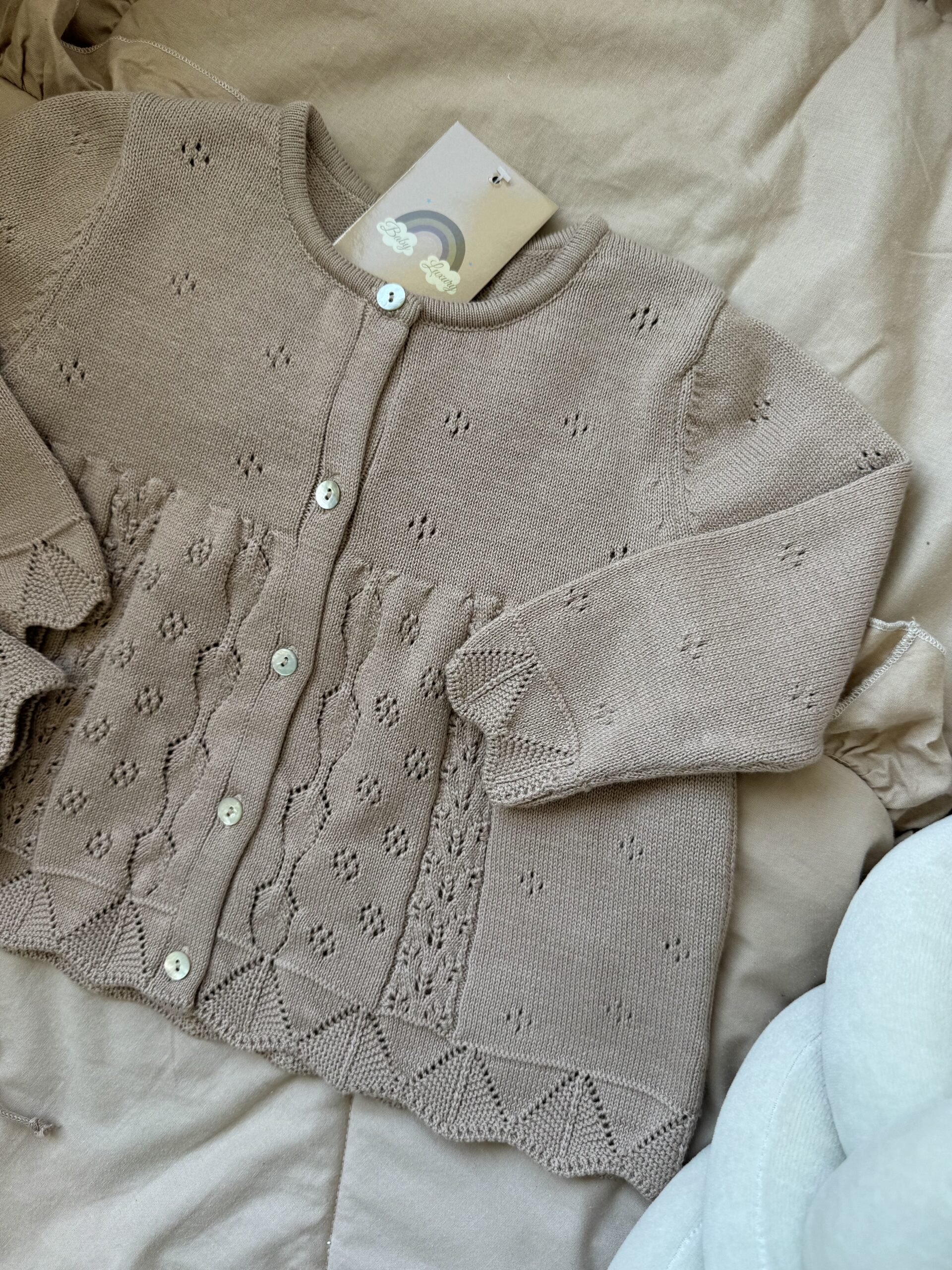 Prachtige pointelle breiwerk en ruffle afwerkingen.