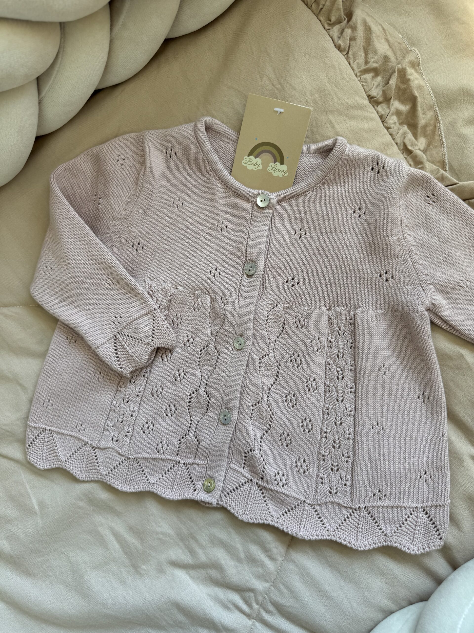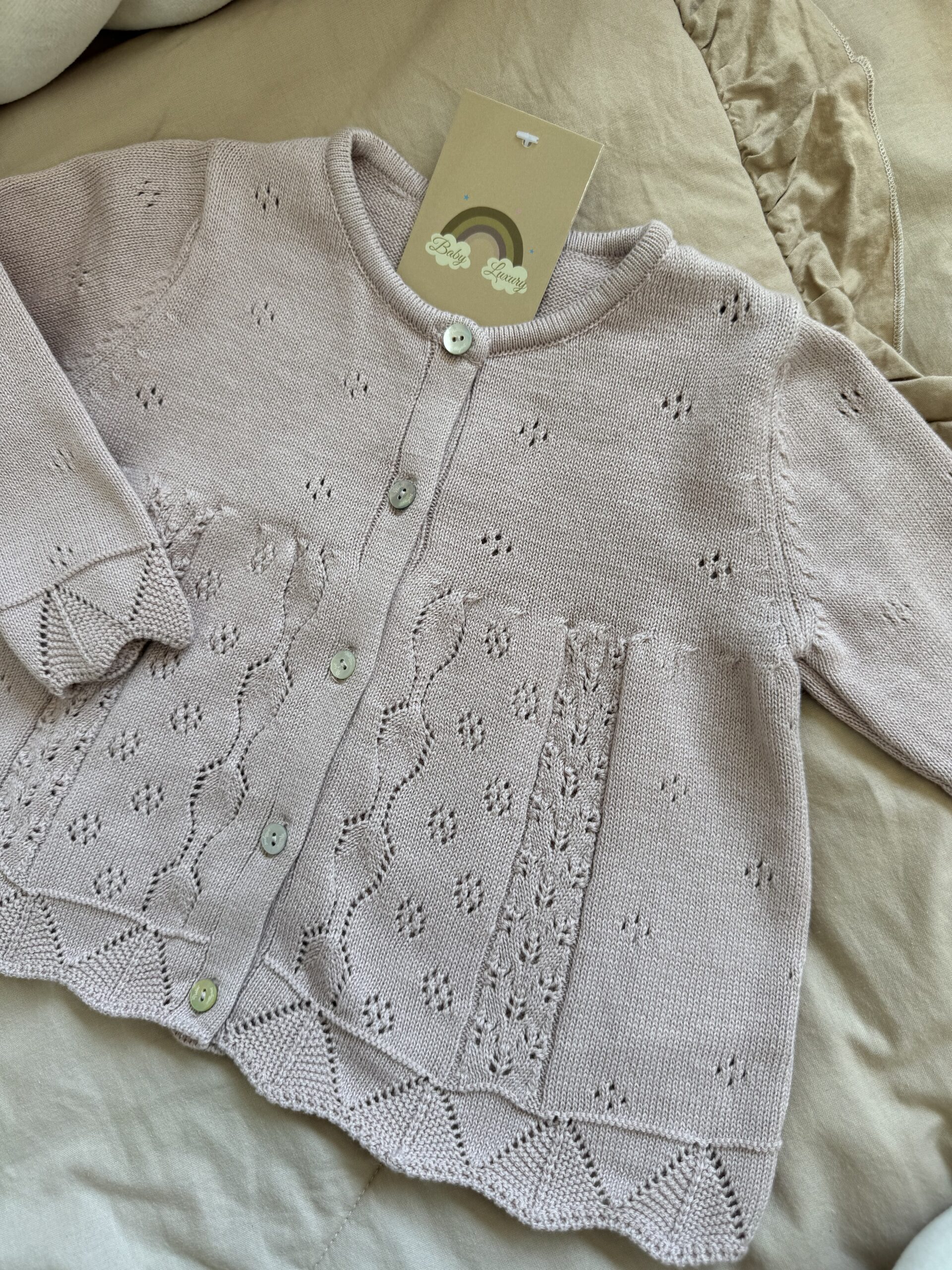 Prachtige pointelle breiwerk en ruffle afwerkingen.