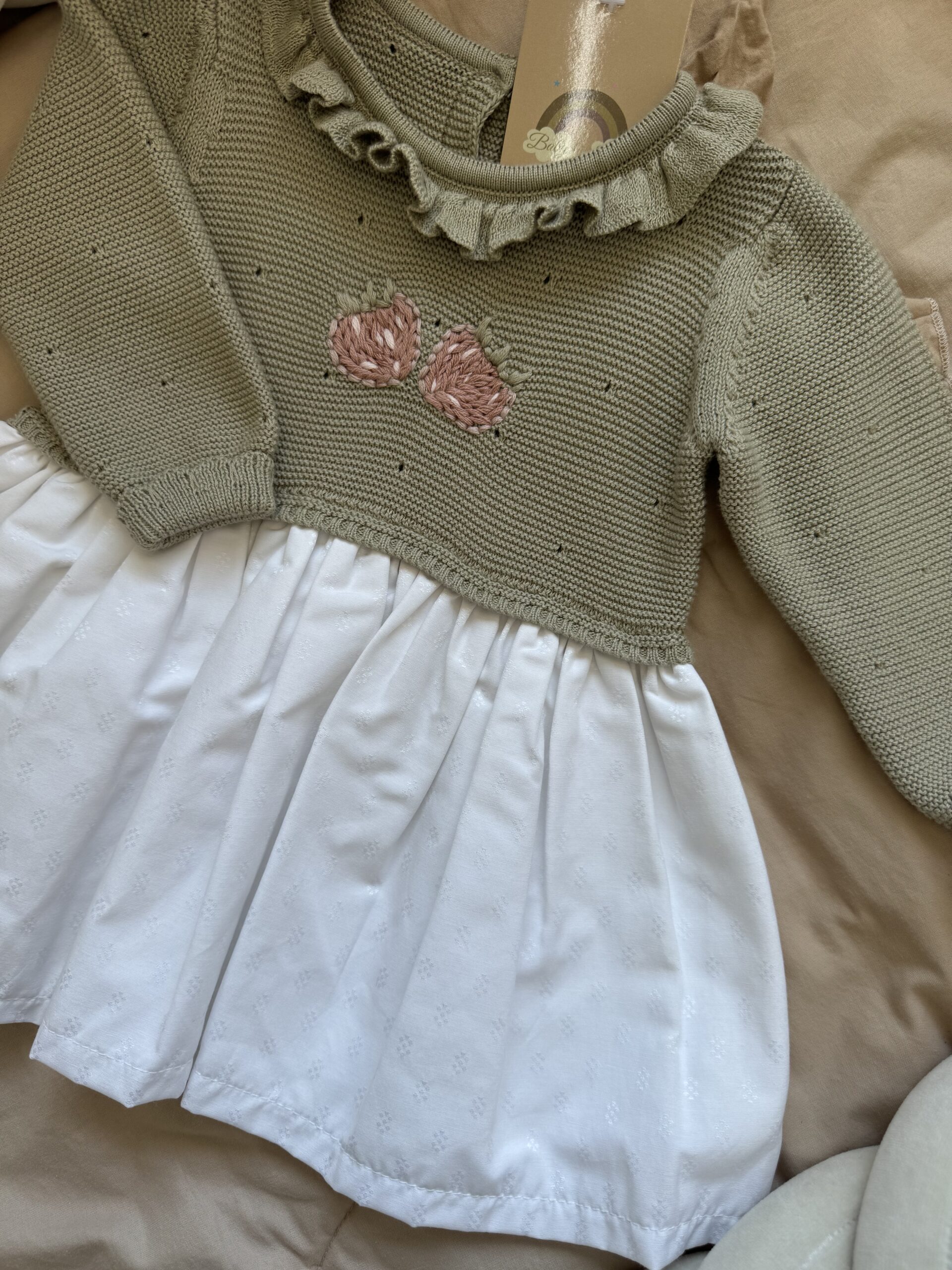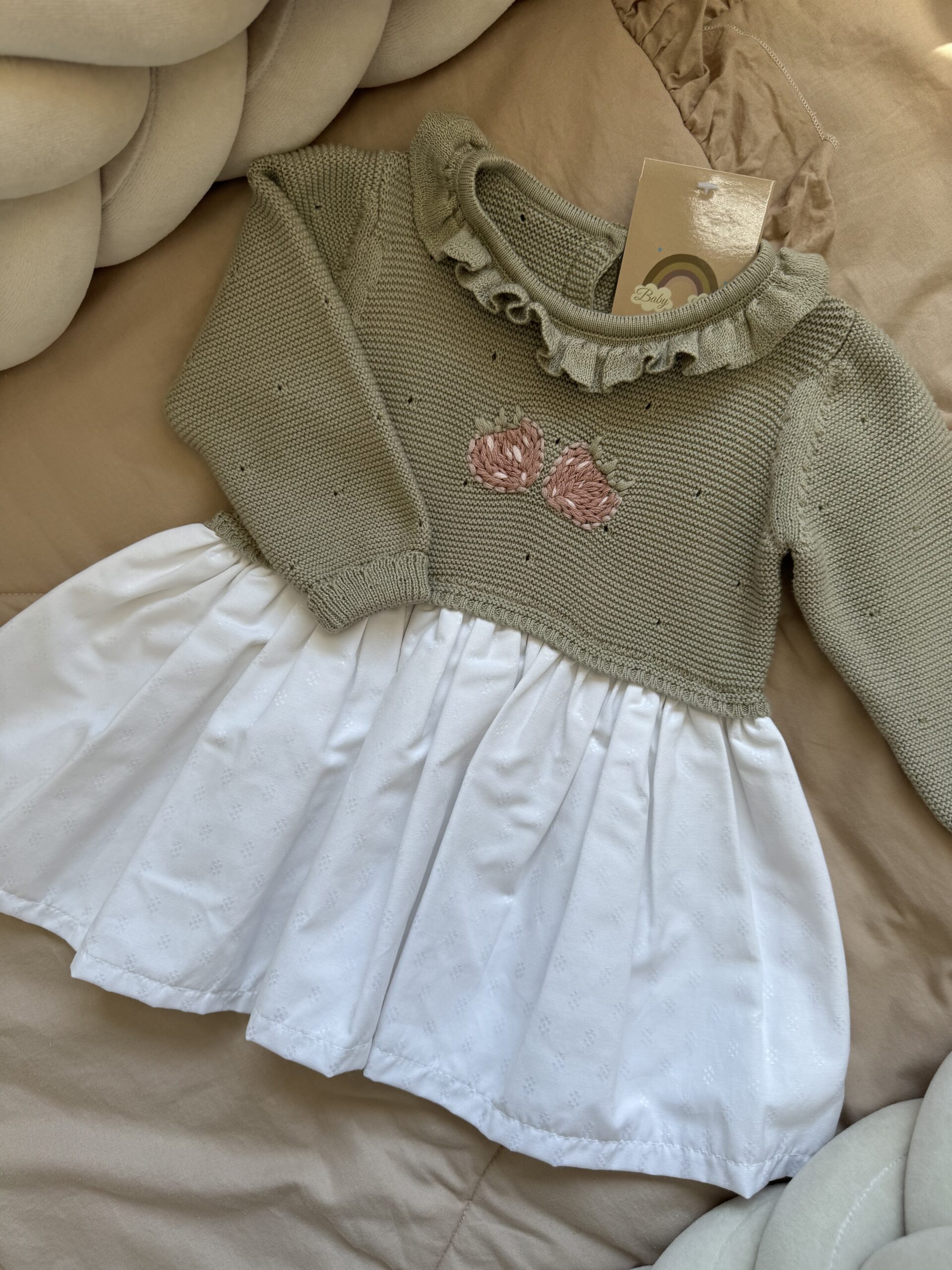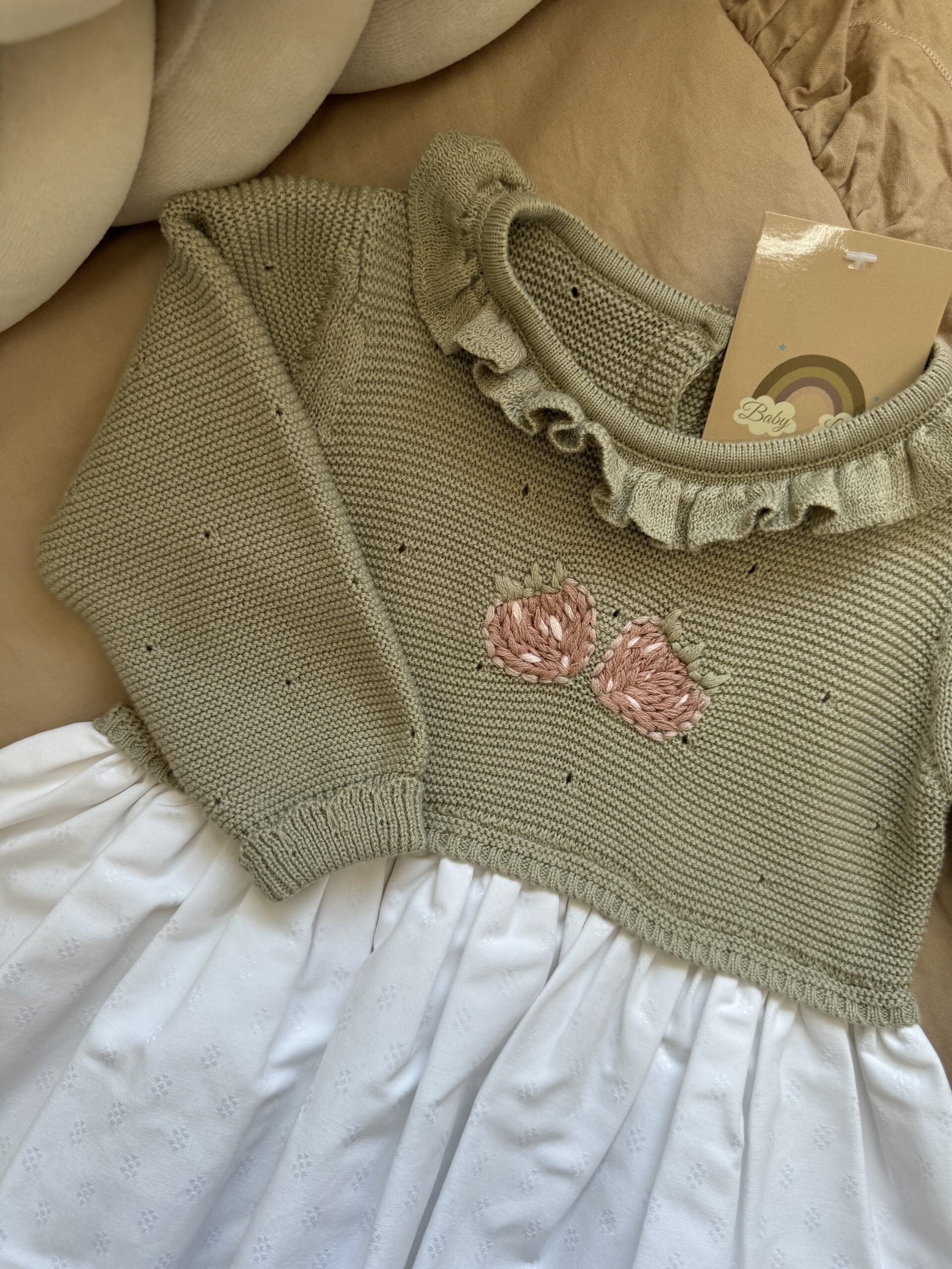 Prachtig ruffle kraagje en strawberry breiwerk.