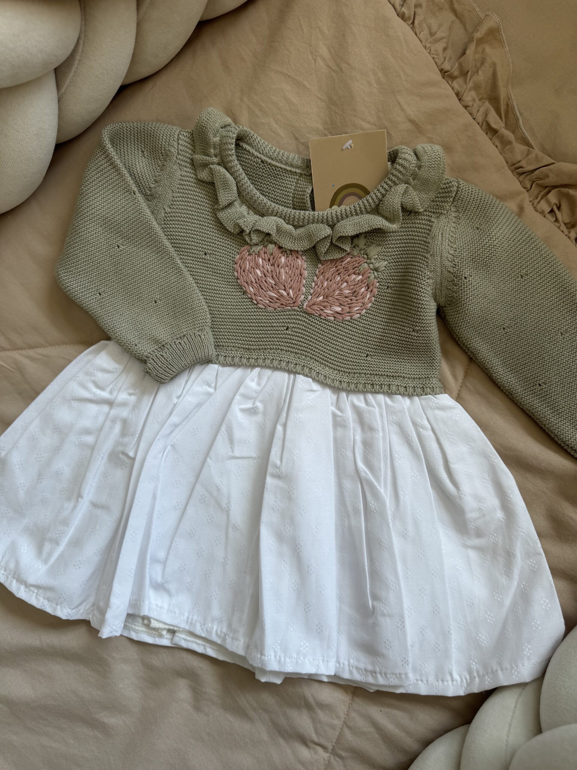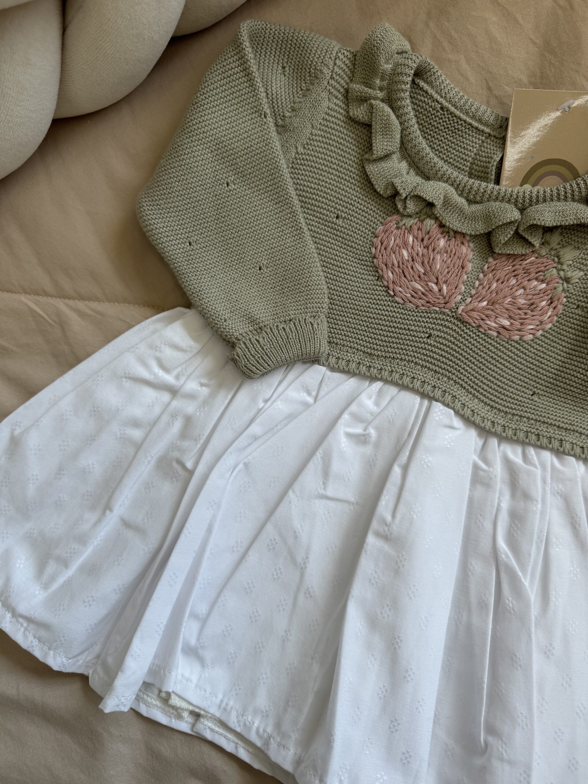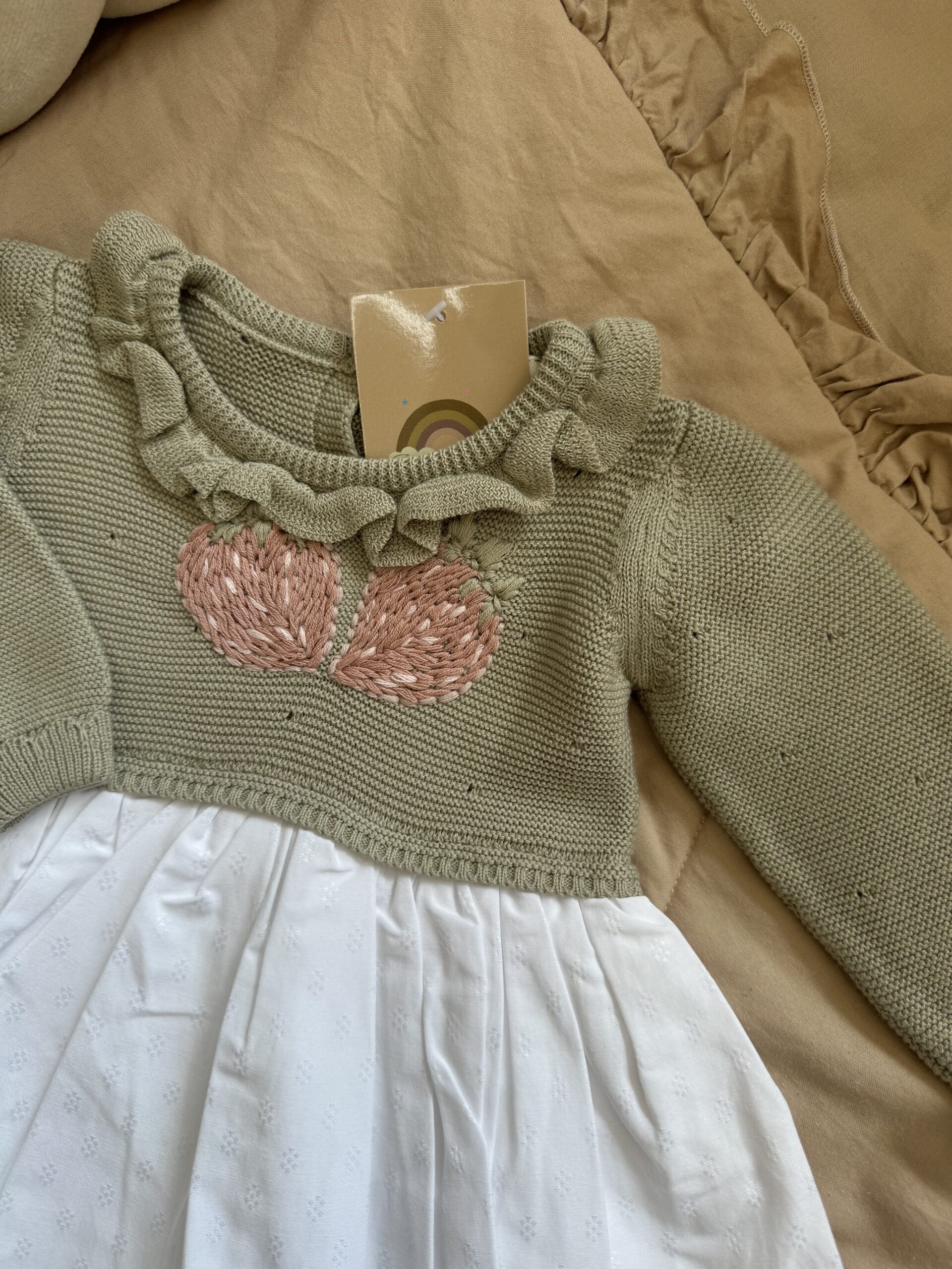 Prachtig ruffle kraagje en strawberry breiwerk.
