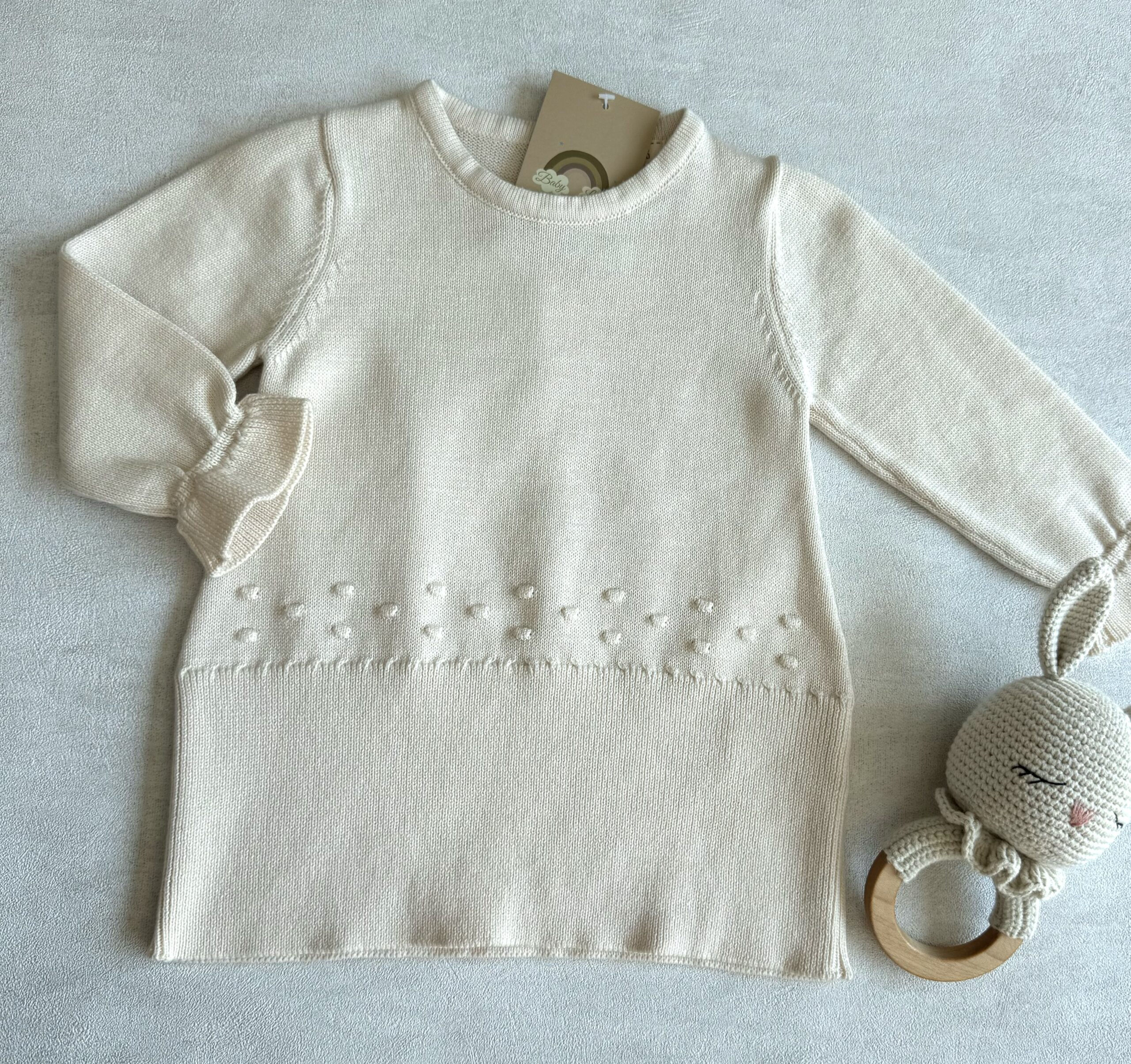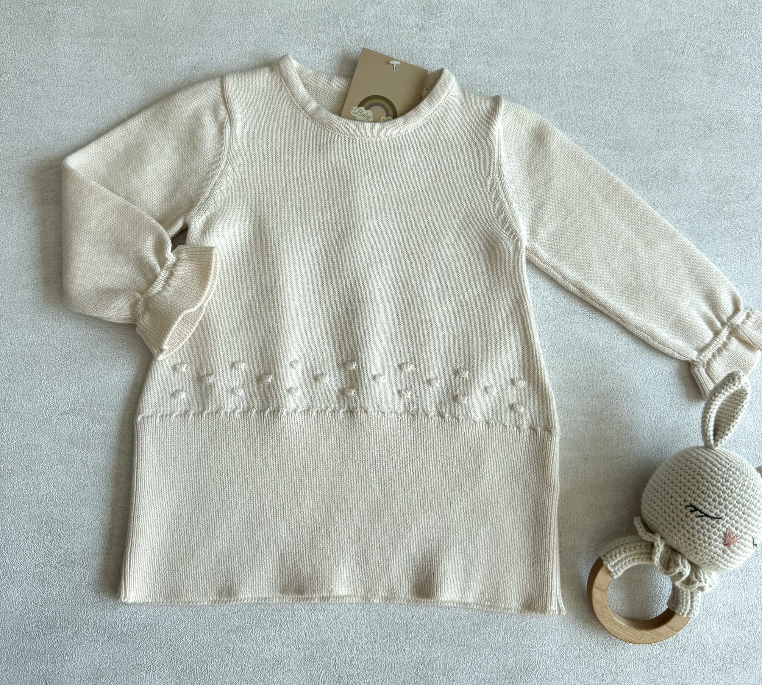 Het jurkje is verkrijgbaar in de maat 3-6 maanden.
