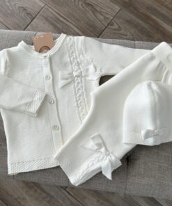Een gebreide 3-delige set in de kleur Cream.