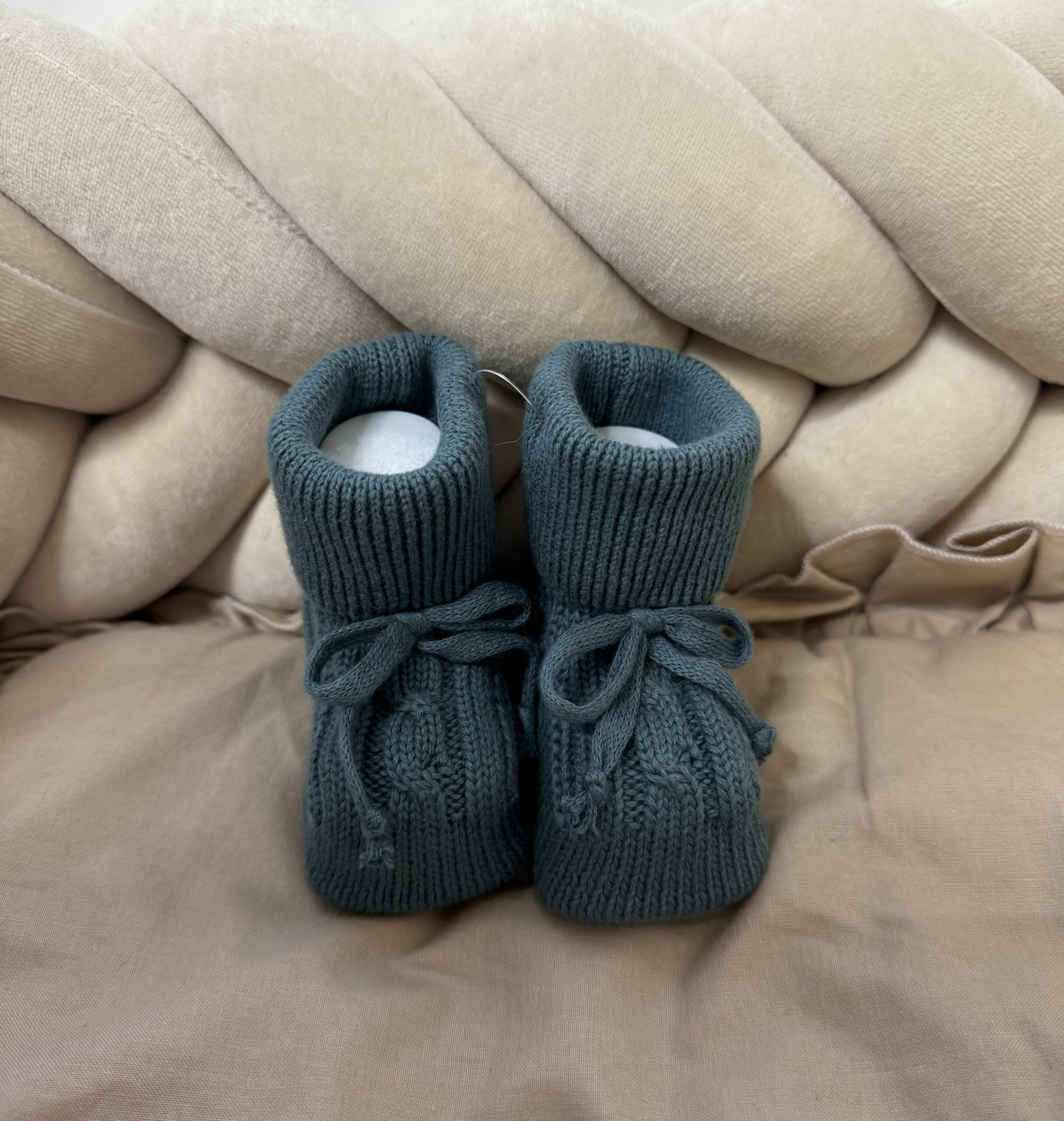 Gebreide booties/slofjes in de kleur AppleGreen. De slofjes zijn gemaakt van 100% biologisch katoen.