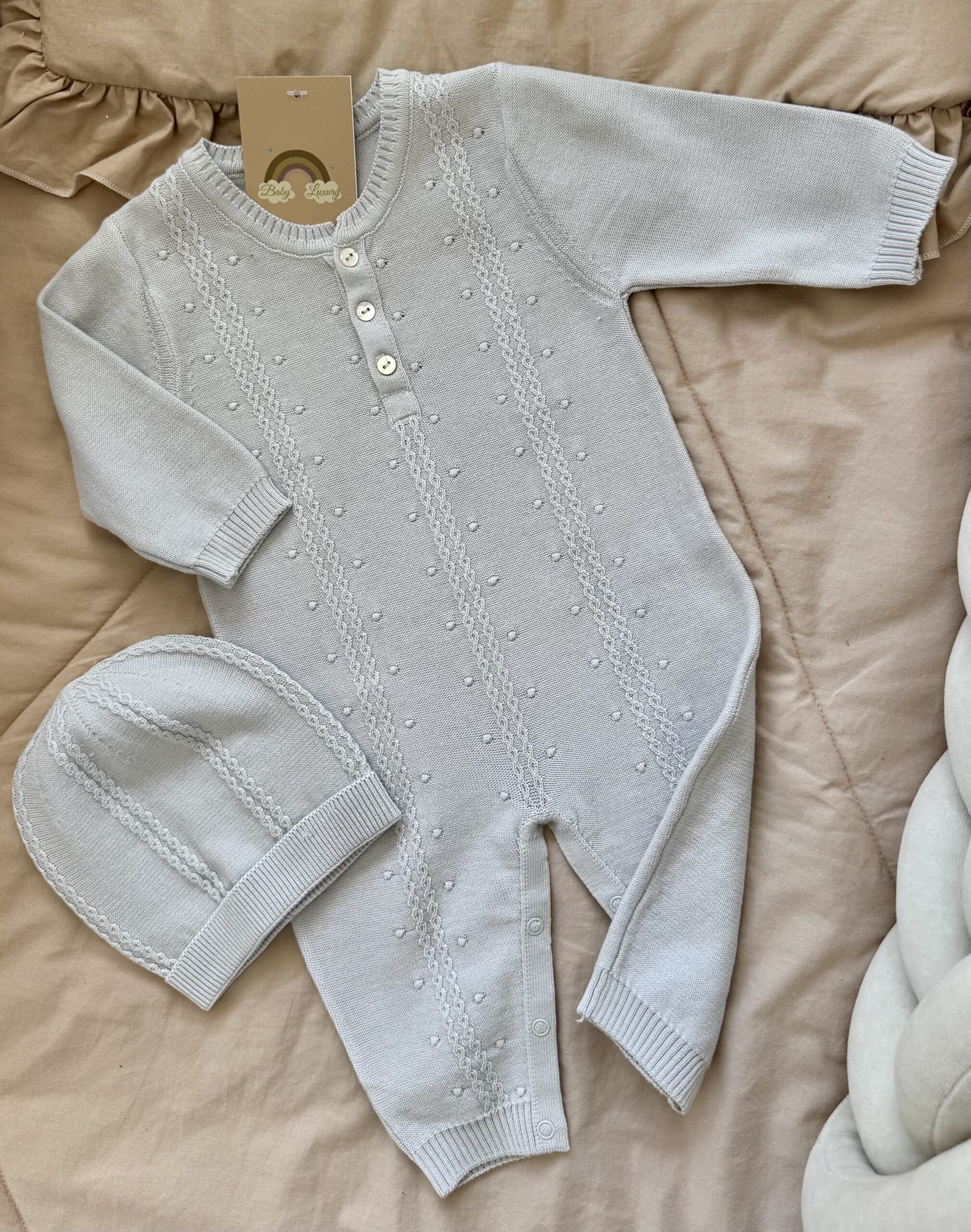 Een boxpakje met een bijpassend mutsje.