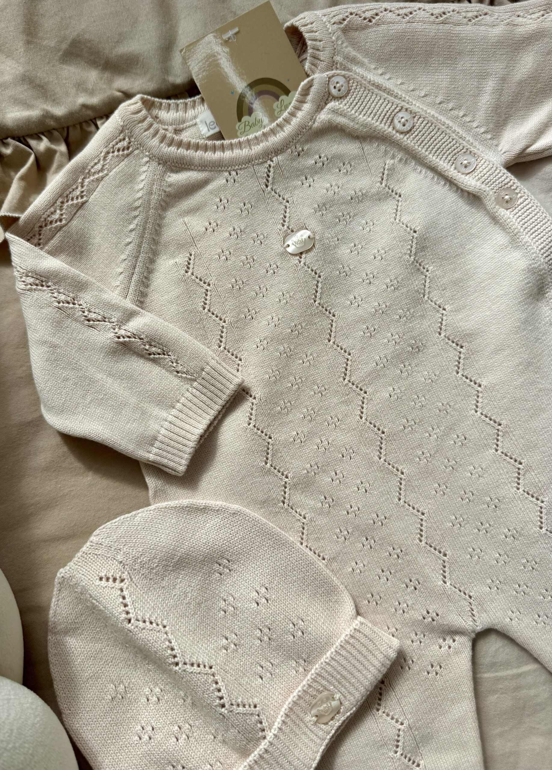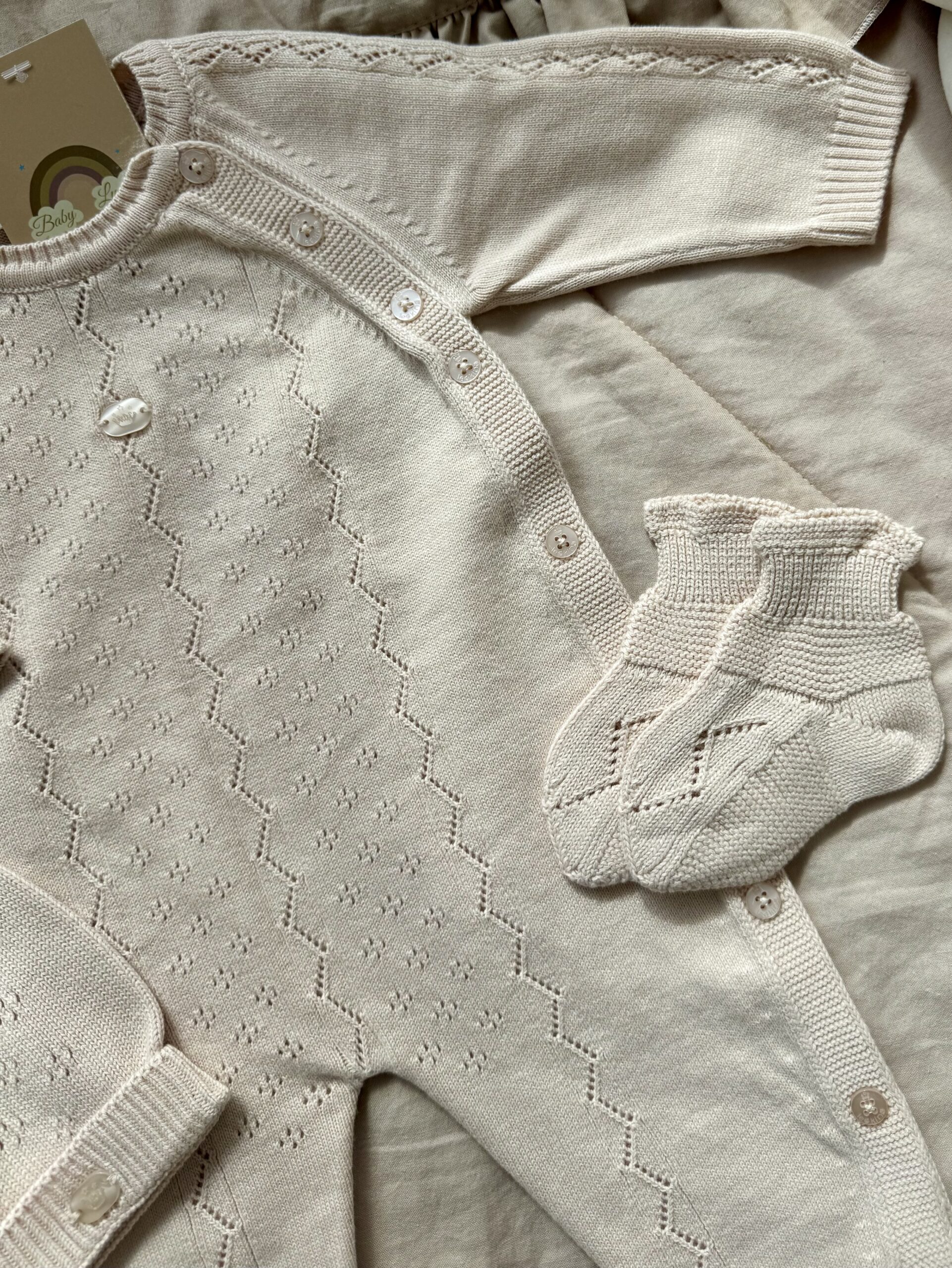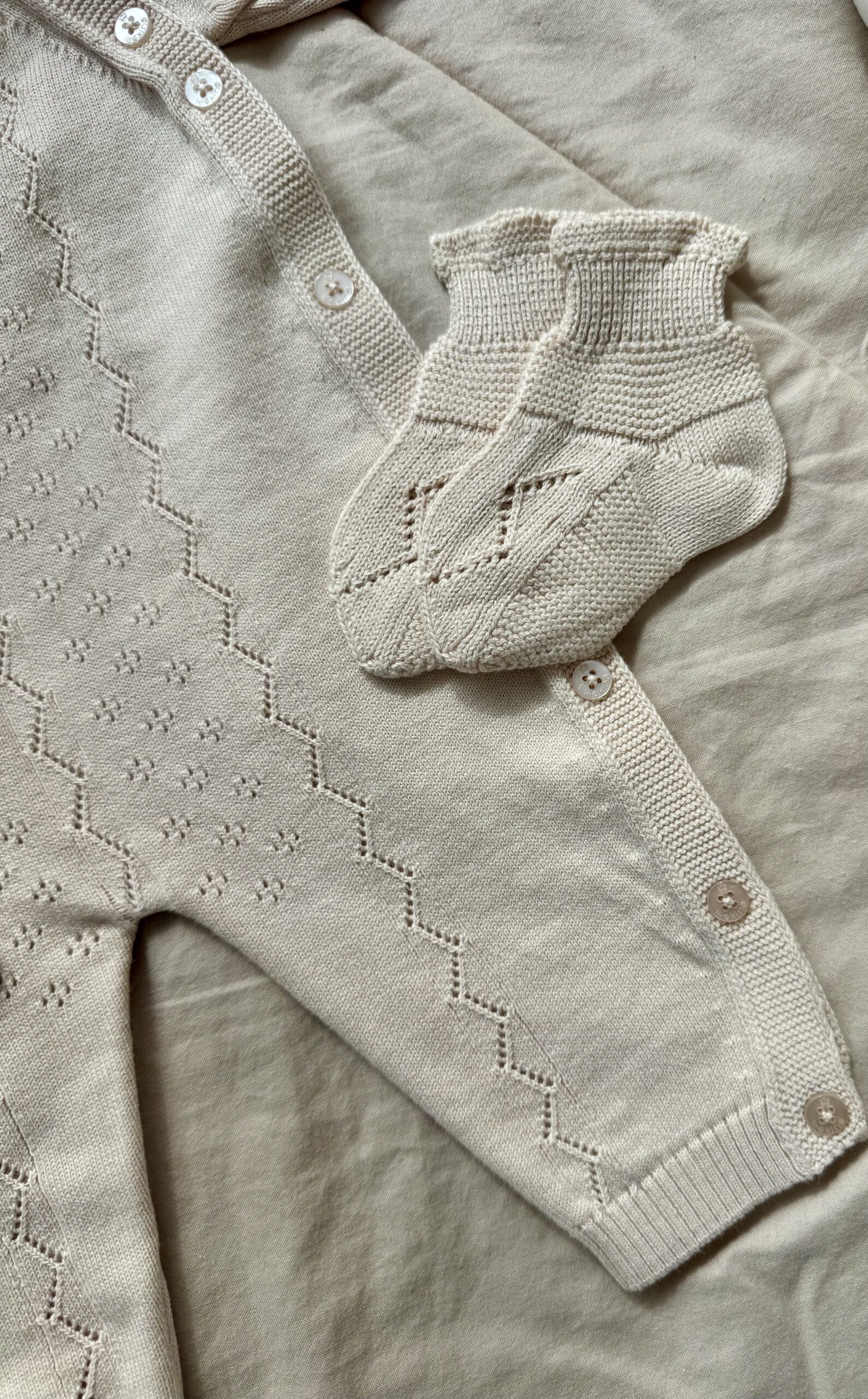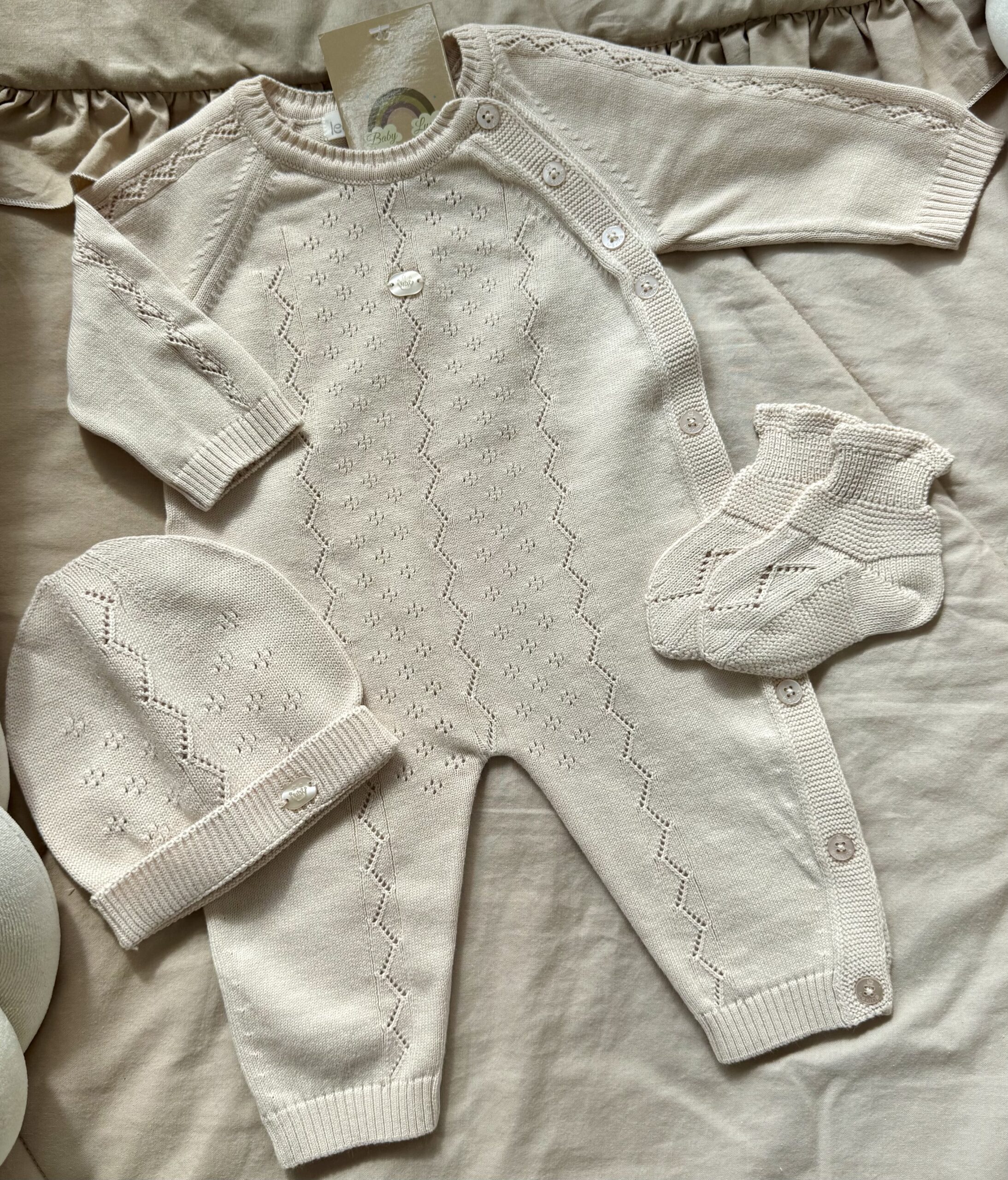 Een boxpakje met een bijpassend mutsje en sokjes.