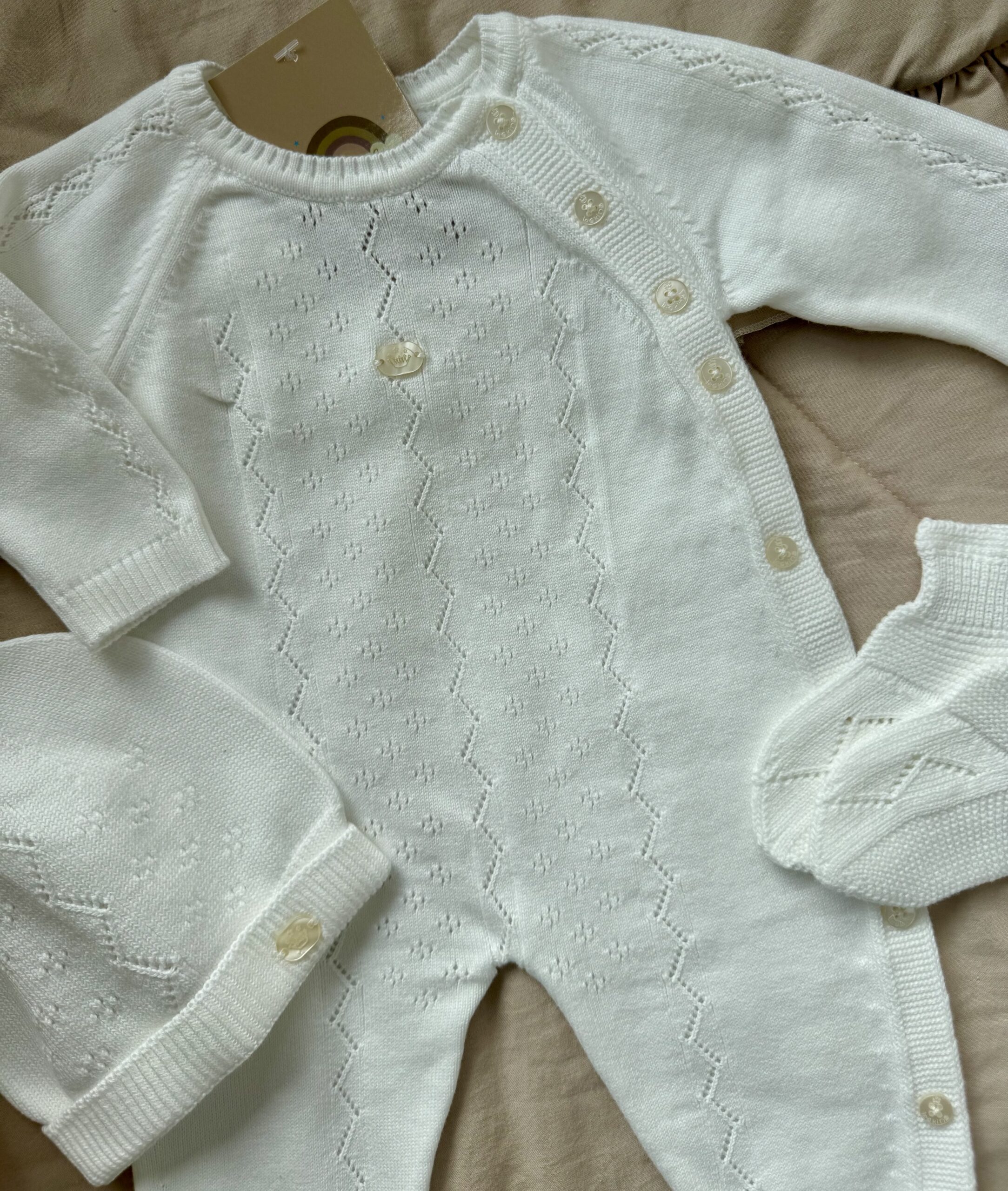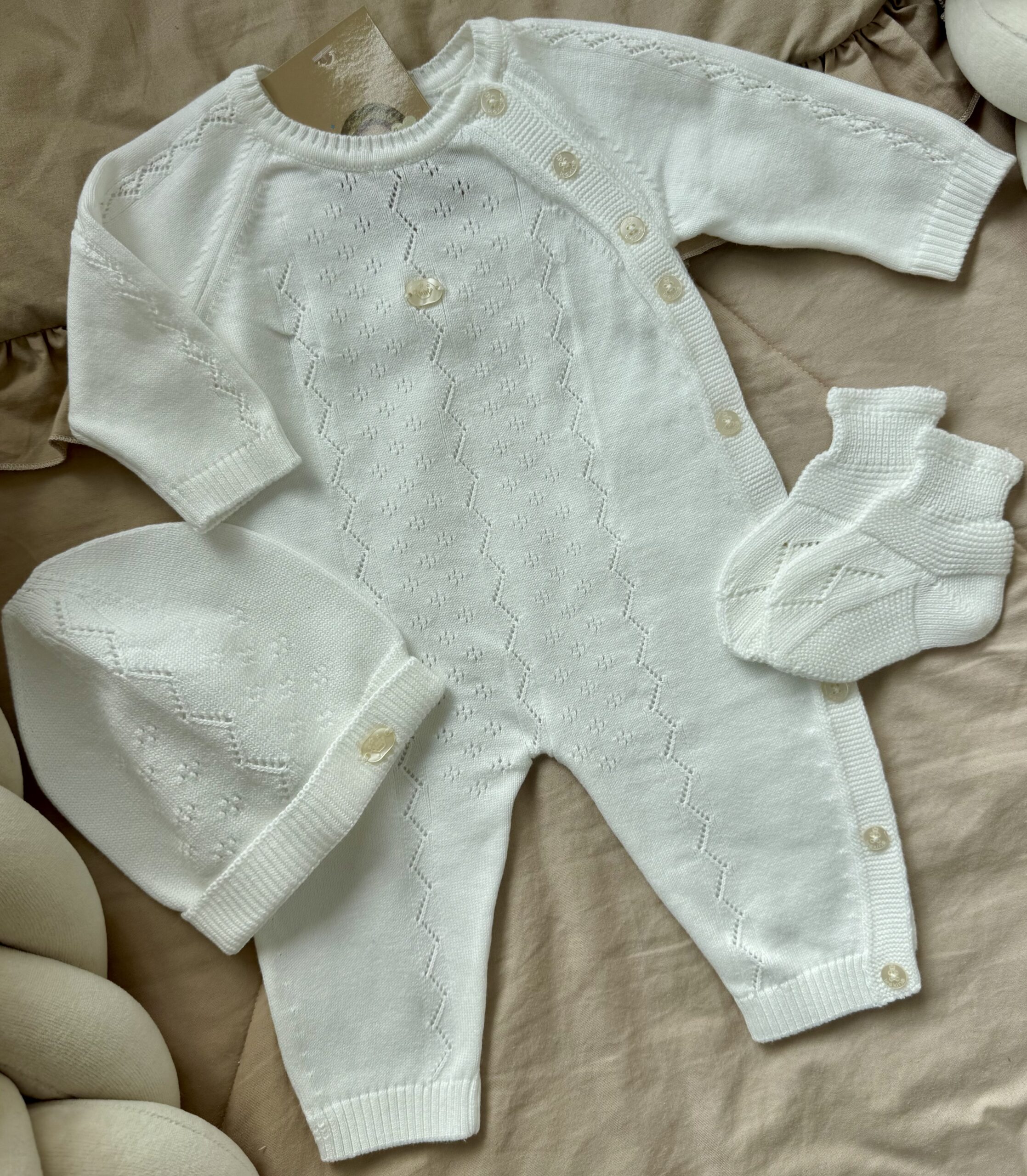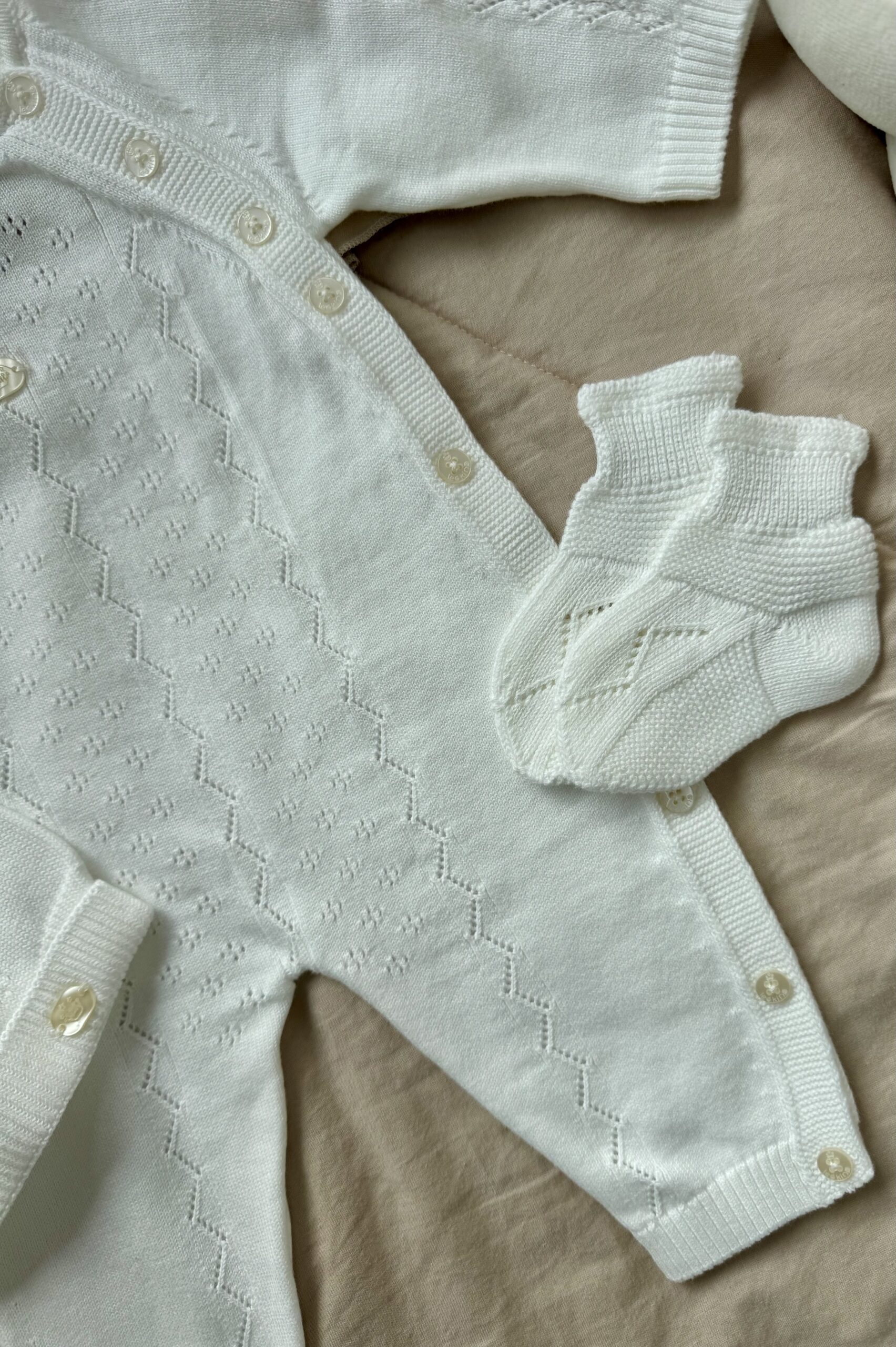 Een boxpakje met een bijpassend mutsje en sokjes.