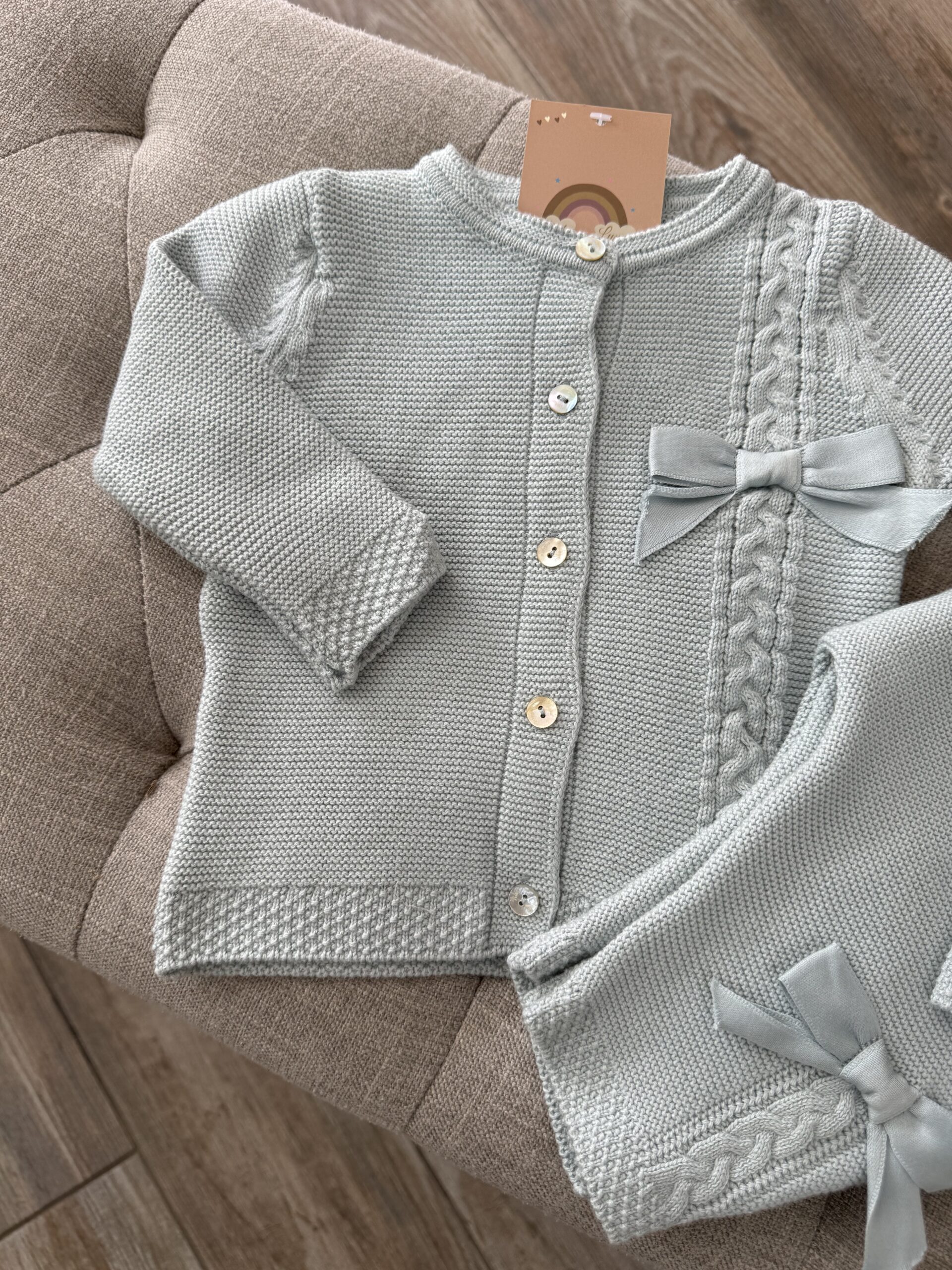 Een gebreide 3-delige set in de kleur Aqua Mint.