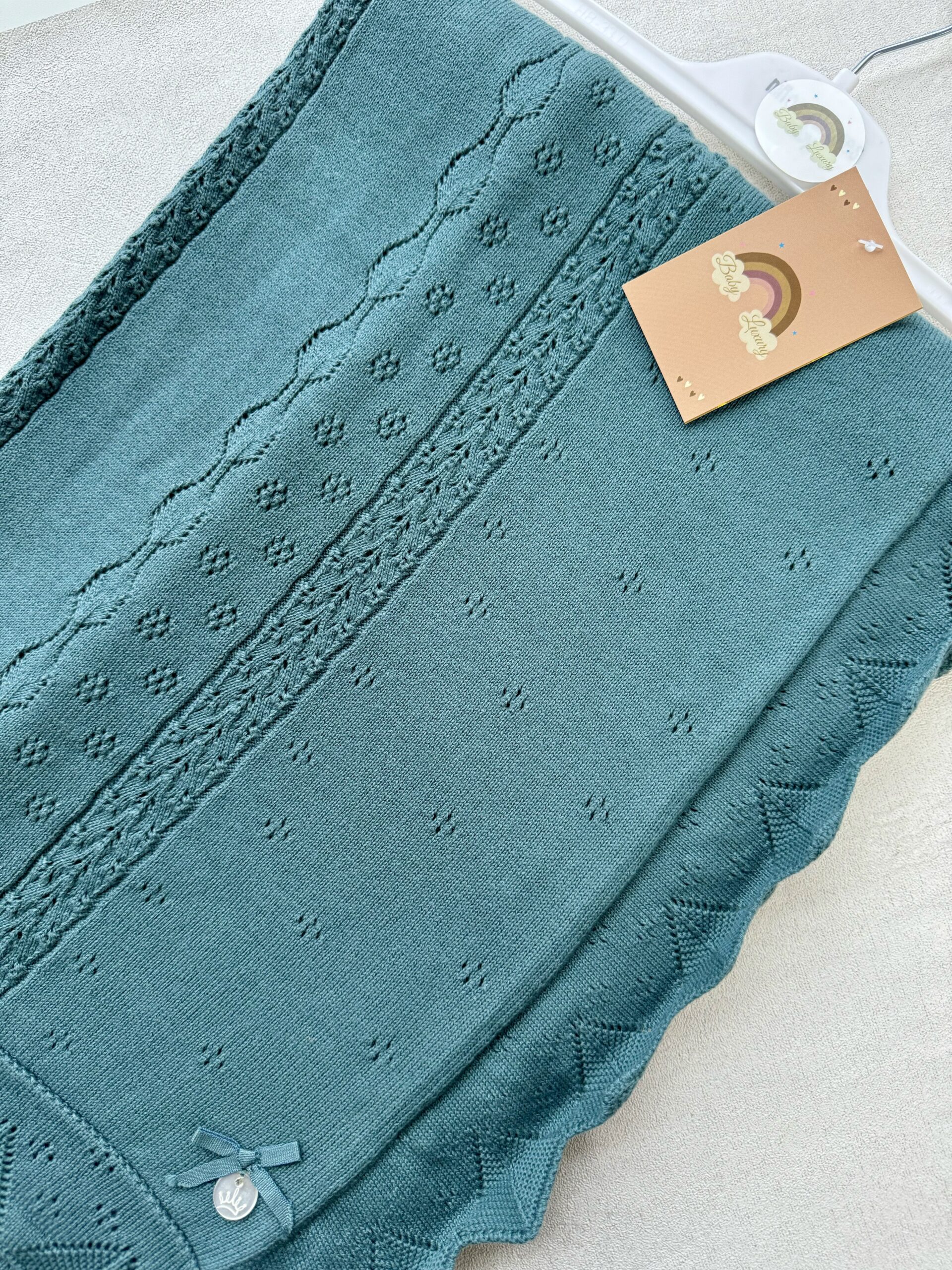 Een gebreide wiegdeken in de kleur AppleGreen.