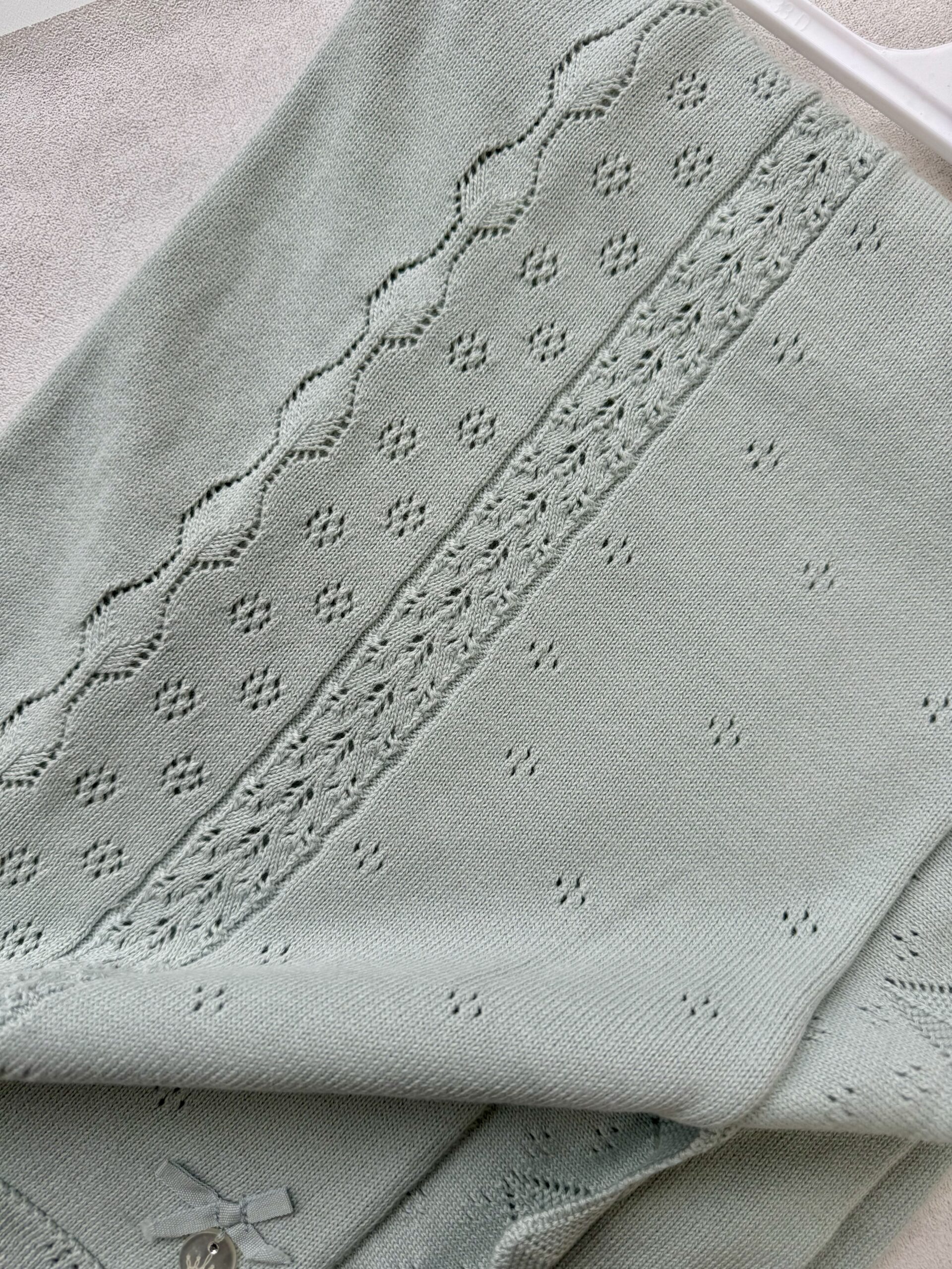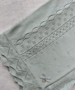Een gebreide wiegdeken in de kleur Aqua Mint.