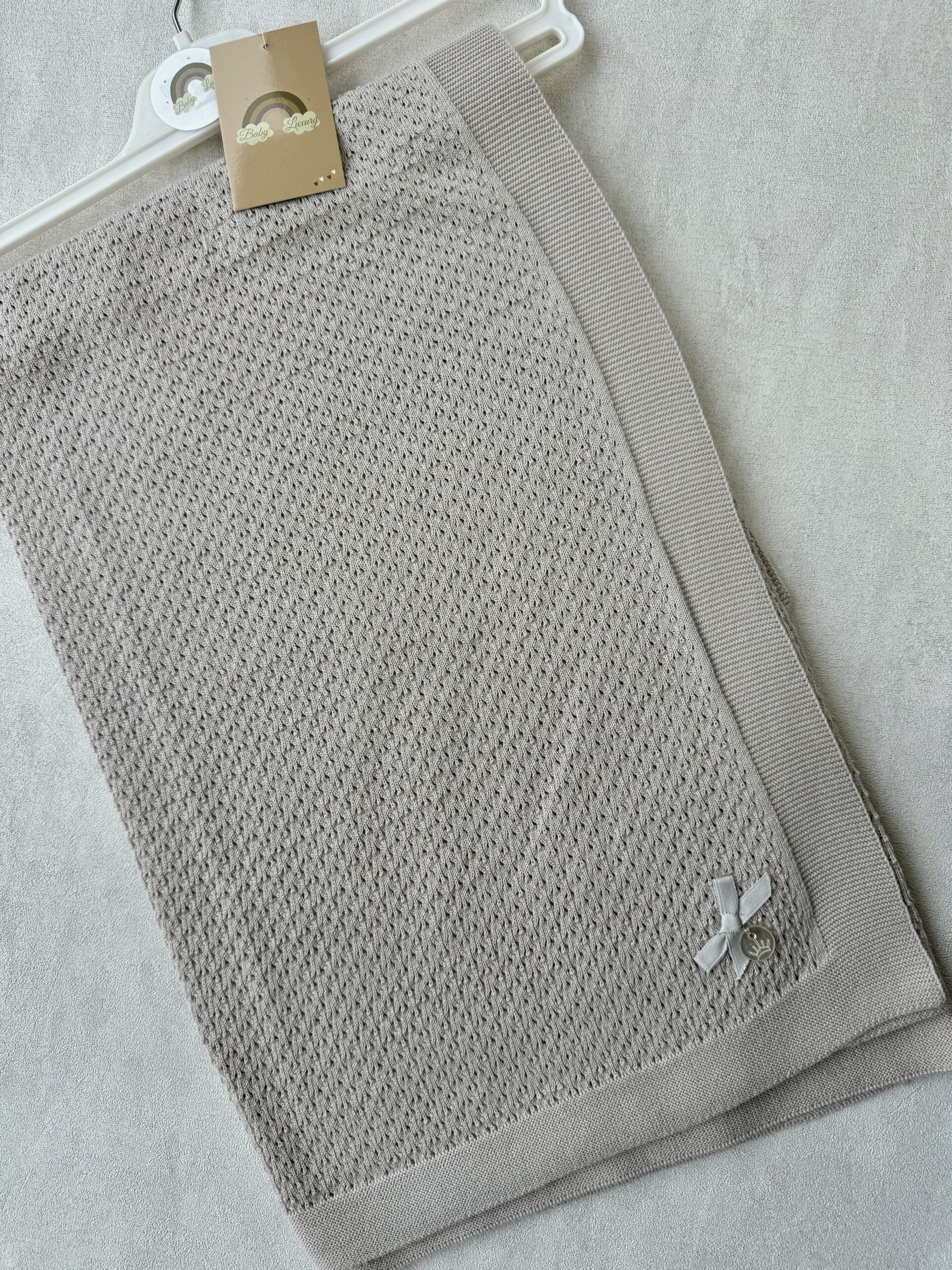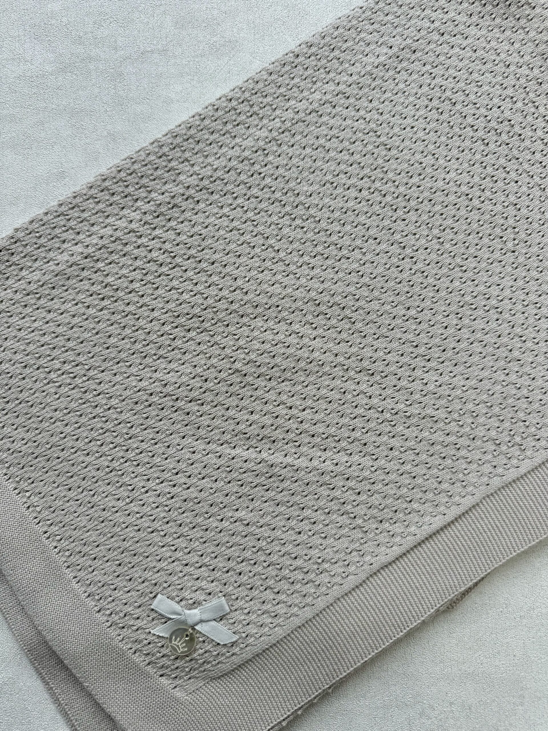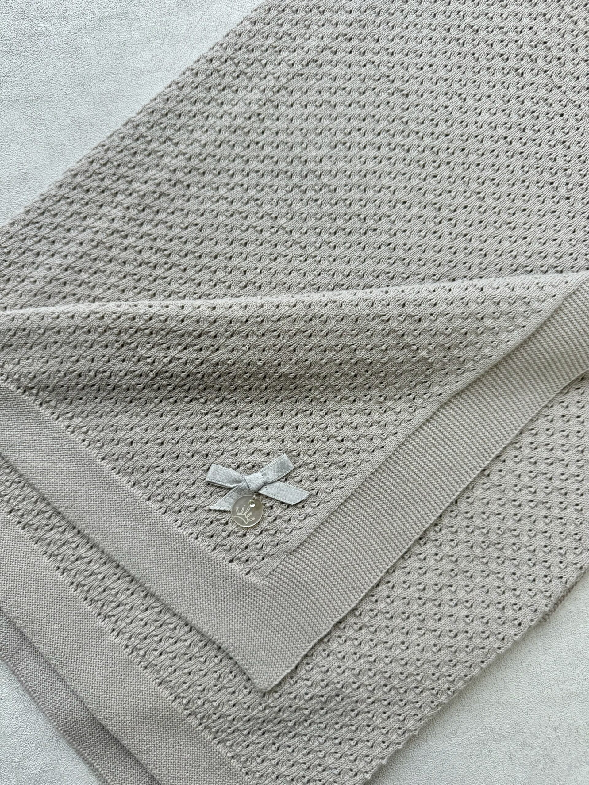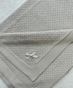De wiegdeken heeft een gebreid motief en eemmstrik detail.