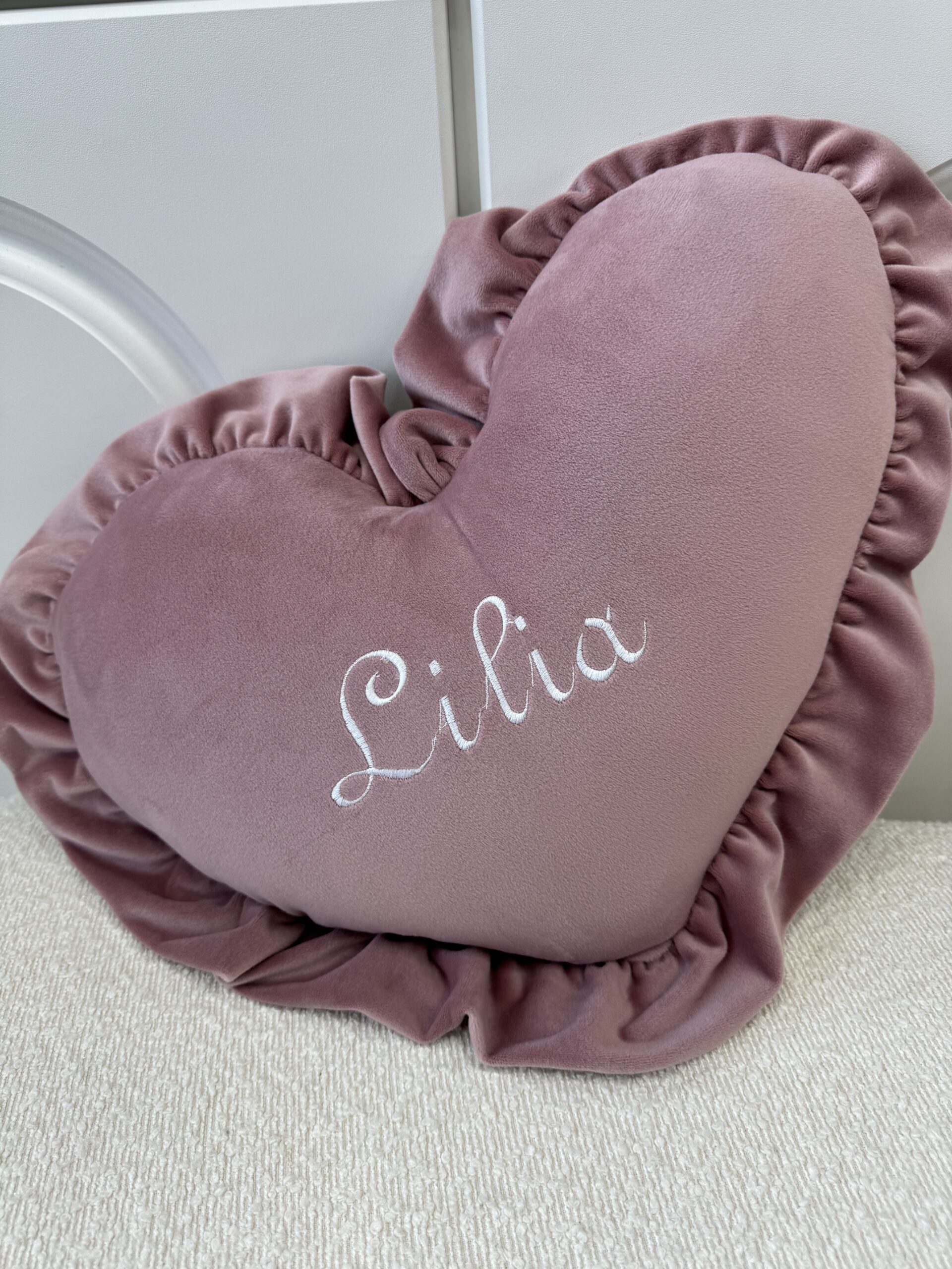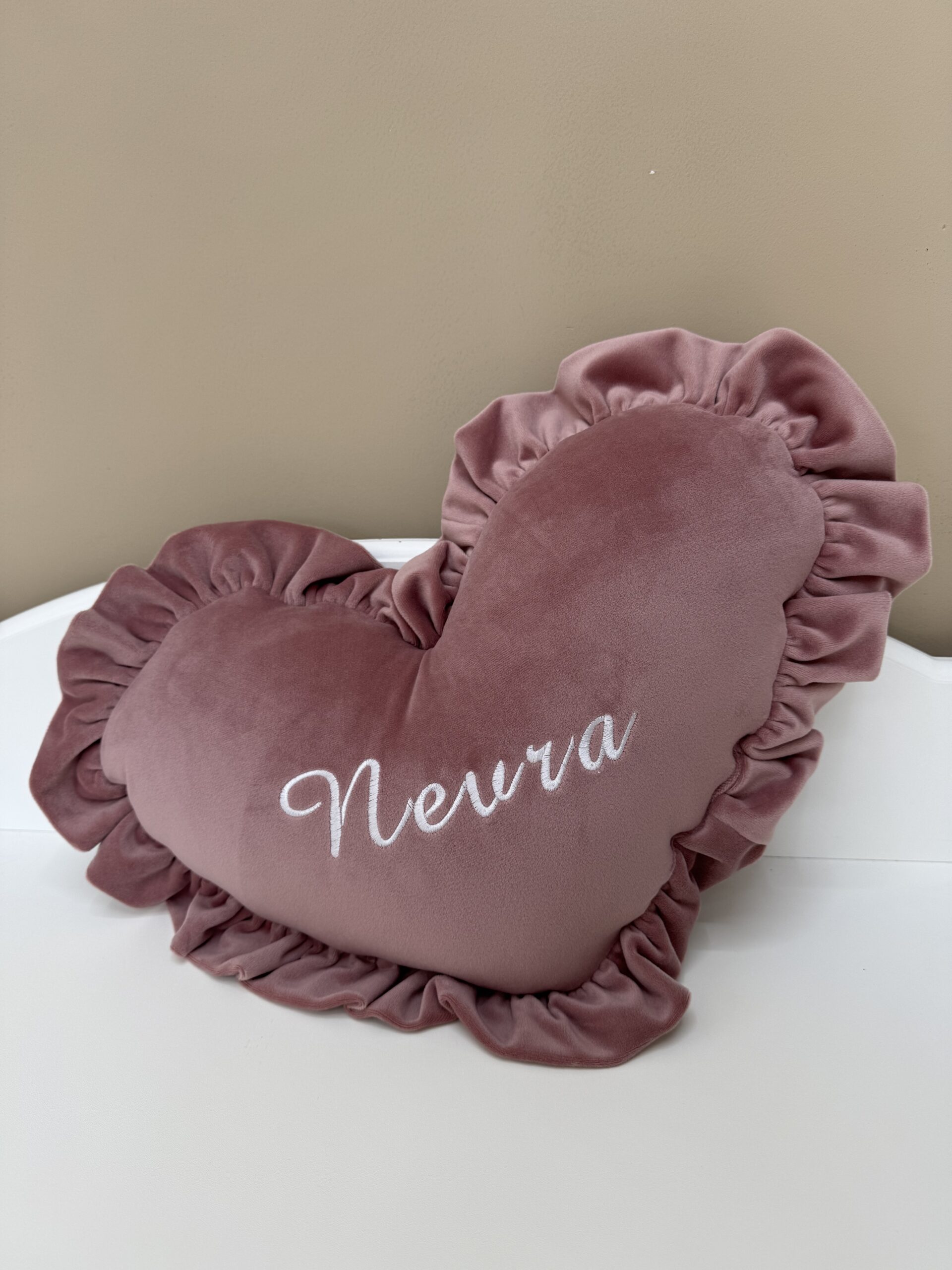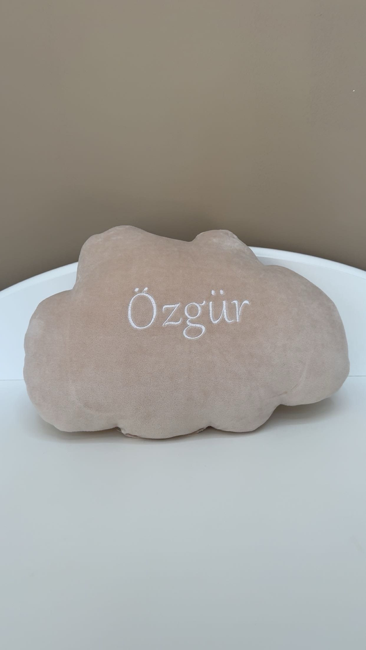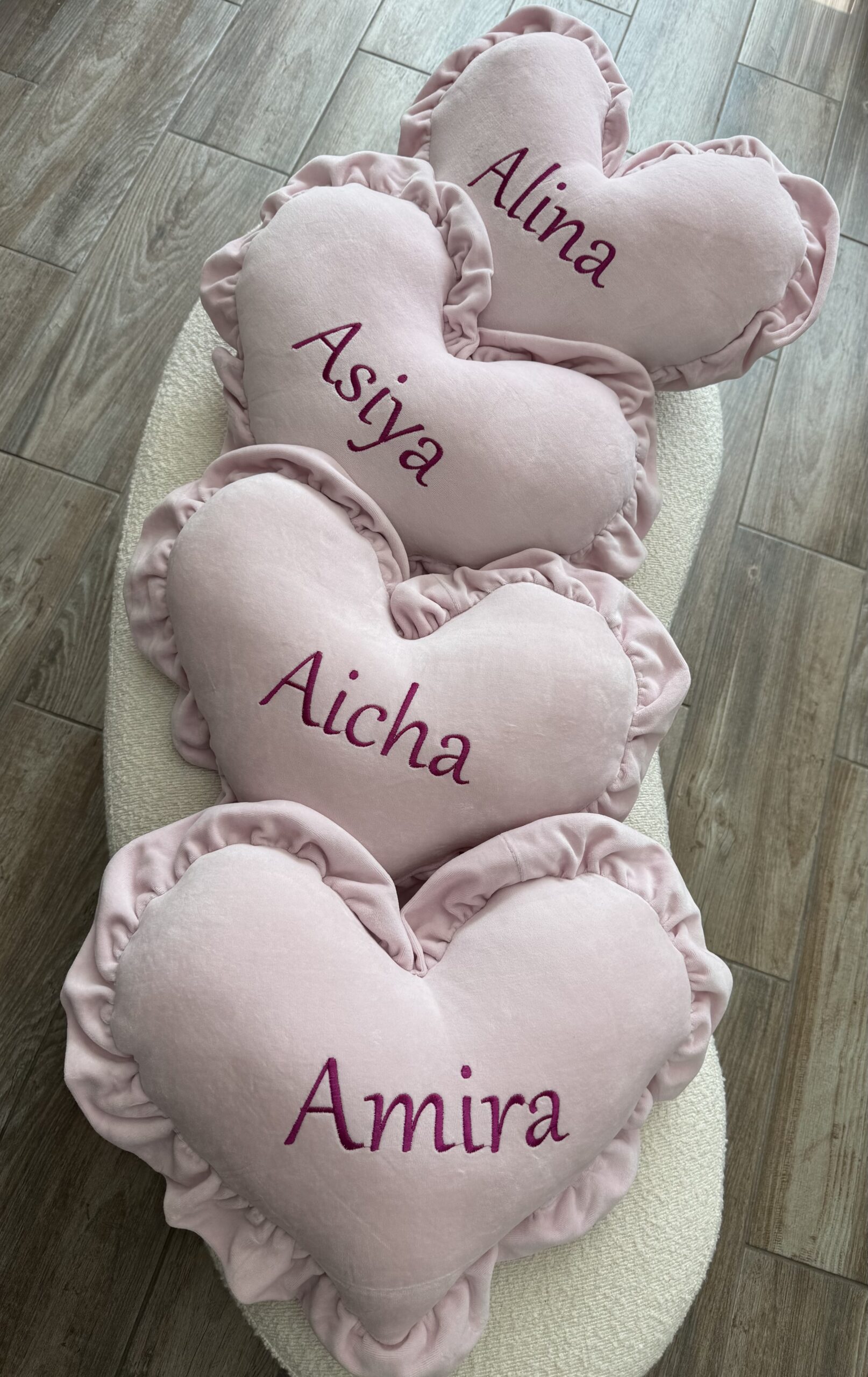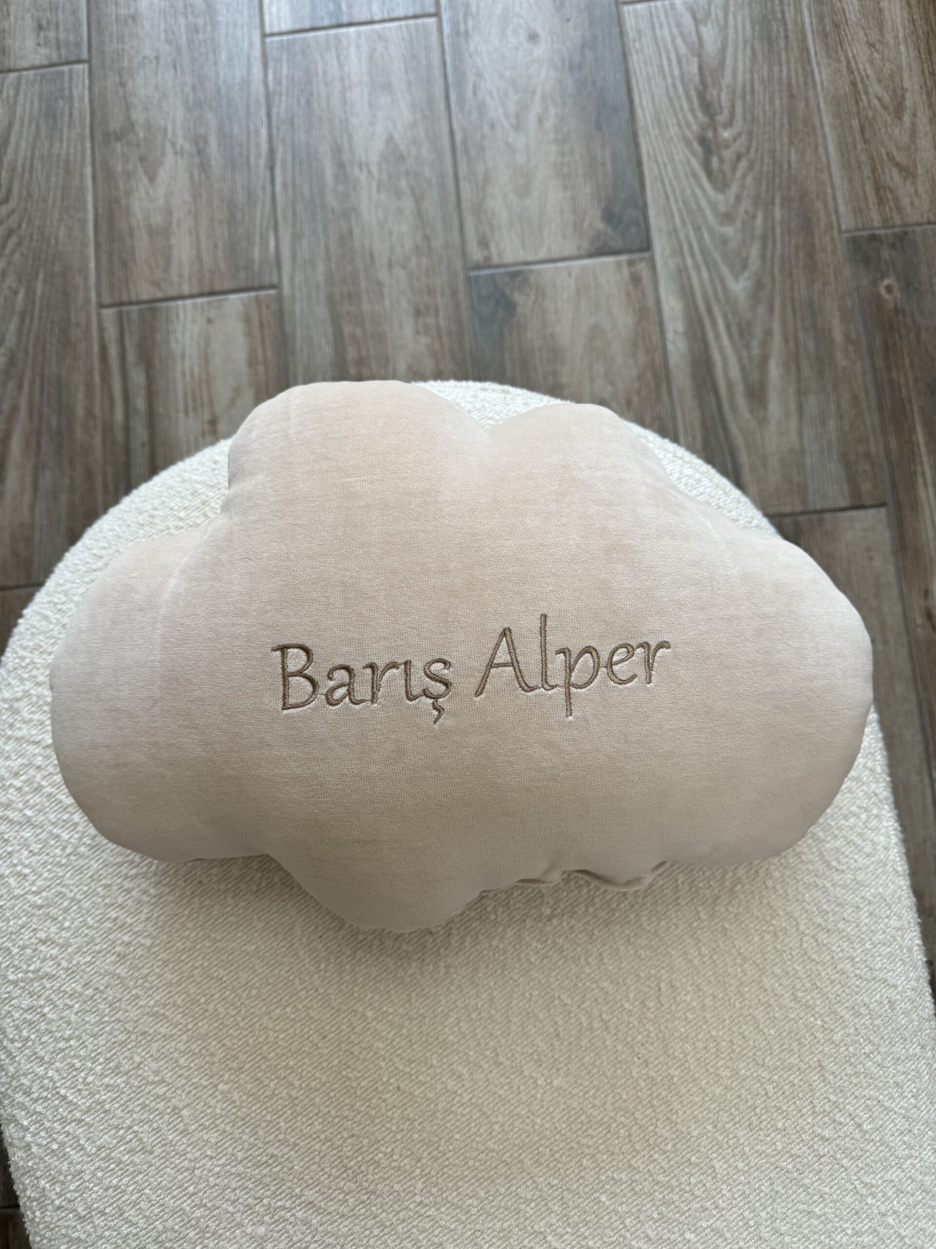 De handgemaakte kussens met geborduurde naam zijn verkrijgbaar in 45 cm en 55 cm.