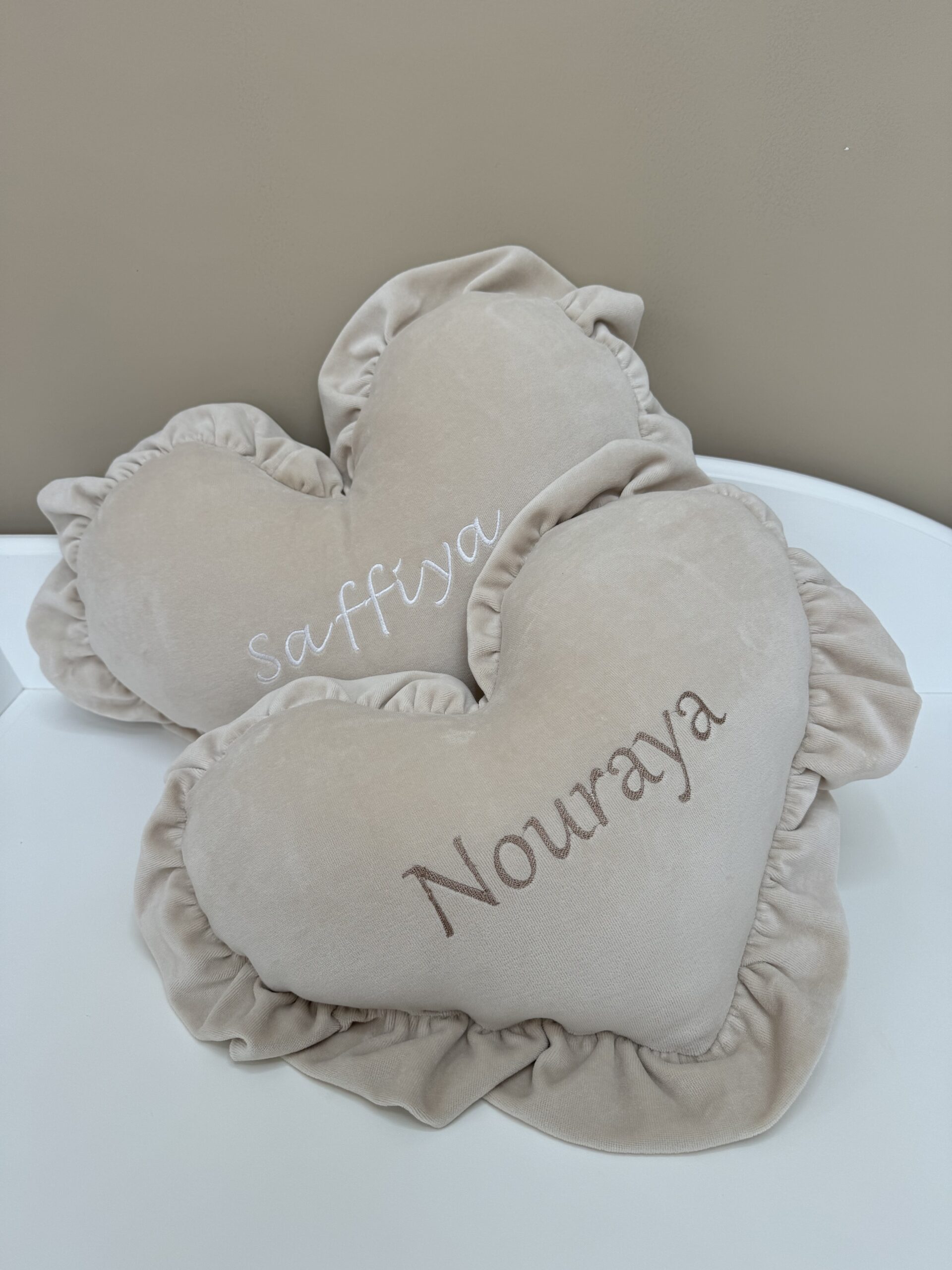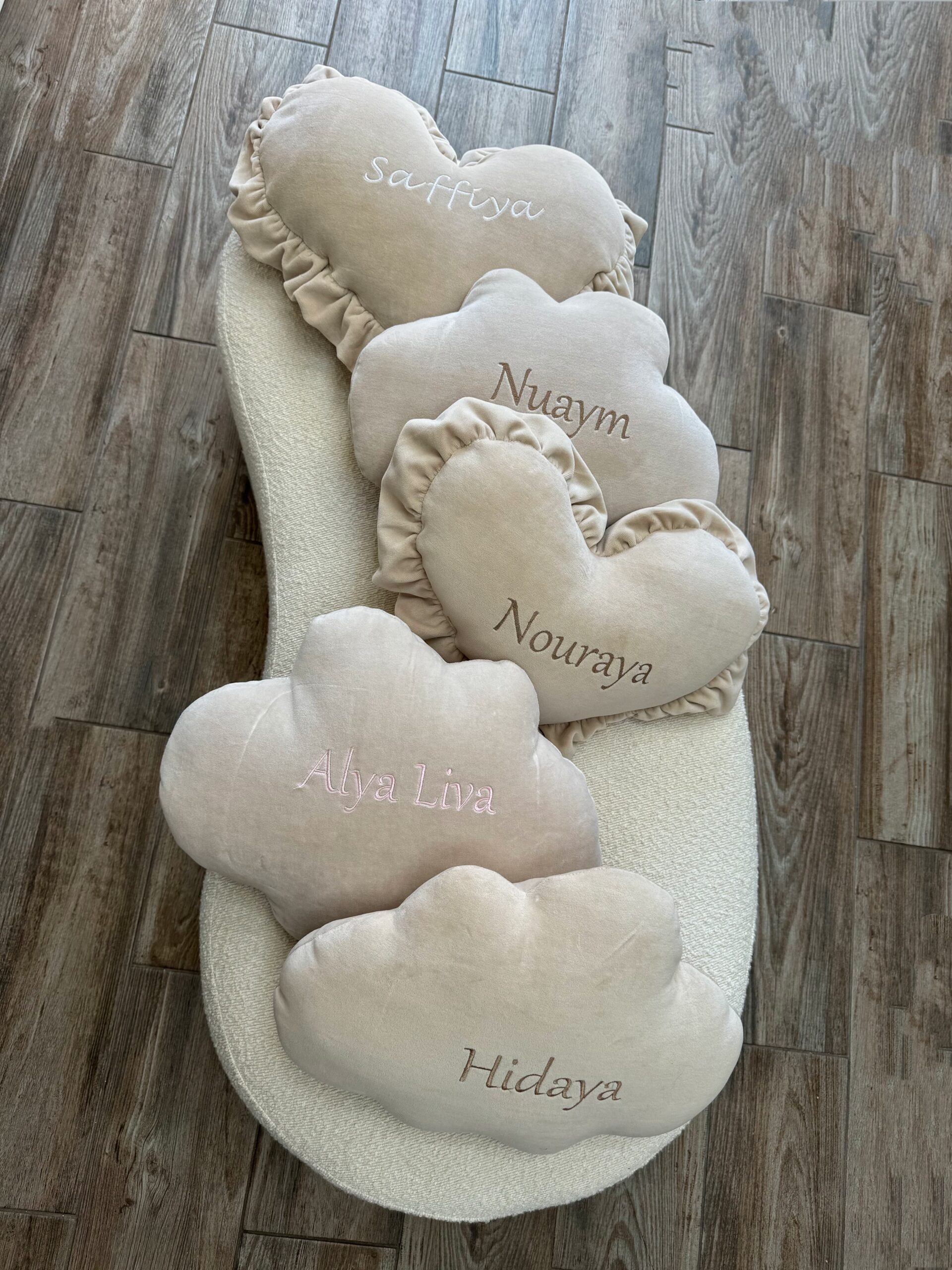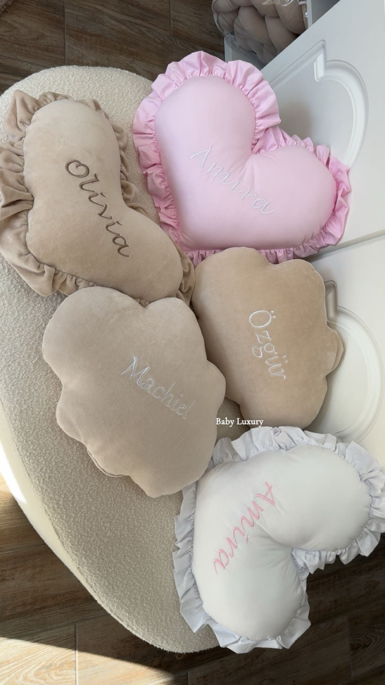 Ook de vorm van het kussen kun je zelf bepalen. Wij hebben een harten vorm, een wolk, en een beer. Maar elke andere vorm mag natuurlijk ook. Álles is mogelijk.
