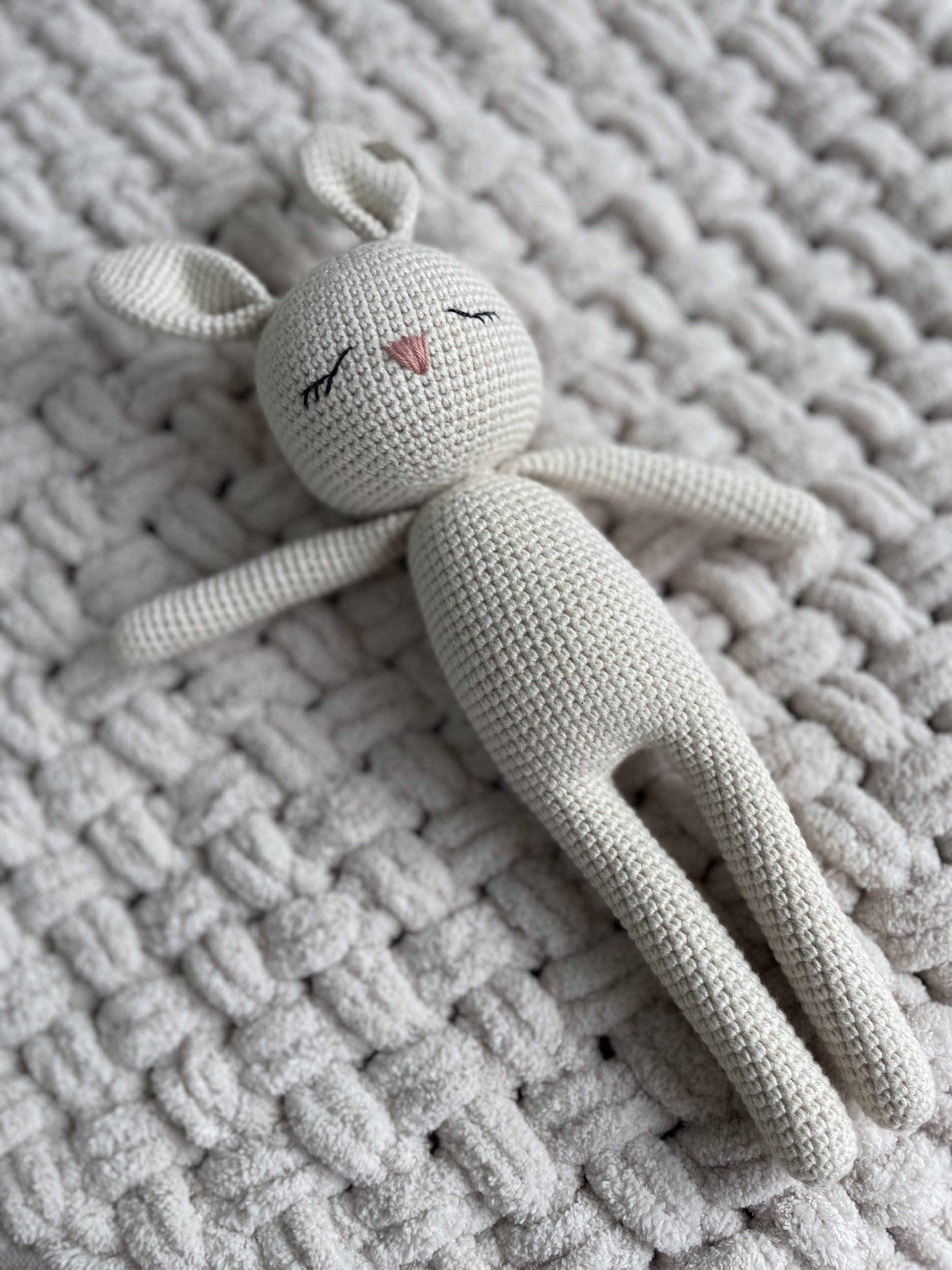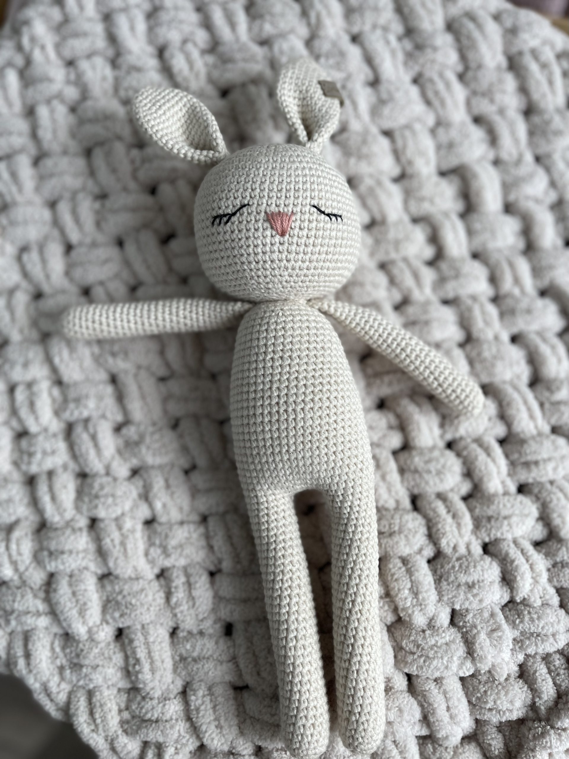 Een handgemaakt konijn knuffel in de kleur Sand.