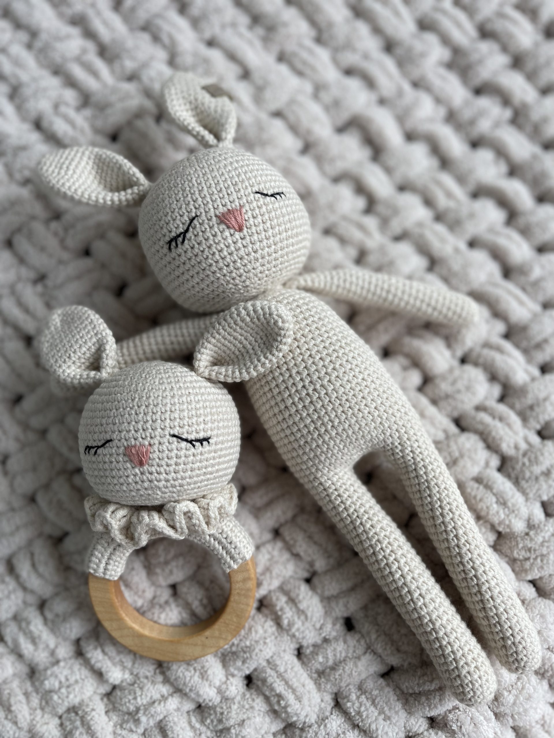 Ook verkrijgbaar als set, met een konijn rammelaar!