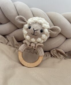 Een handgemaakte rammelaar in de vorm van een schaapje