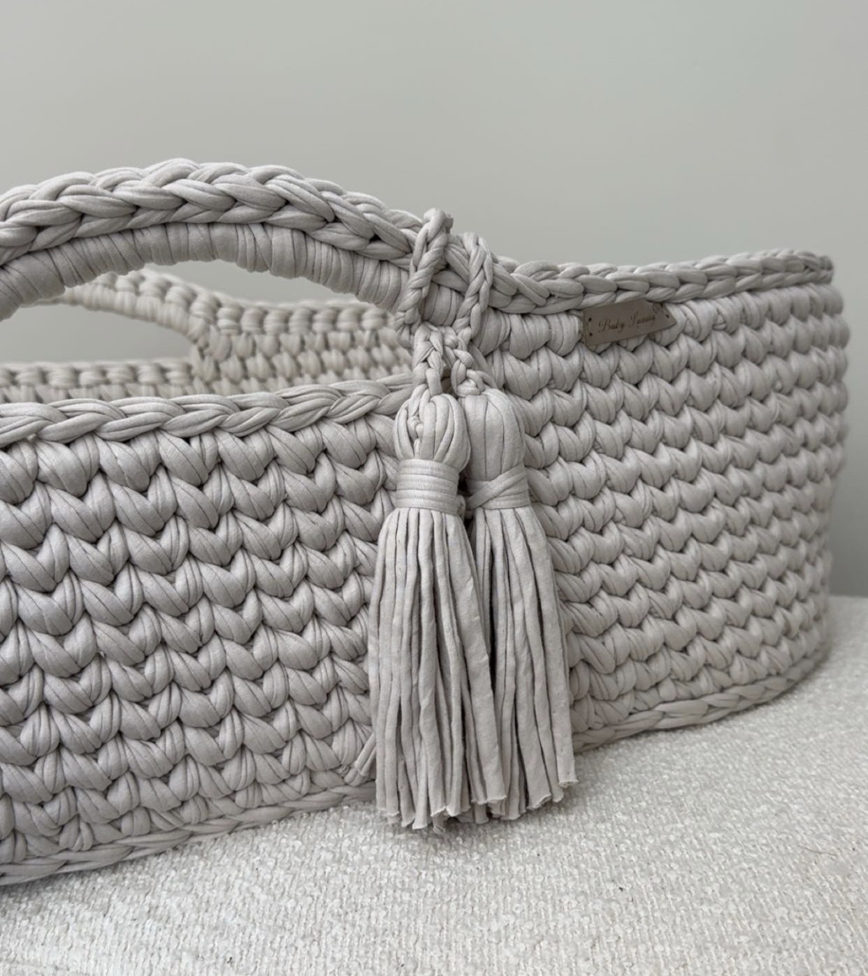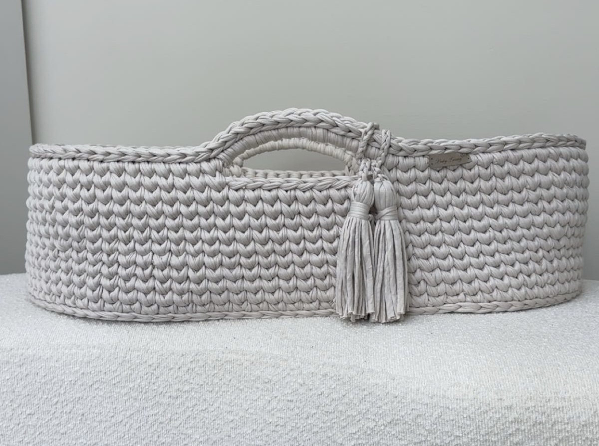 Baby Luxury’s populaire gehaakte mozesmand is erg comfortabel voor de baby en biedt geborgenheid.