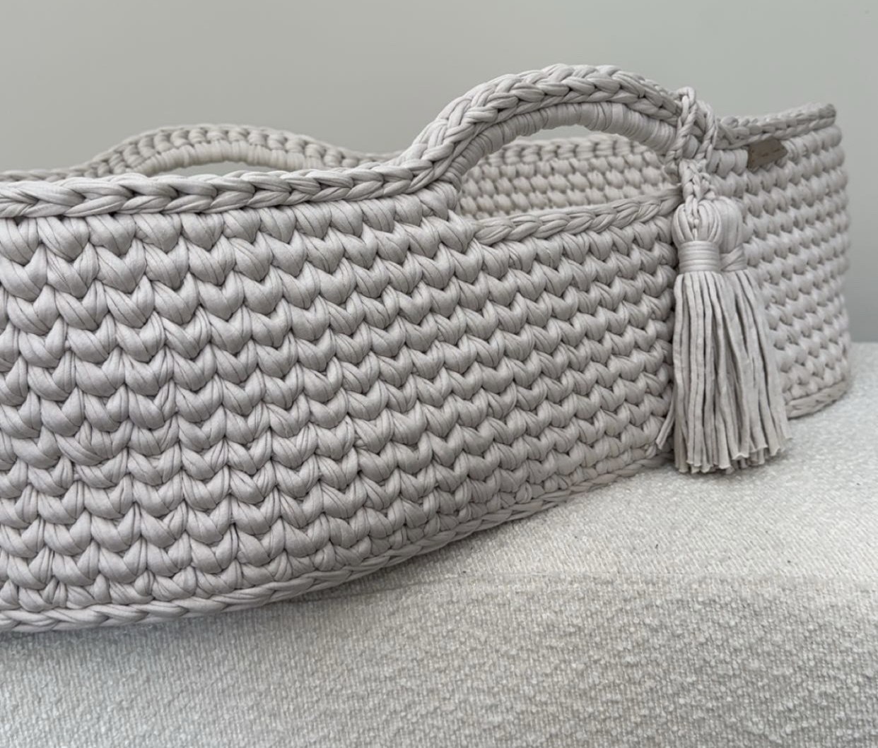 De mozesmand wordt exclusief met de hand gehaakt en is voorzien van een stevig matrasje en kussentje.