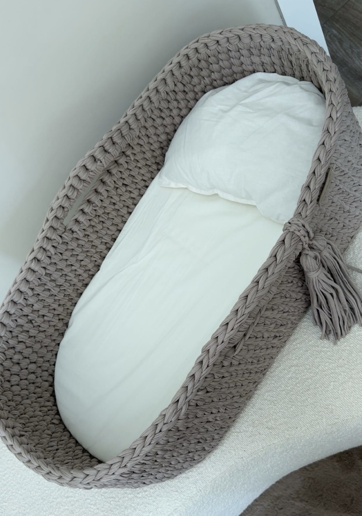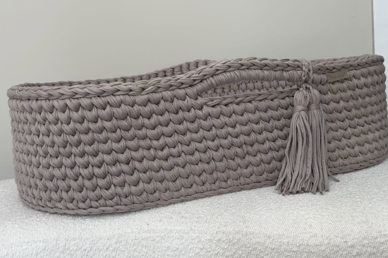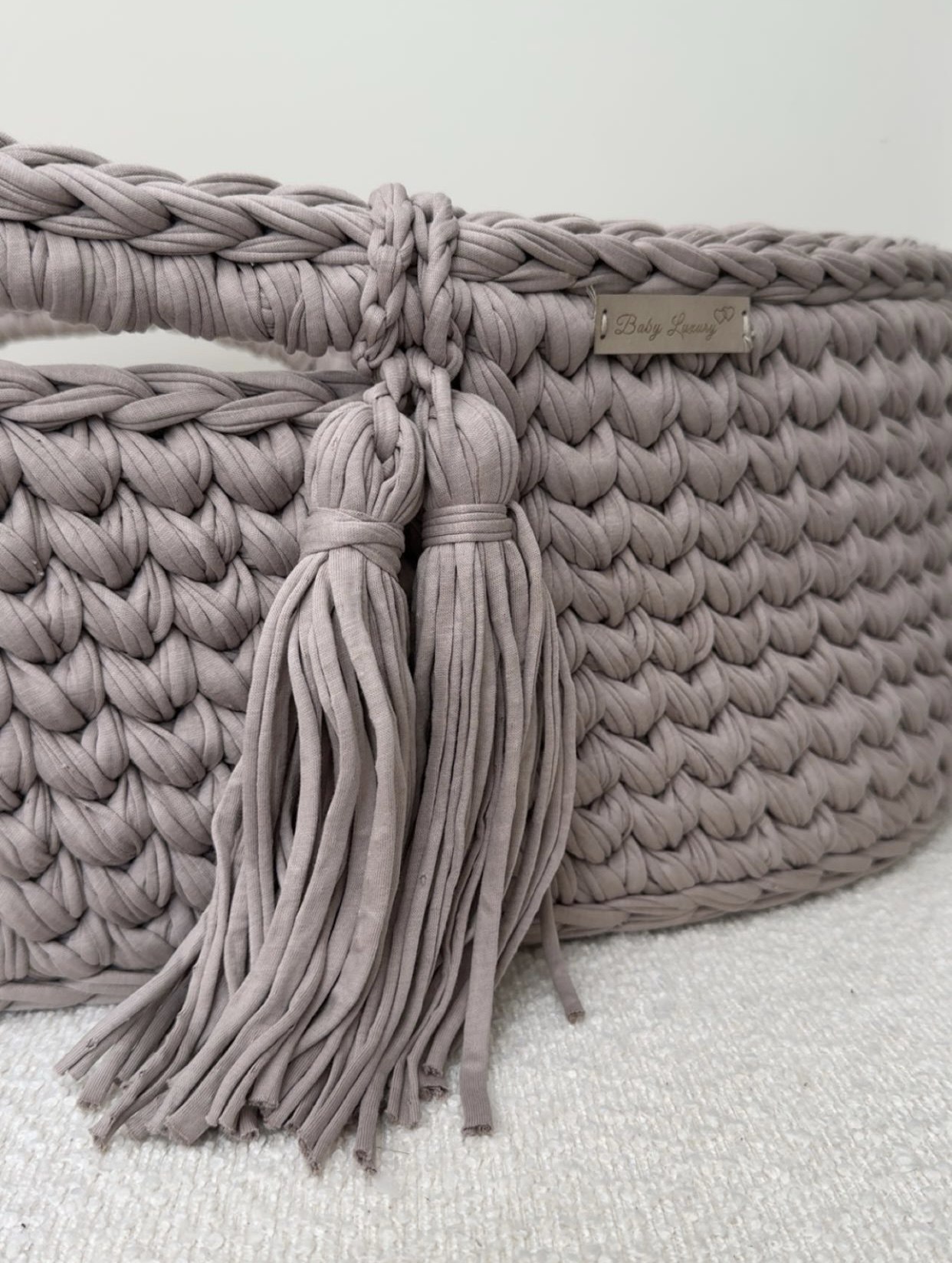 Baby Luxury’s populaire gehaakte mozesmand is erg comfortabel voor de baby en biedt geborgenheid.
