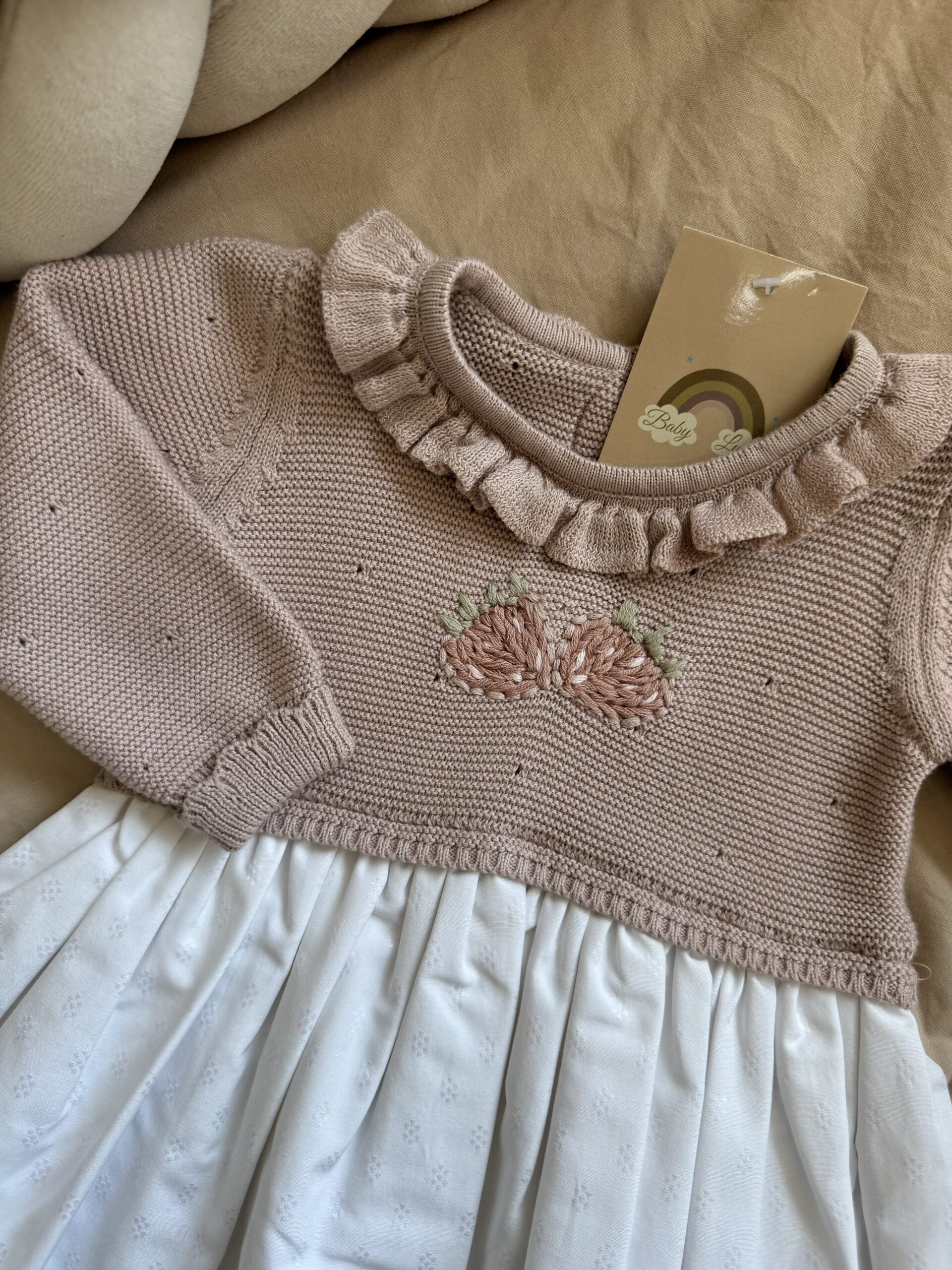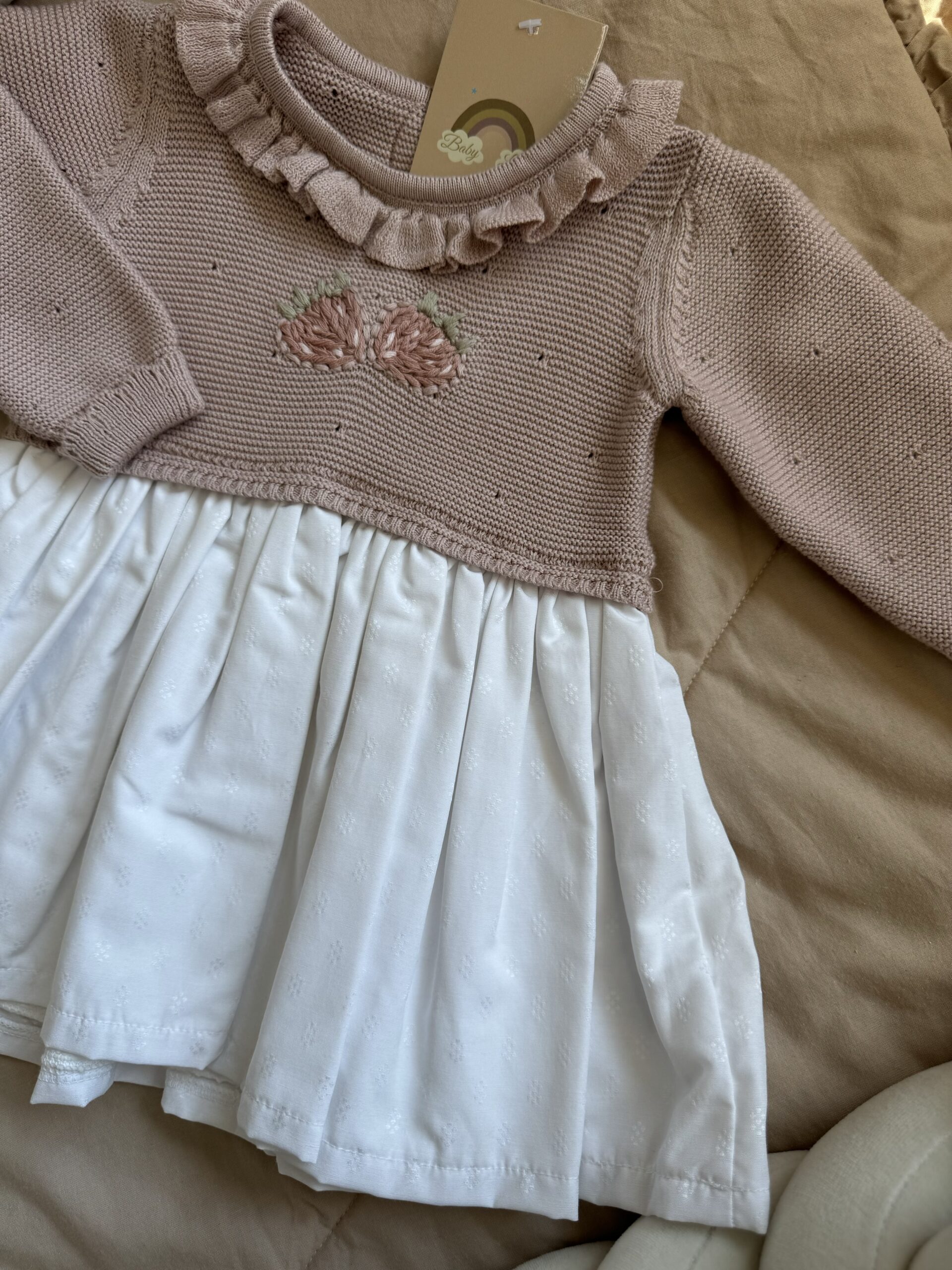 Een gebreid jurkje in de kleur RoseMary.