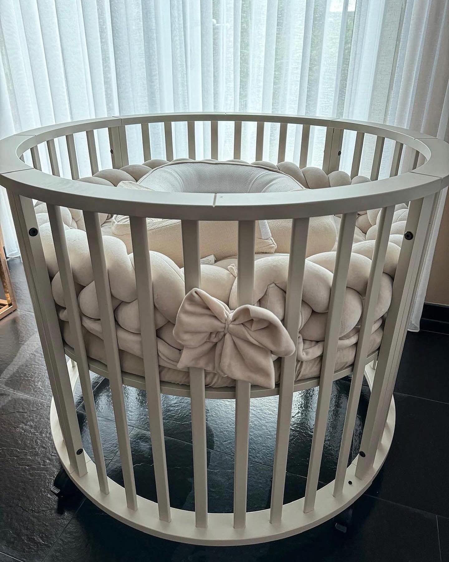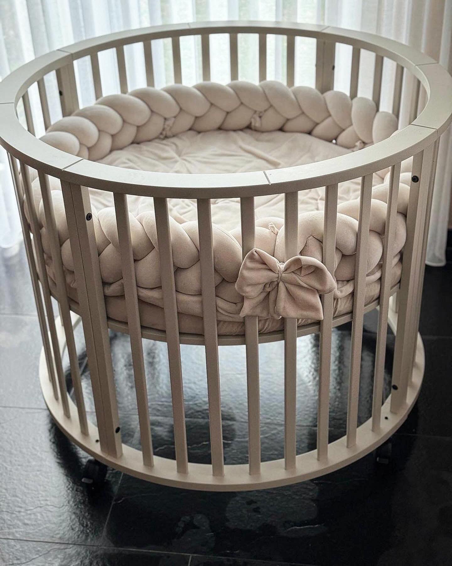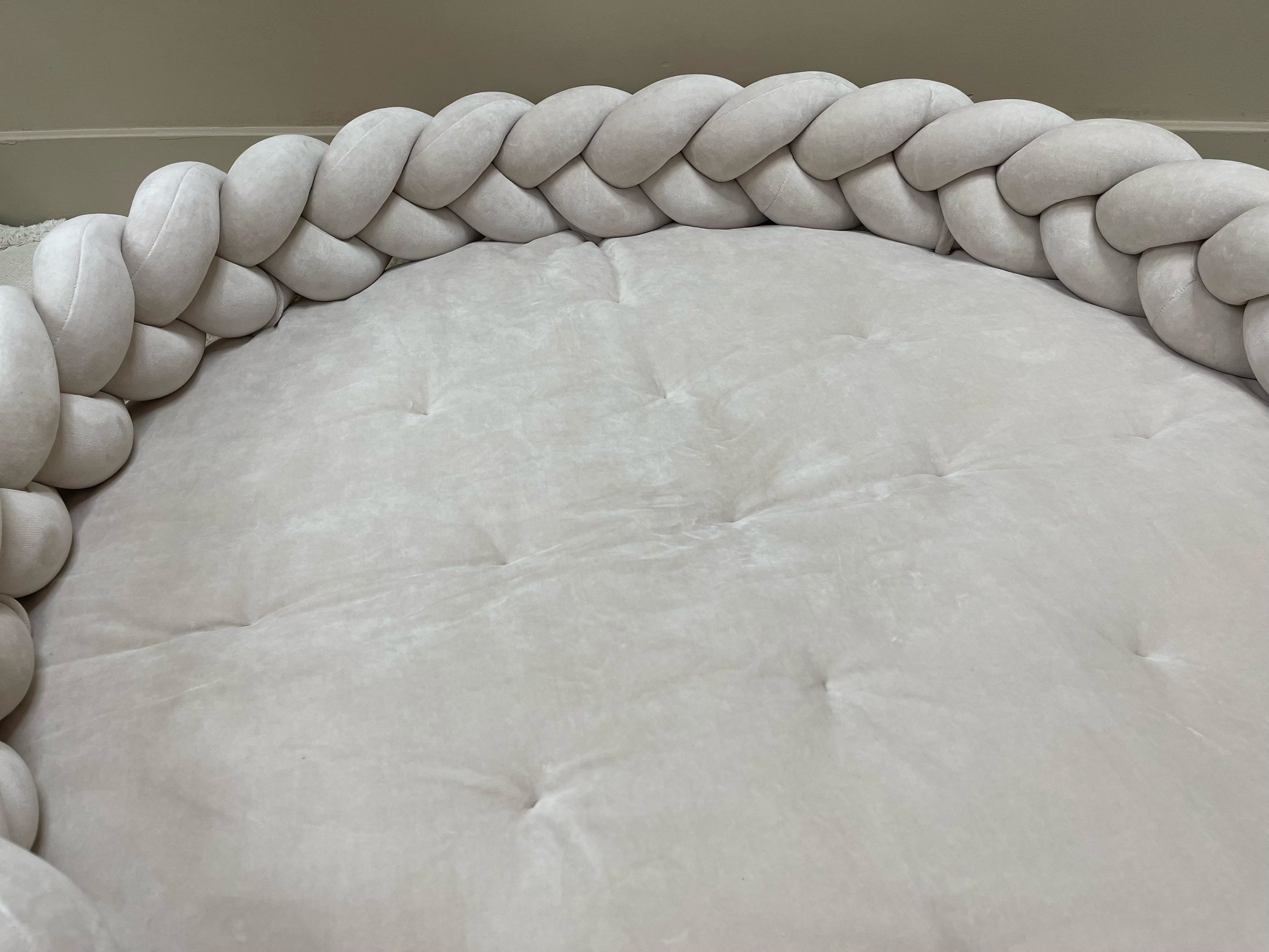 Baby Luxury’s XXL speelnest rond heeft een vlecht van circa 300cm en een boxkleed van circa 100cm.