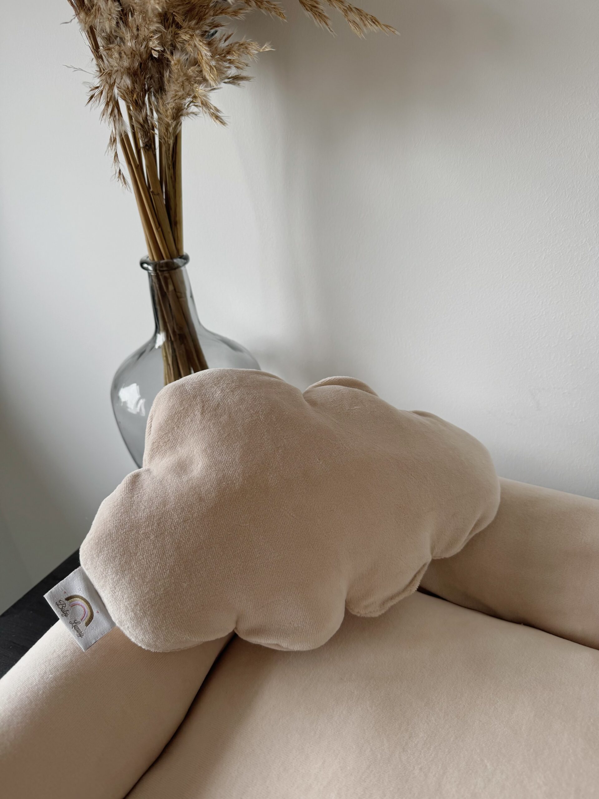 Het Velvety Natural babynestje in de kleur Velvety Beige met het kussentje Cloud.