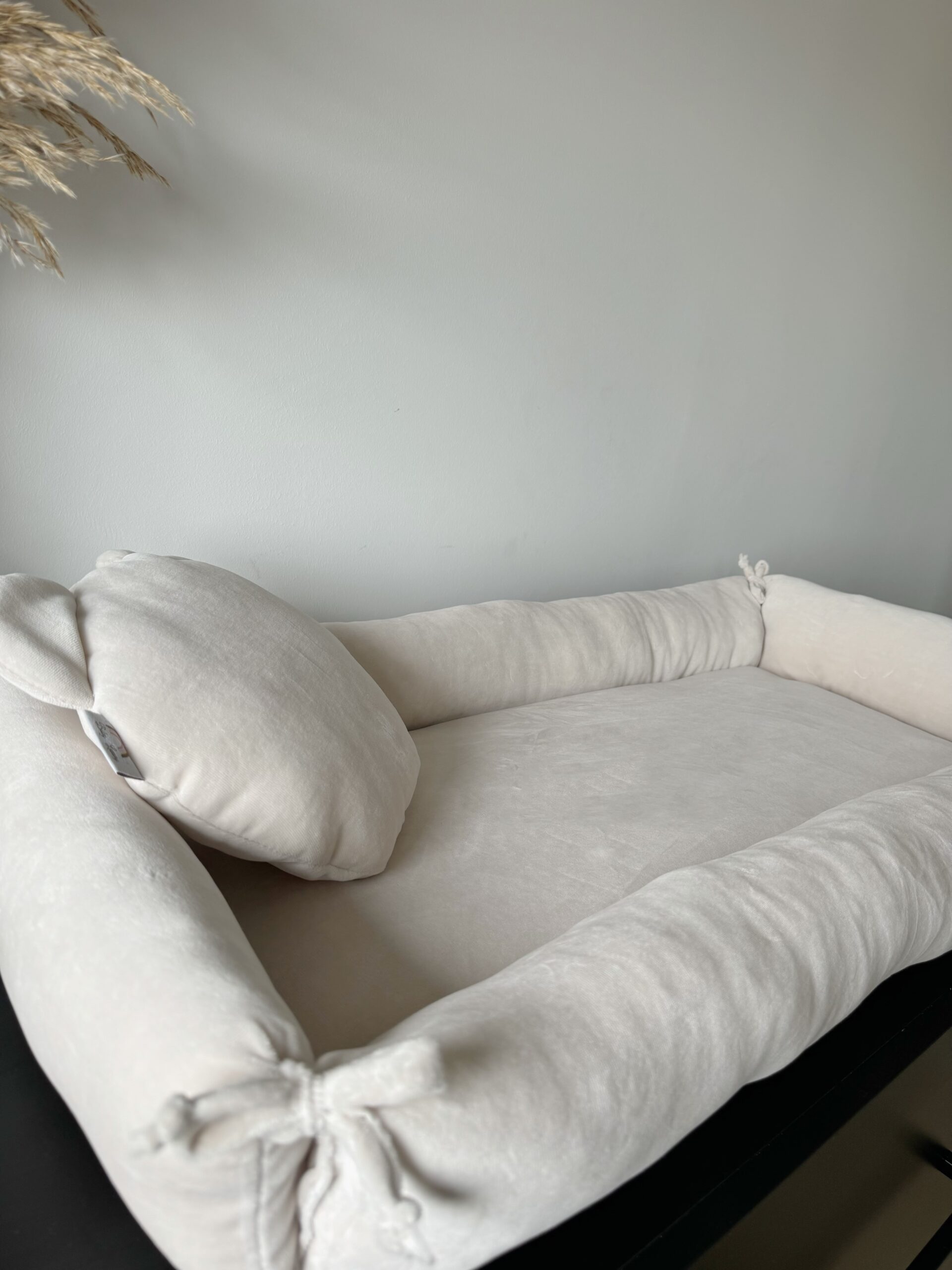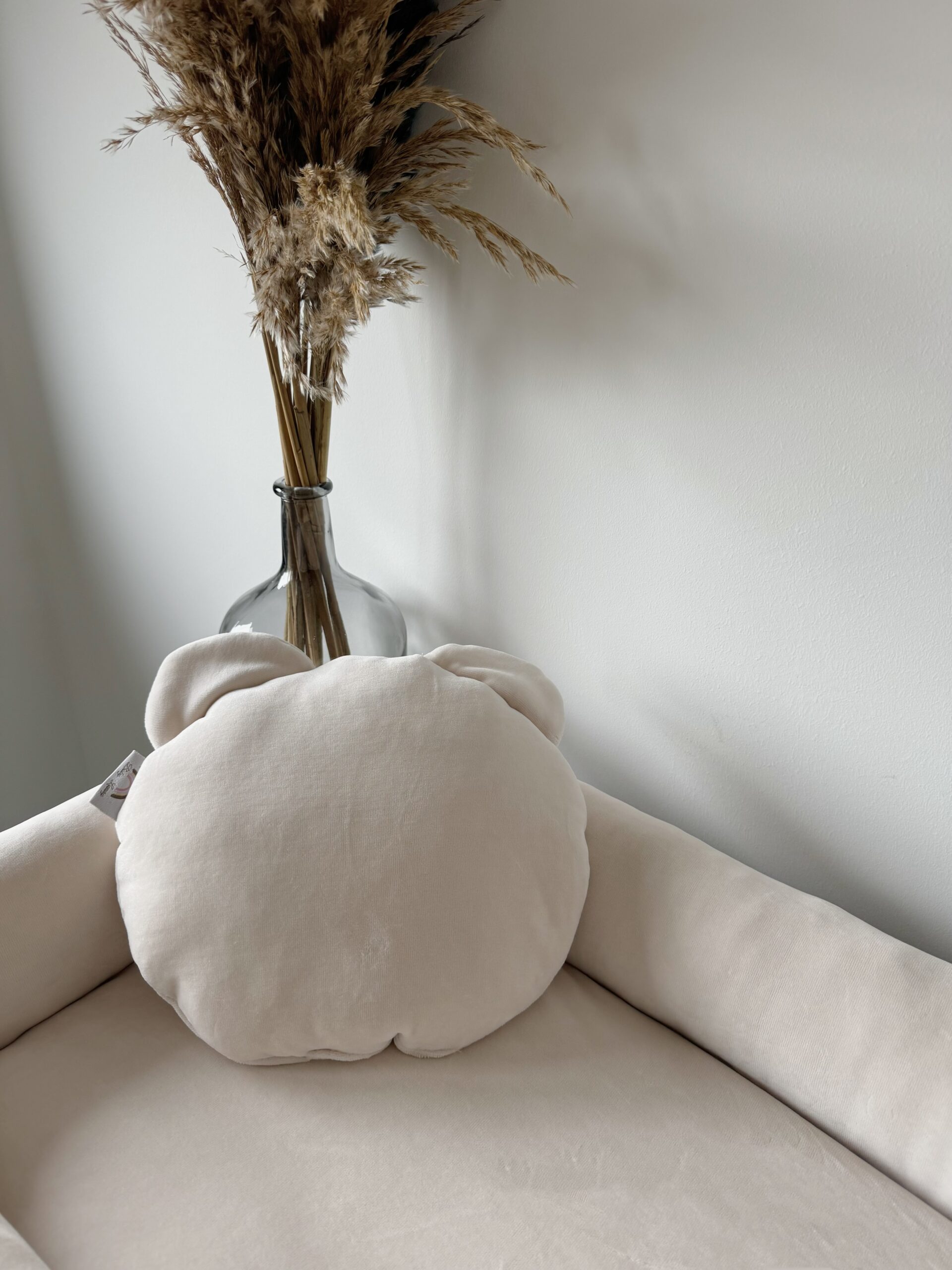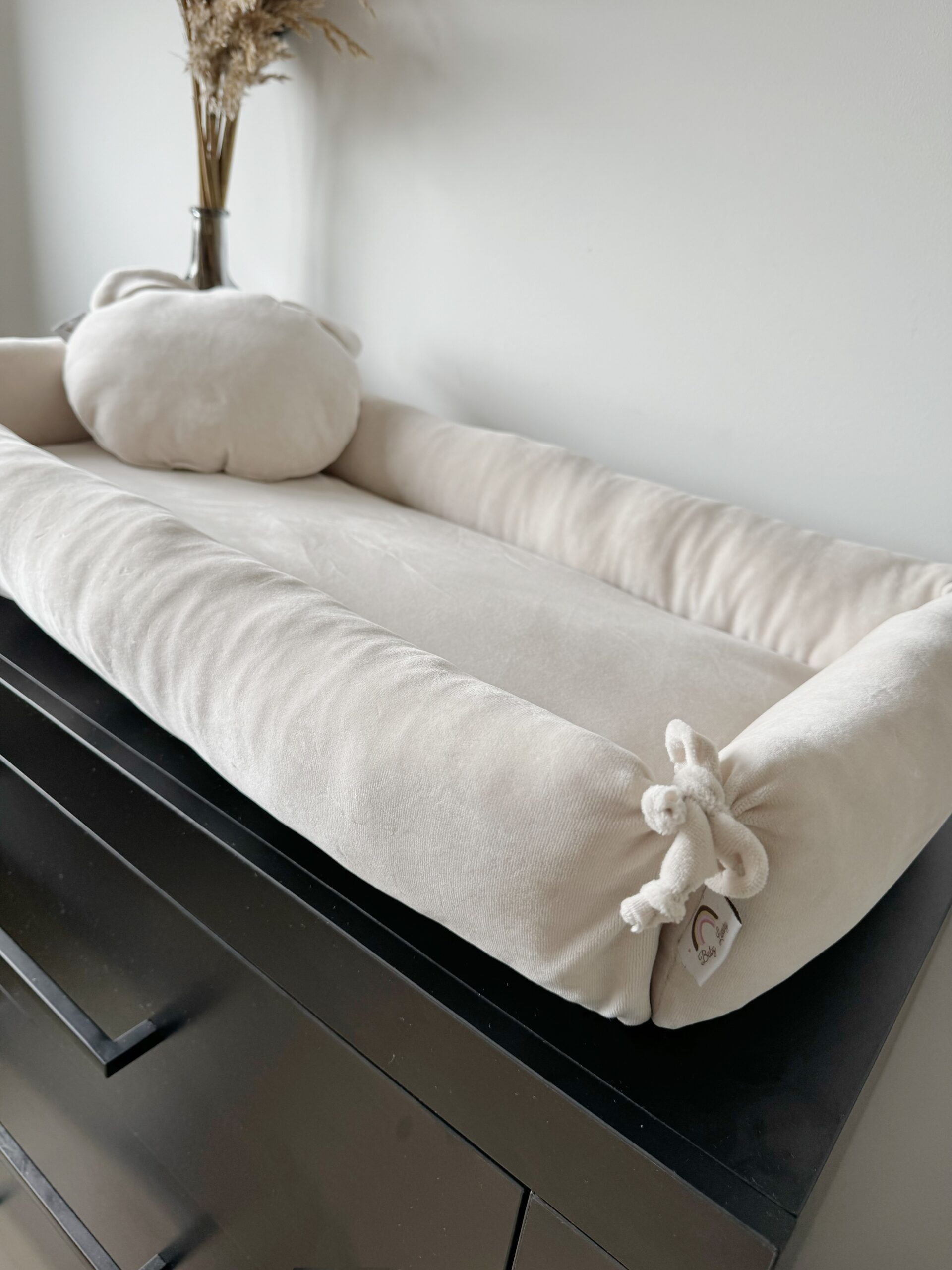 Het Velvety Natural babynestje in de kleur Velvety Ivory met het kussentje Bear.