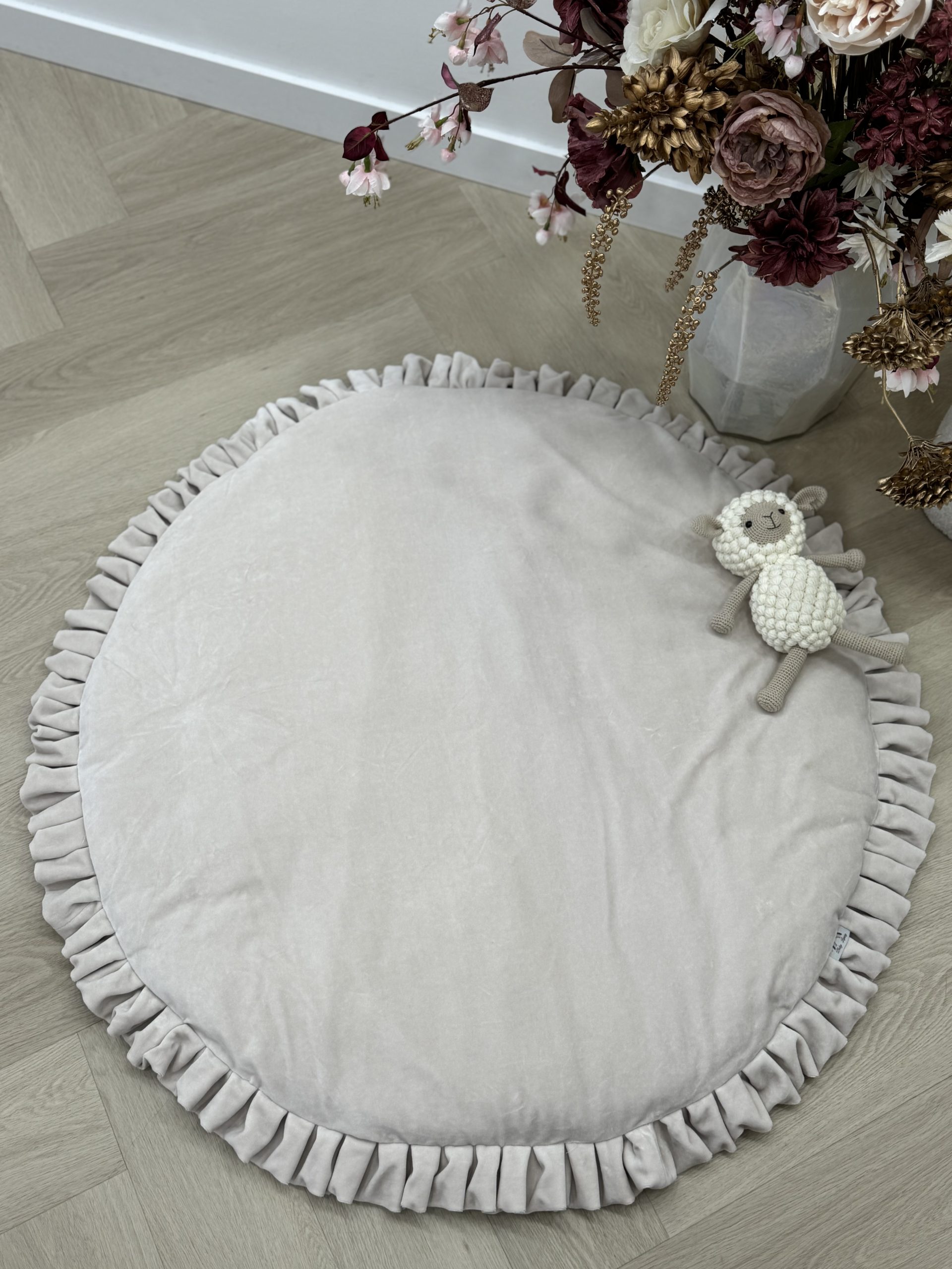 Een stevig, maar comfortabel zacht speelmat met prachtige ruffle afwerkingen.