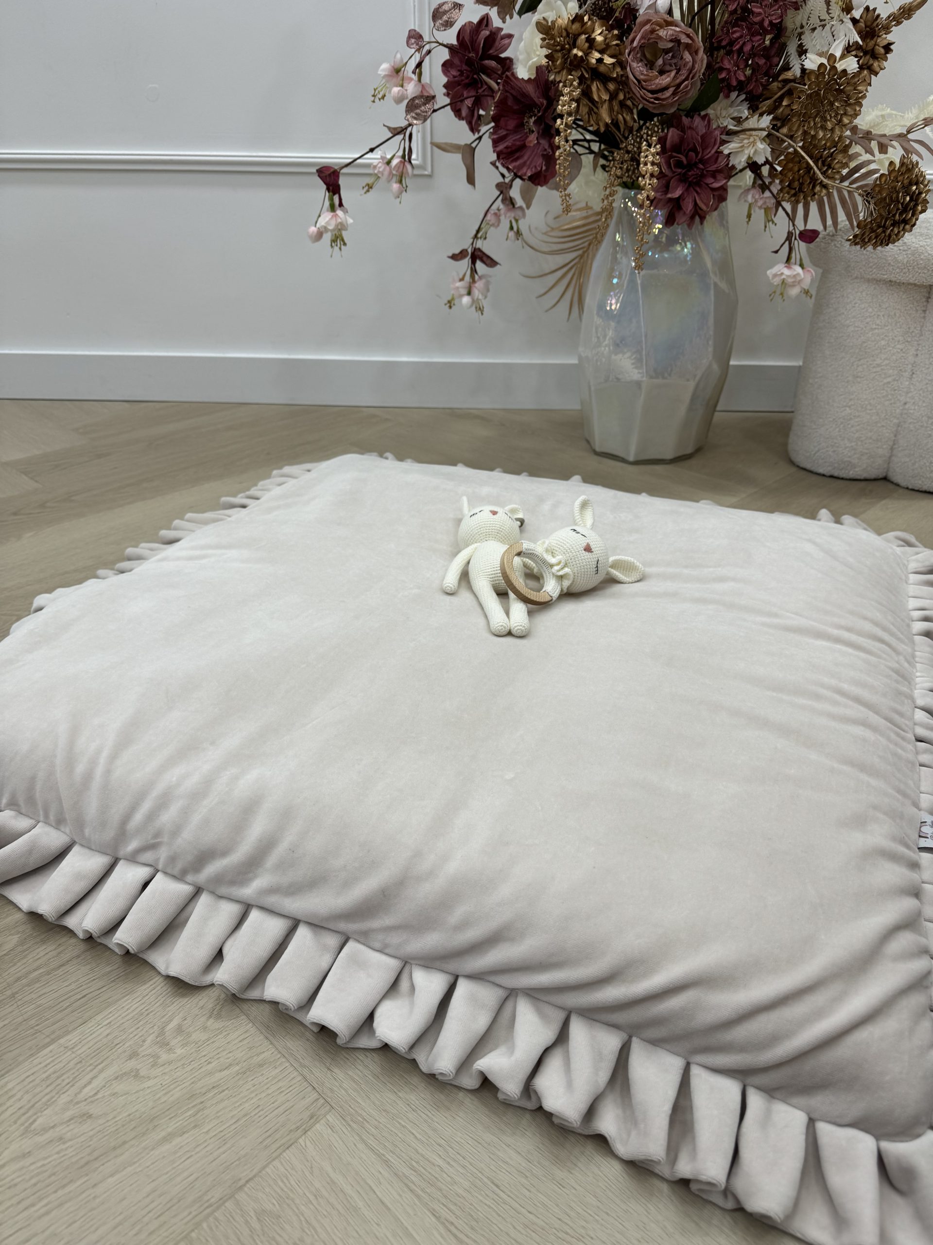 Een stevig, maar comfortabel zacht speelmat met prachtige ruffle afwerkingen.