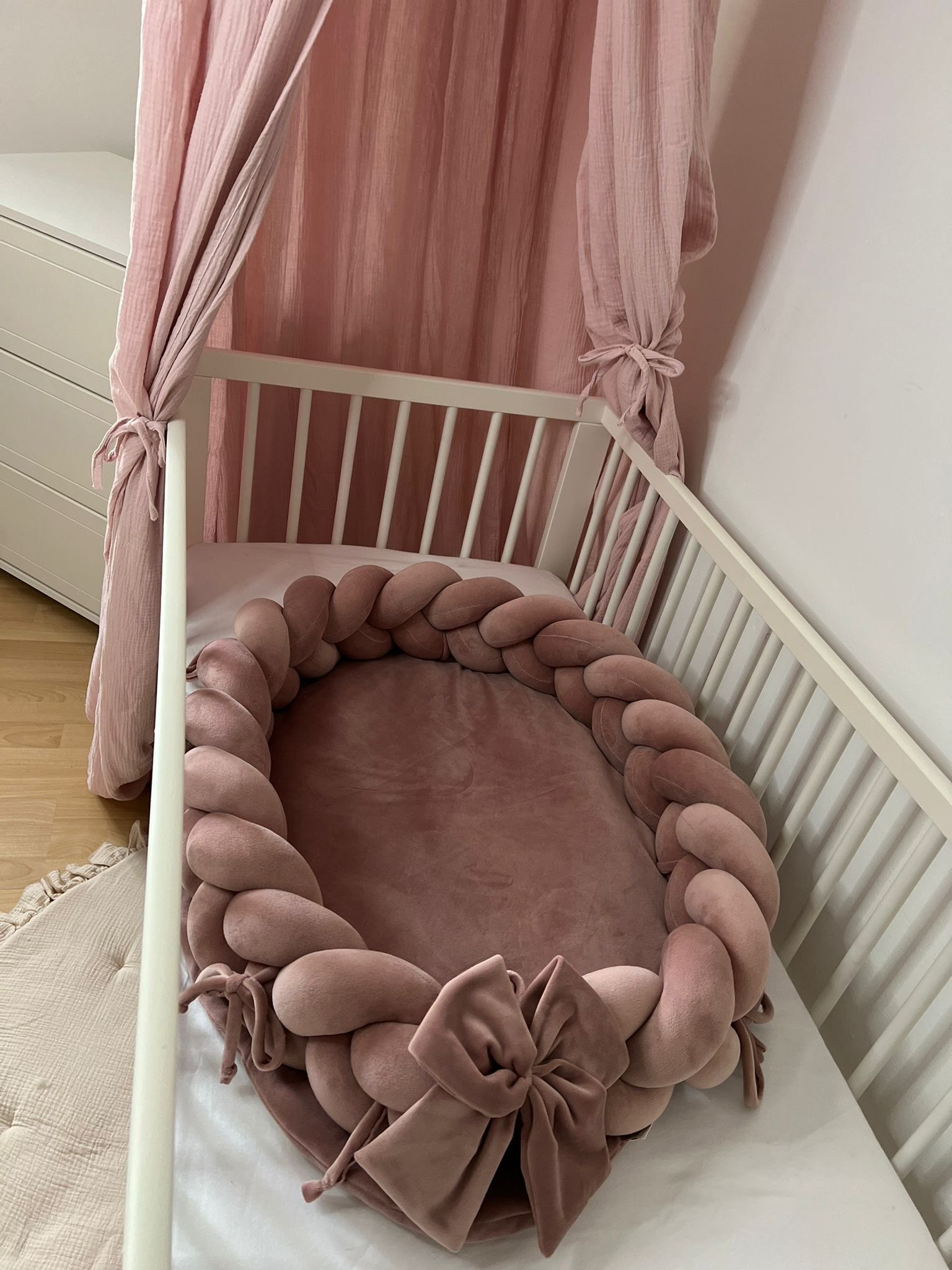 Het fijne aan dit unieke babynestje is dat zodra je baby uit het nestje groeit, je de vlecht los kunt gebruiken als ledikant, box of wieg omranding.