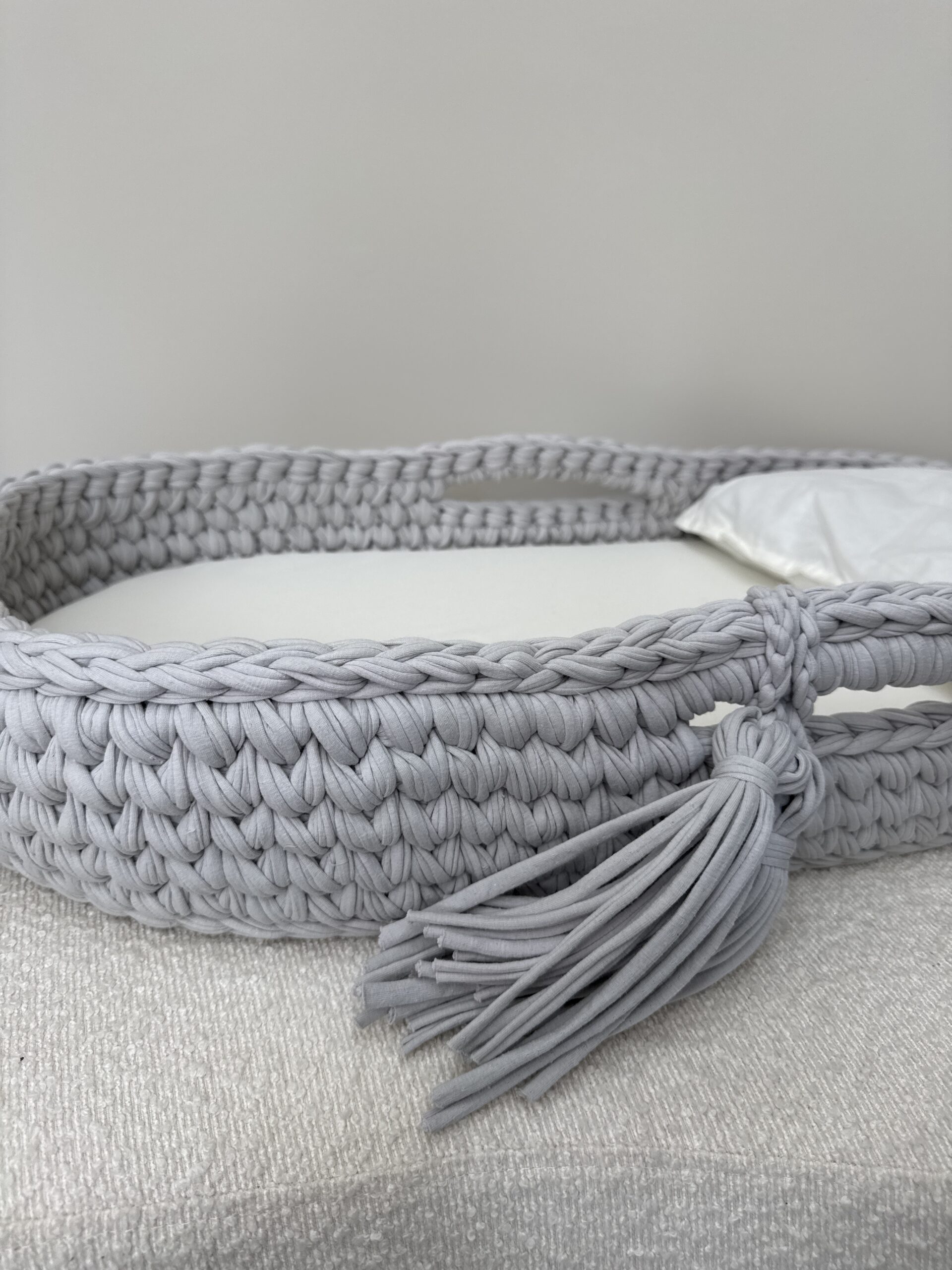 De verschoonmand wordt exclusief met de hand gehaakt en is voorzien van een stevig matrasje en kussentje.