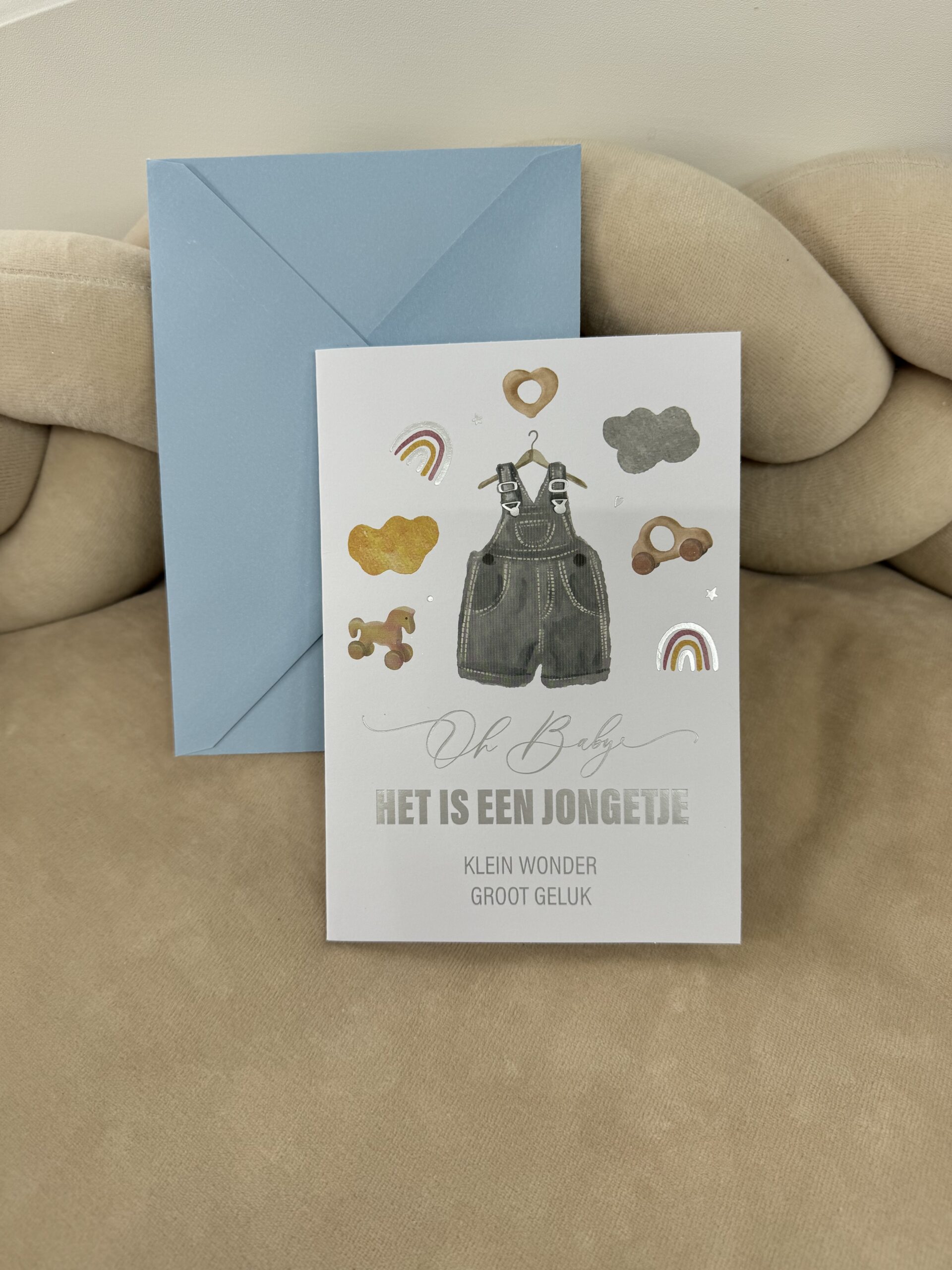 Een geboortekaart/wenskaart met de tekst: