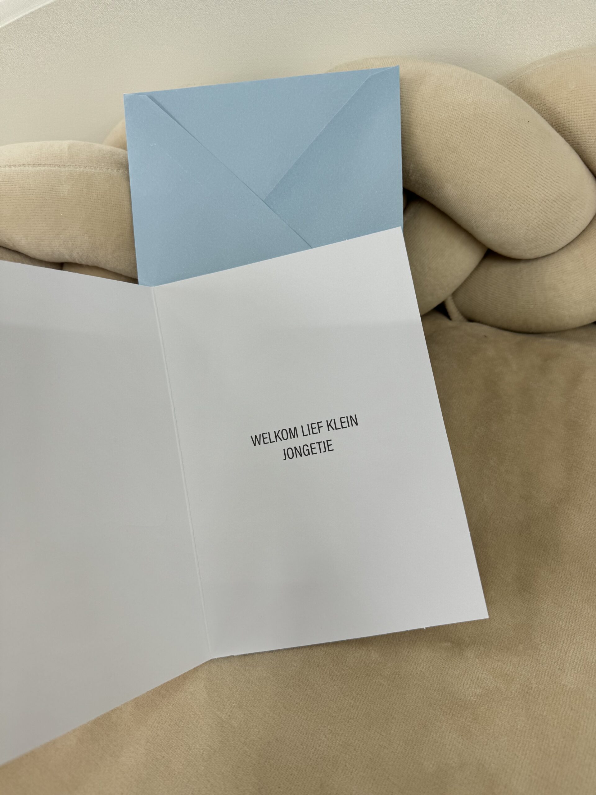Inclusief een blauwe enveloppe.